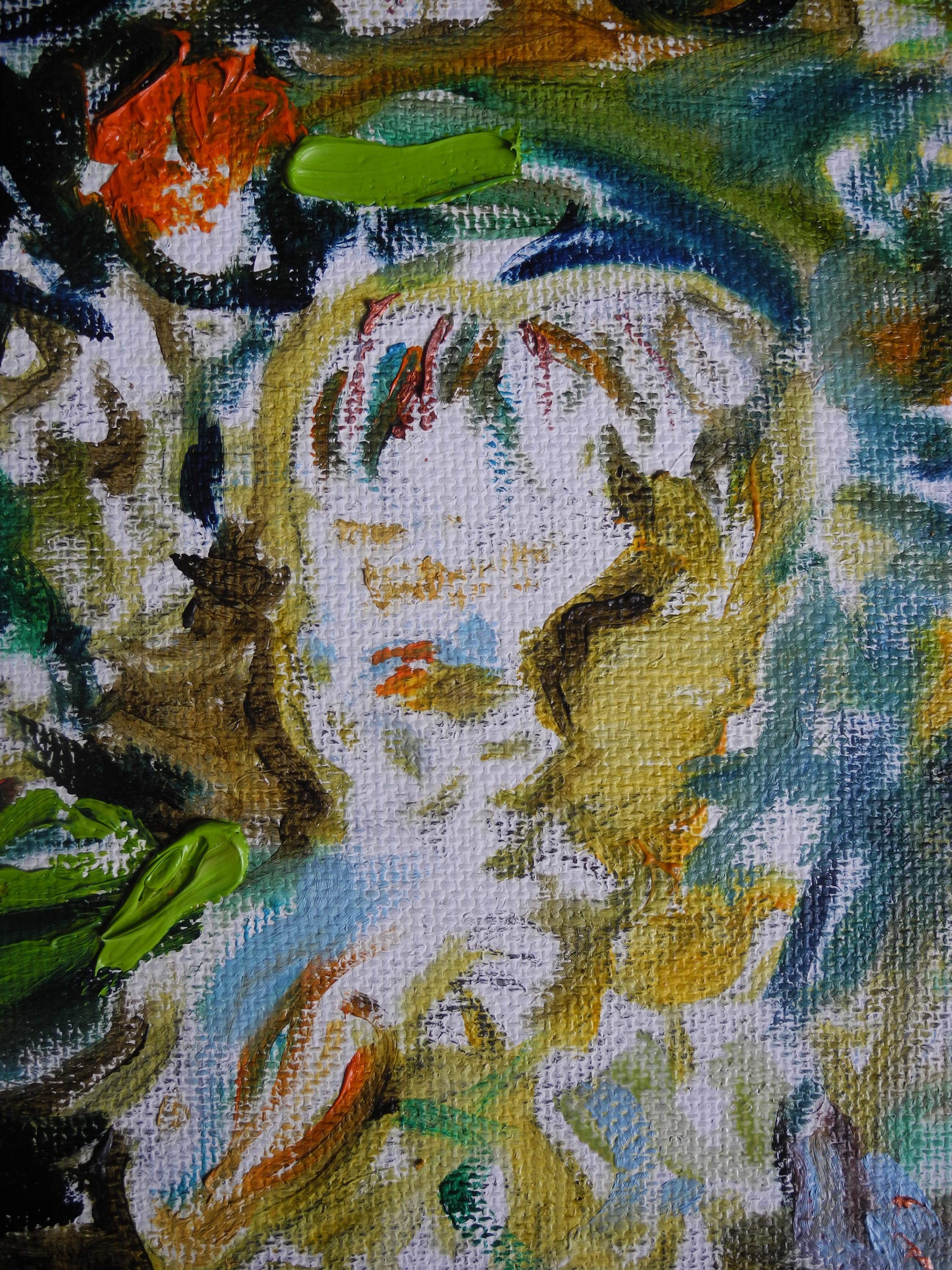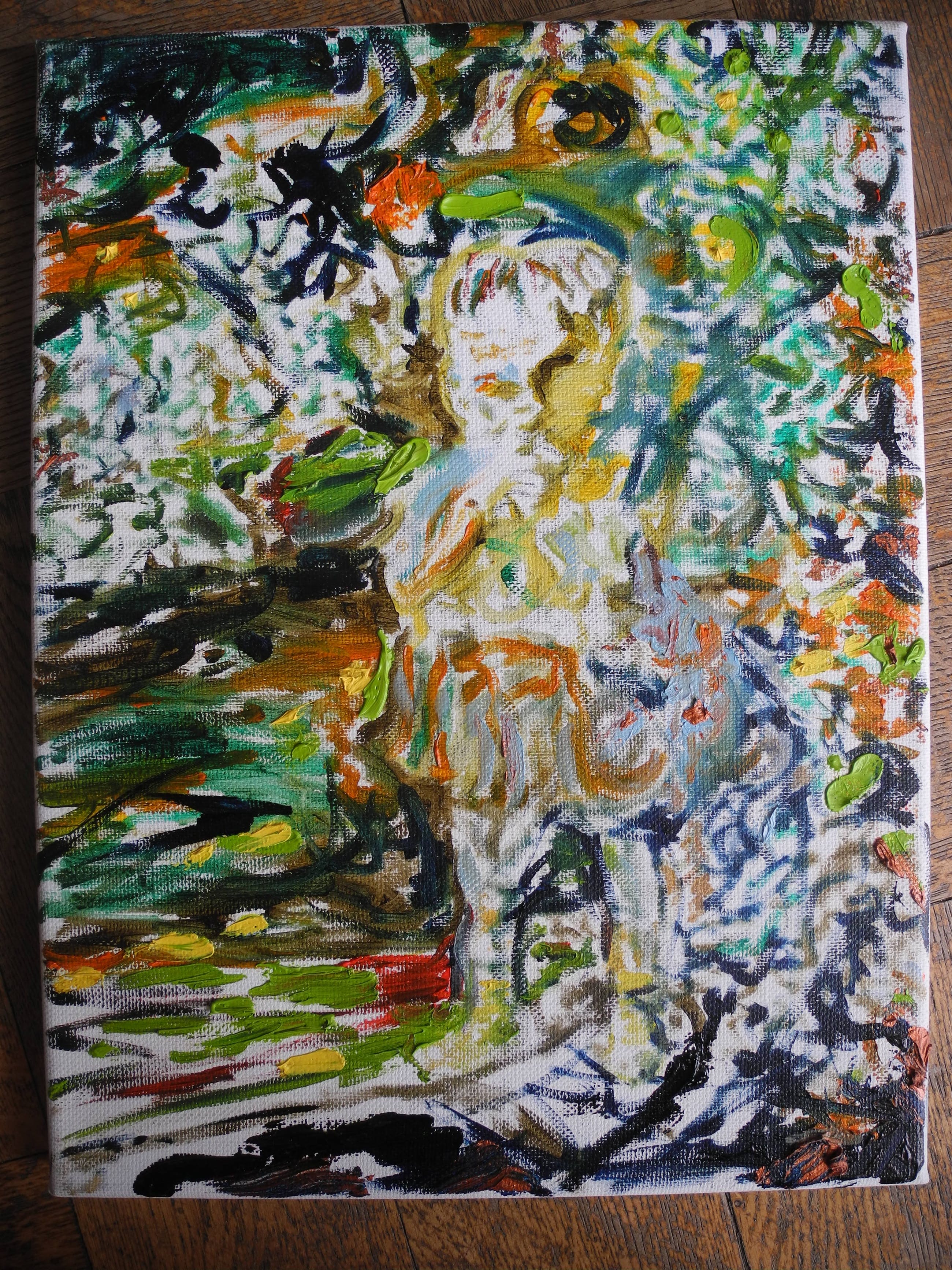 de afbeelding is geispireerd door een van mijn oudste jeugdfotos.hierbij heb ik mij standhaft aan mijn eigen kleurpalet gehouden en ben daarbij in de vrije fantasie gaan werken