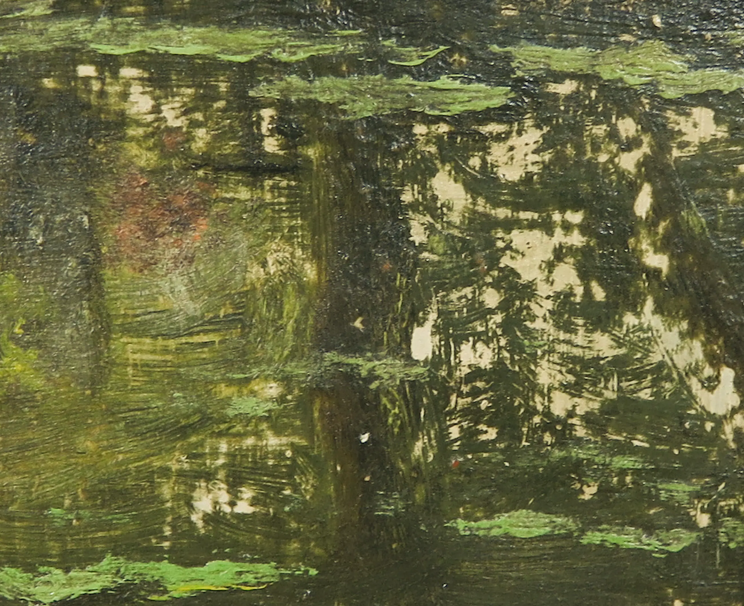 | Het werk is in redelijke staat. Het vernis is wat vergeeld en daarnaast zit er wat oppervlakteschade aan de rechter beneden hoek. | |