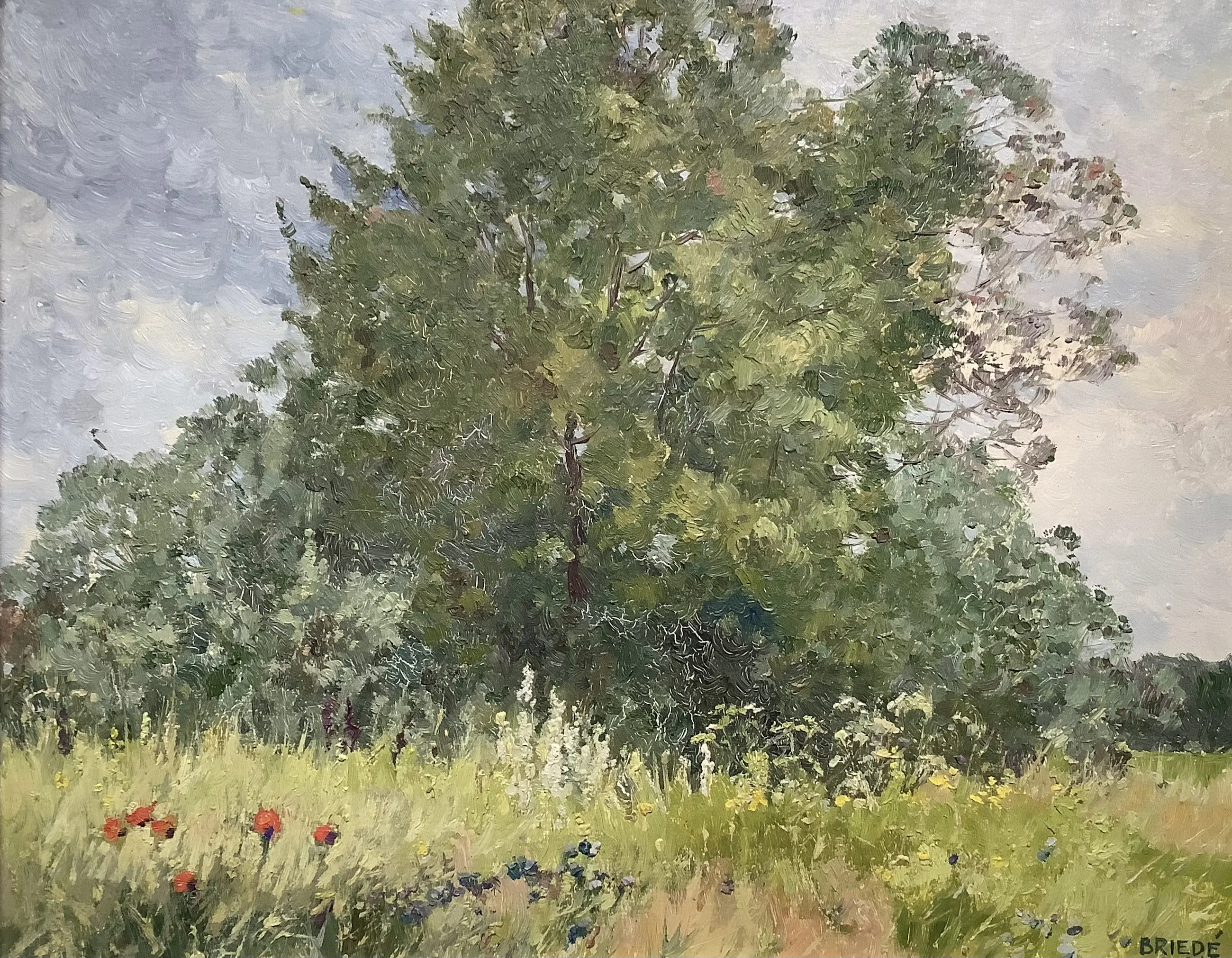 Zijn onderwerpen vond hij voornamelijk in de natuur, en hij haalde veel inspiratie uit zijn reizen naar Zweden, Frankrijk, Spanje en Mallorca. Ook was hij vaak op het Hilversumkanaal te vinden, waar hij vanuit zijn boot de waterplanten bestudeerde. In zijn landschappen is de invloed van de art nouveau, met de gestileerde lijnen en plantaardige motieven, goed te zien. Briedé deed deze invloed onder andere op bij zijn kunstenaarsvriend Theo van Hoytema.