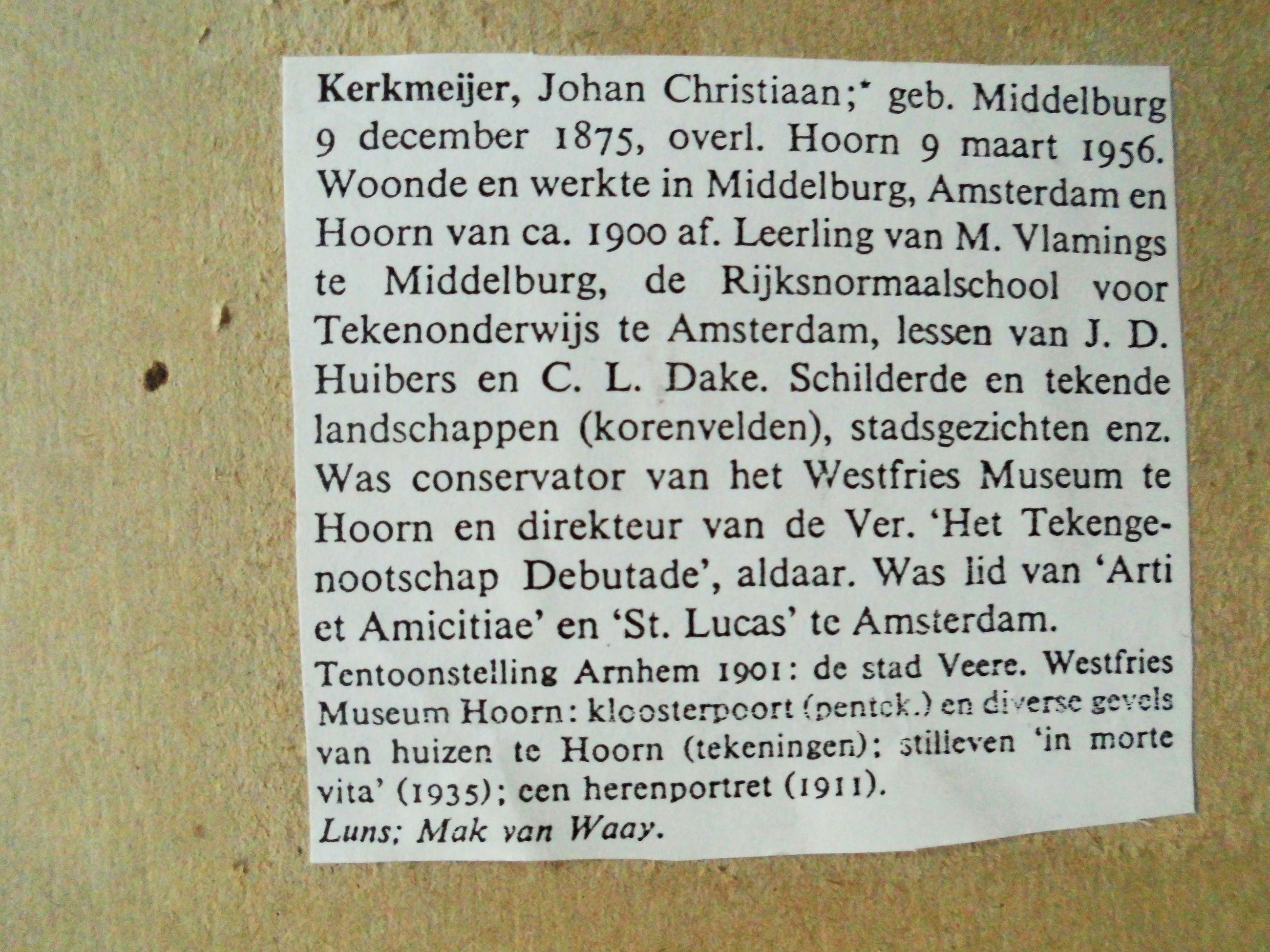 Tekenleraar aan de Burgeravondschool in Hoorn, 1897-1921, tevens aan de