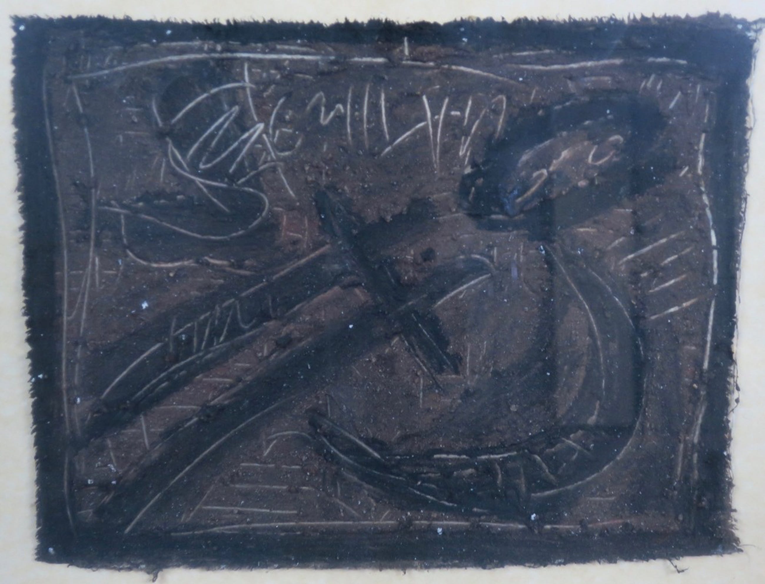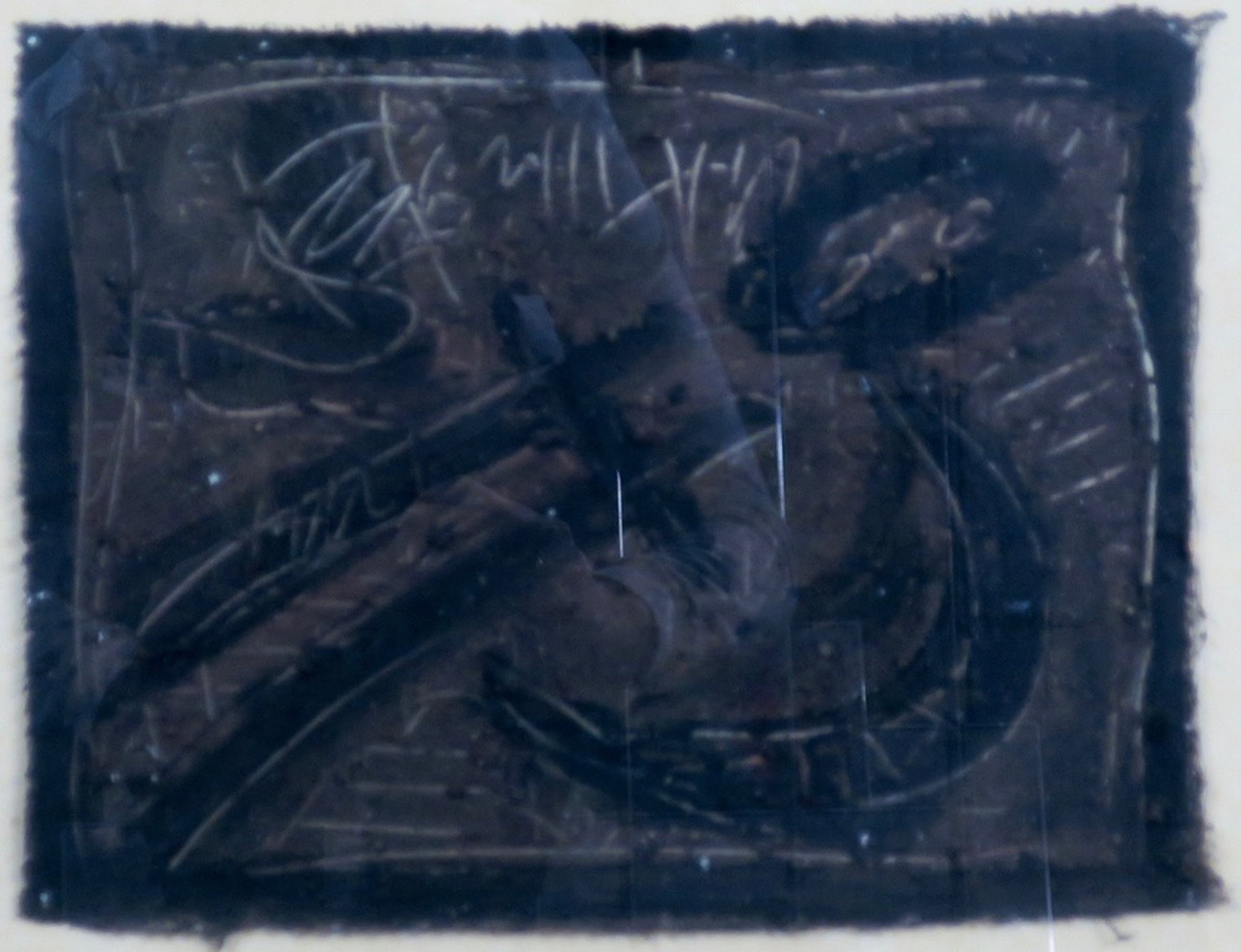Materiaal: Gemengde techniek op doek, met spijkertjes vastgezet