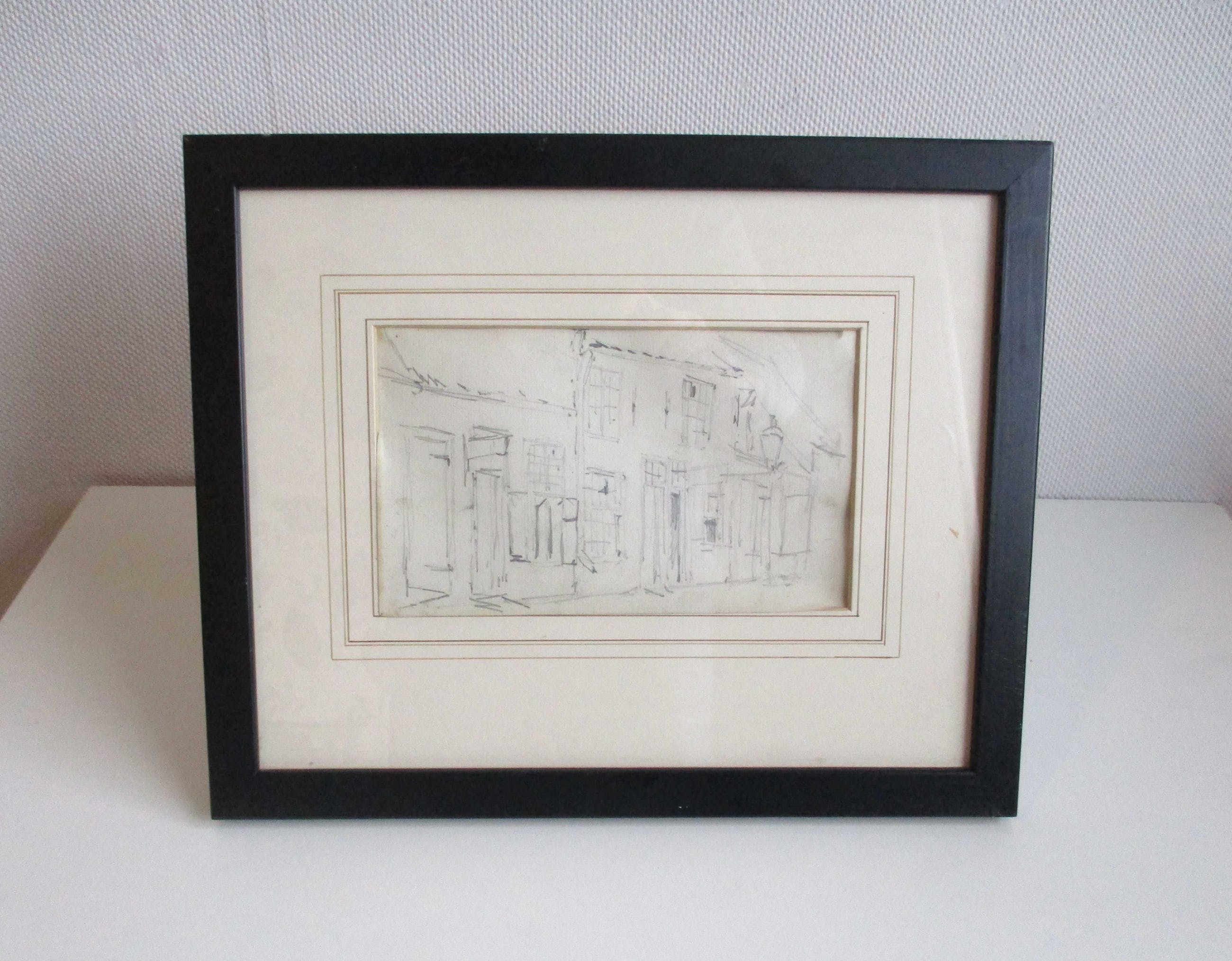 schetsblad 759 (16). Ingelijst in een eenvoudige lijst, inclusief passe