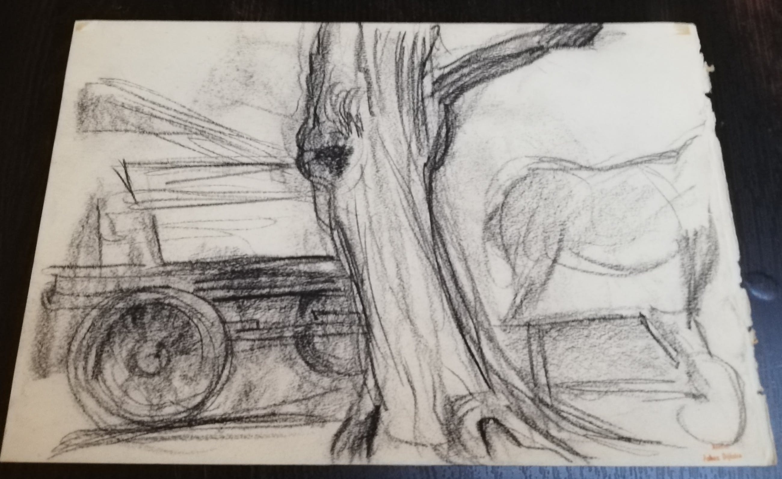 Vermoedelijk losgehaalde pagina uit schetsboek, daarom is de rand wat onregelmatig.