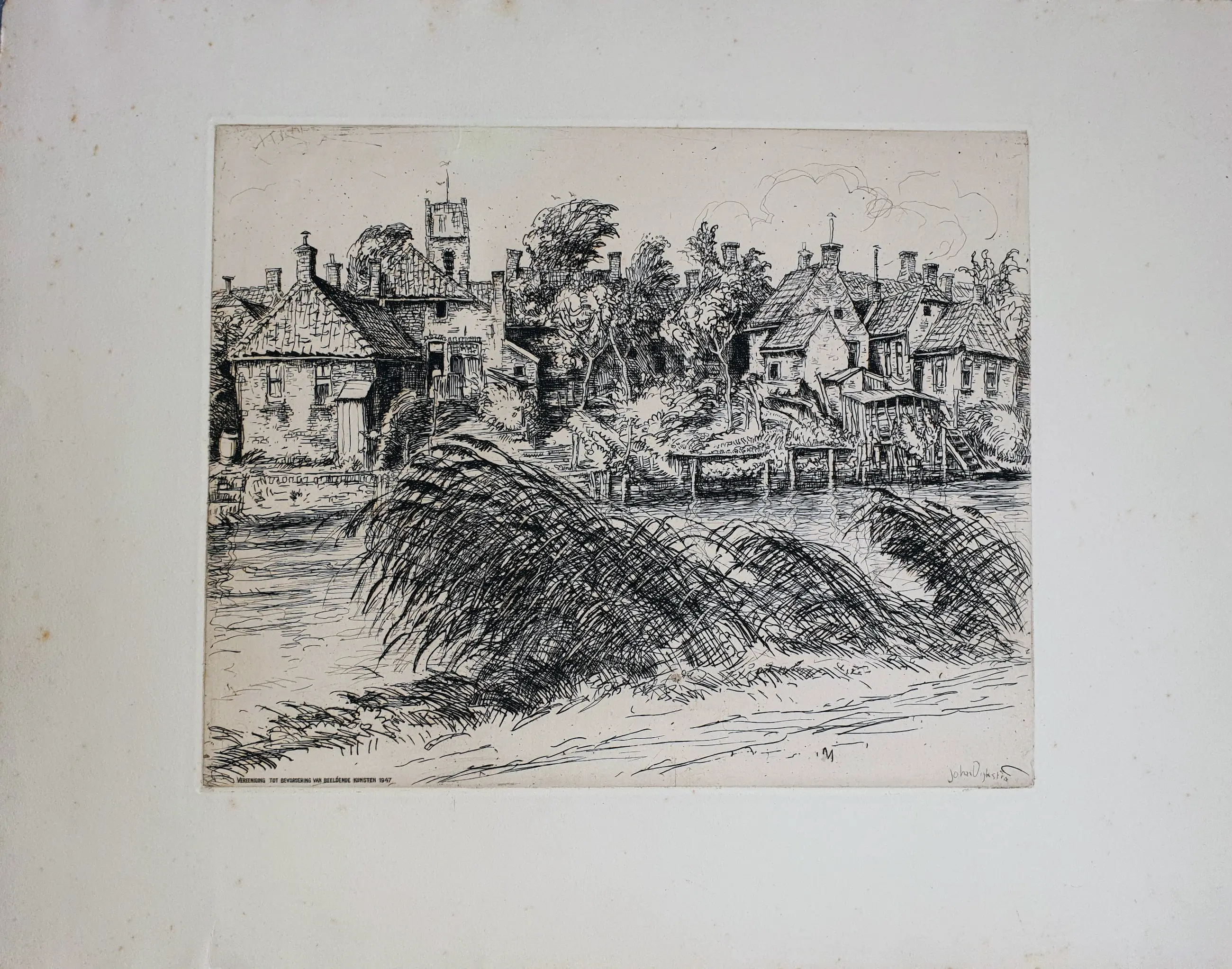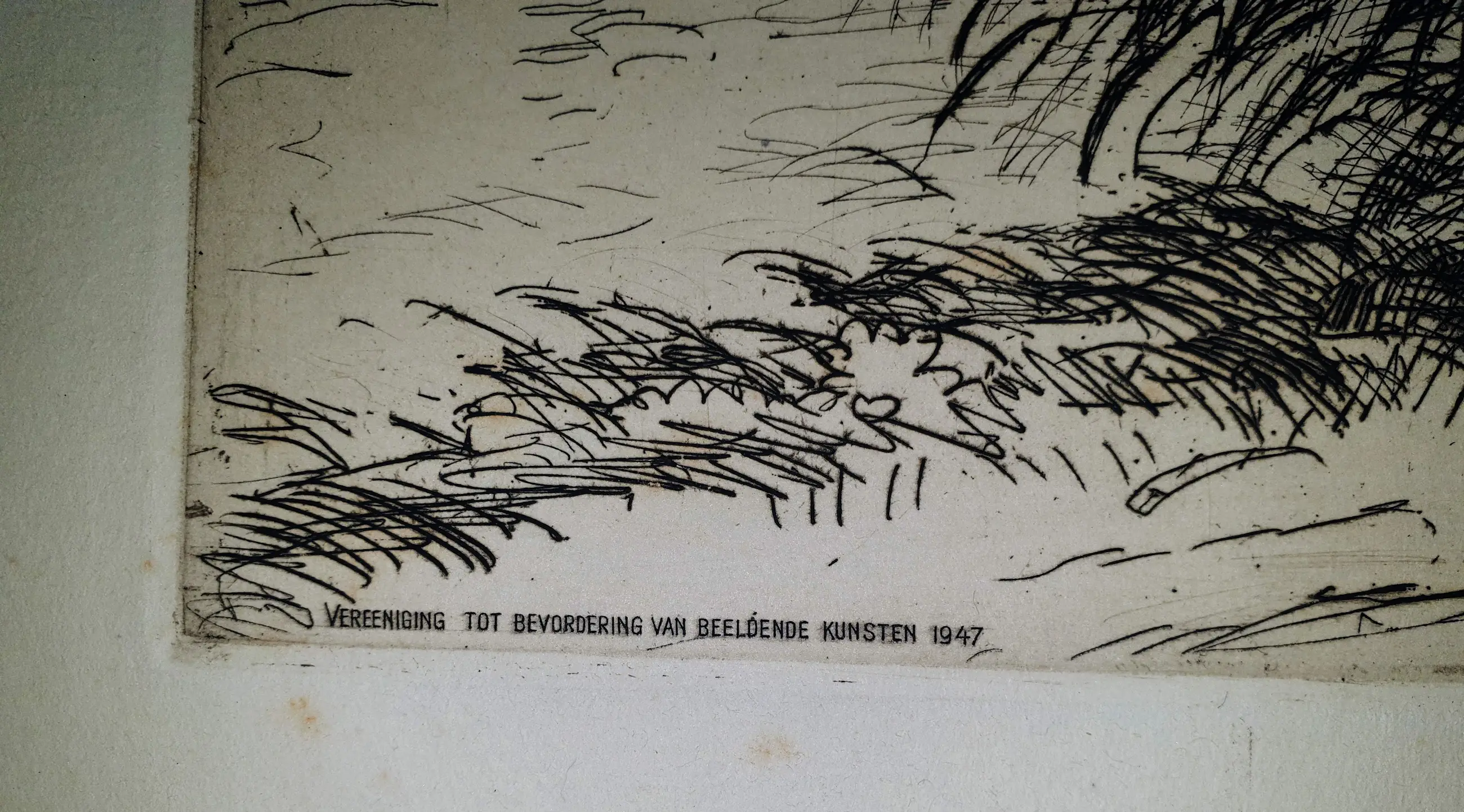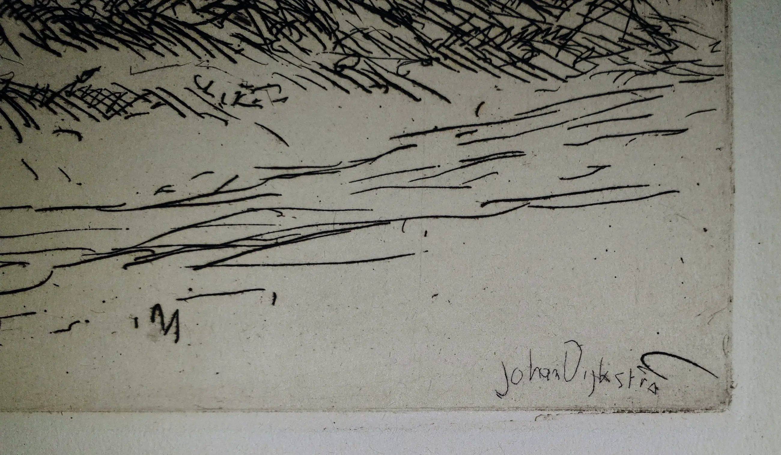 Uitgave van de vereniging tot bevordering van beeldende kunsten in 1947 Drukgesigneerd in linkeronderhoek 'VEREENIGING TOT BEVORDERING VAN BEELDENDE KUNSTEN 1947' en in rechteronderhoek 'Johan Dijkstra' Papierformaat: 45cm x 35cm Afbeeldingformaat: 30 cm x 25 cm