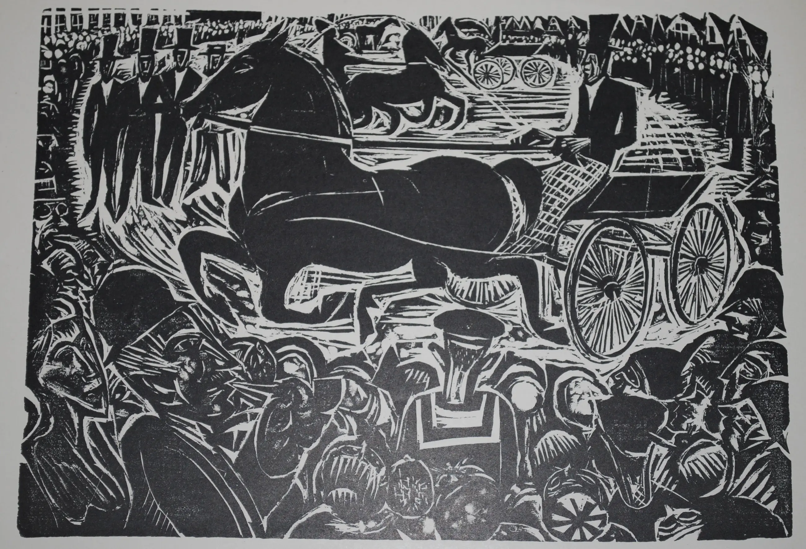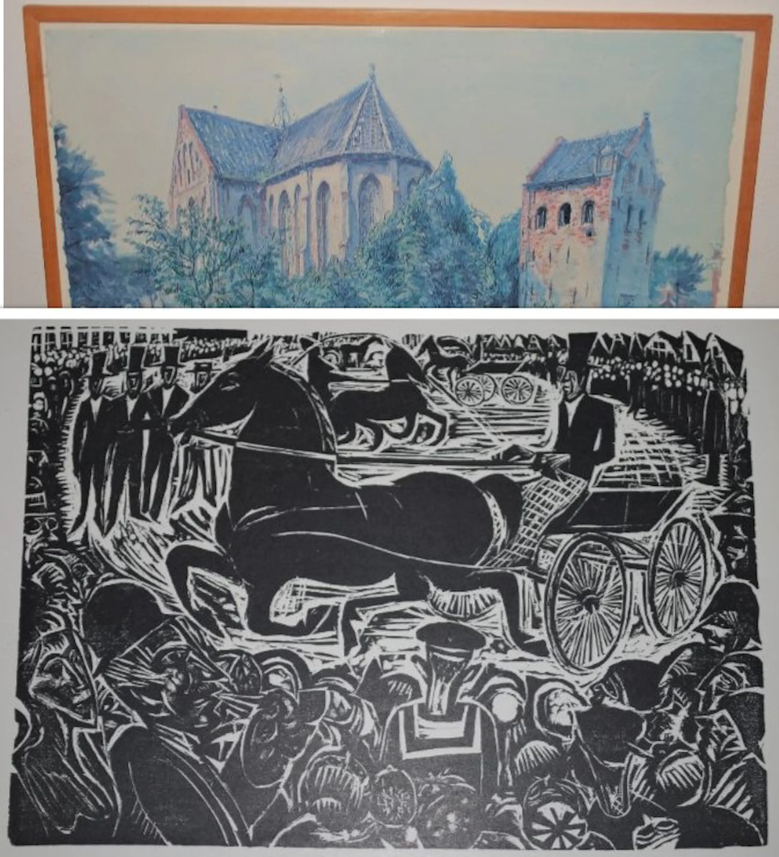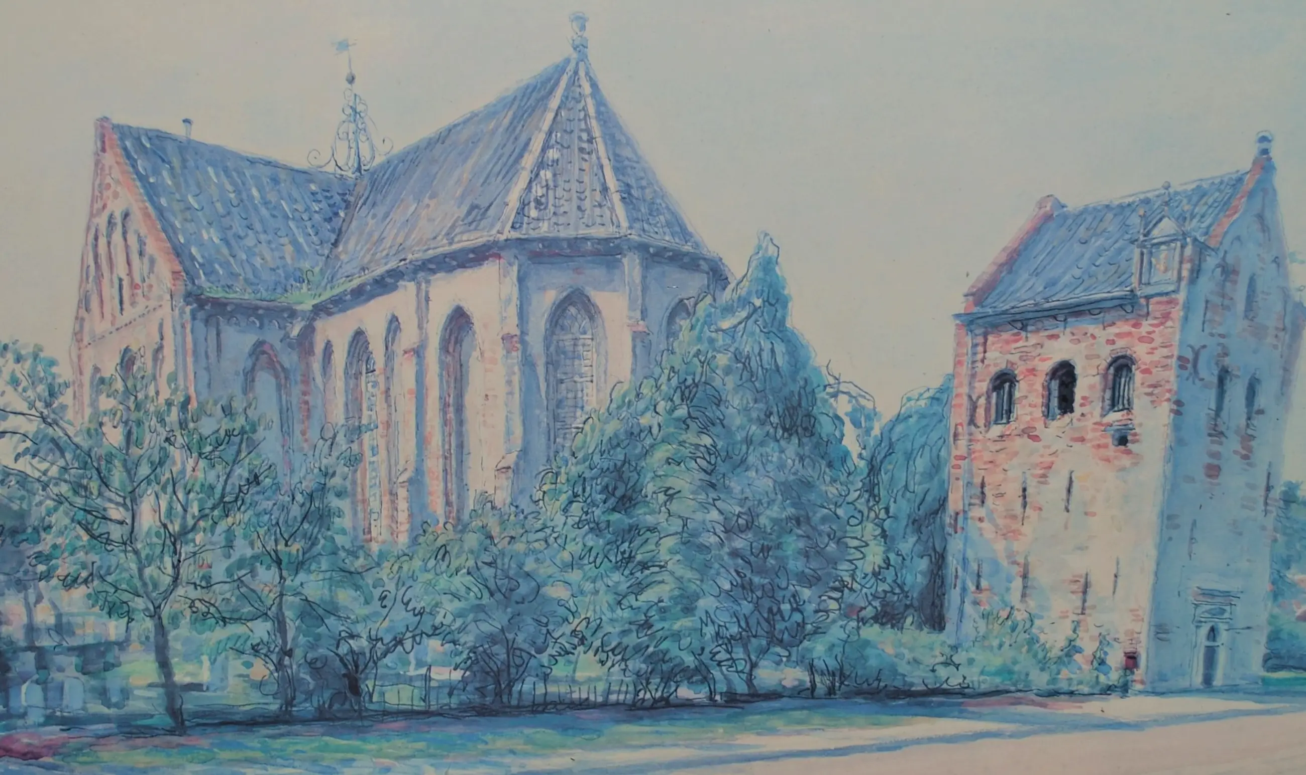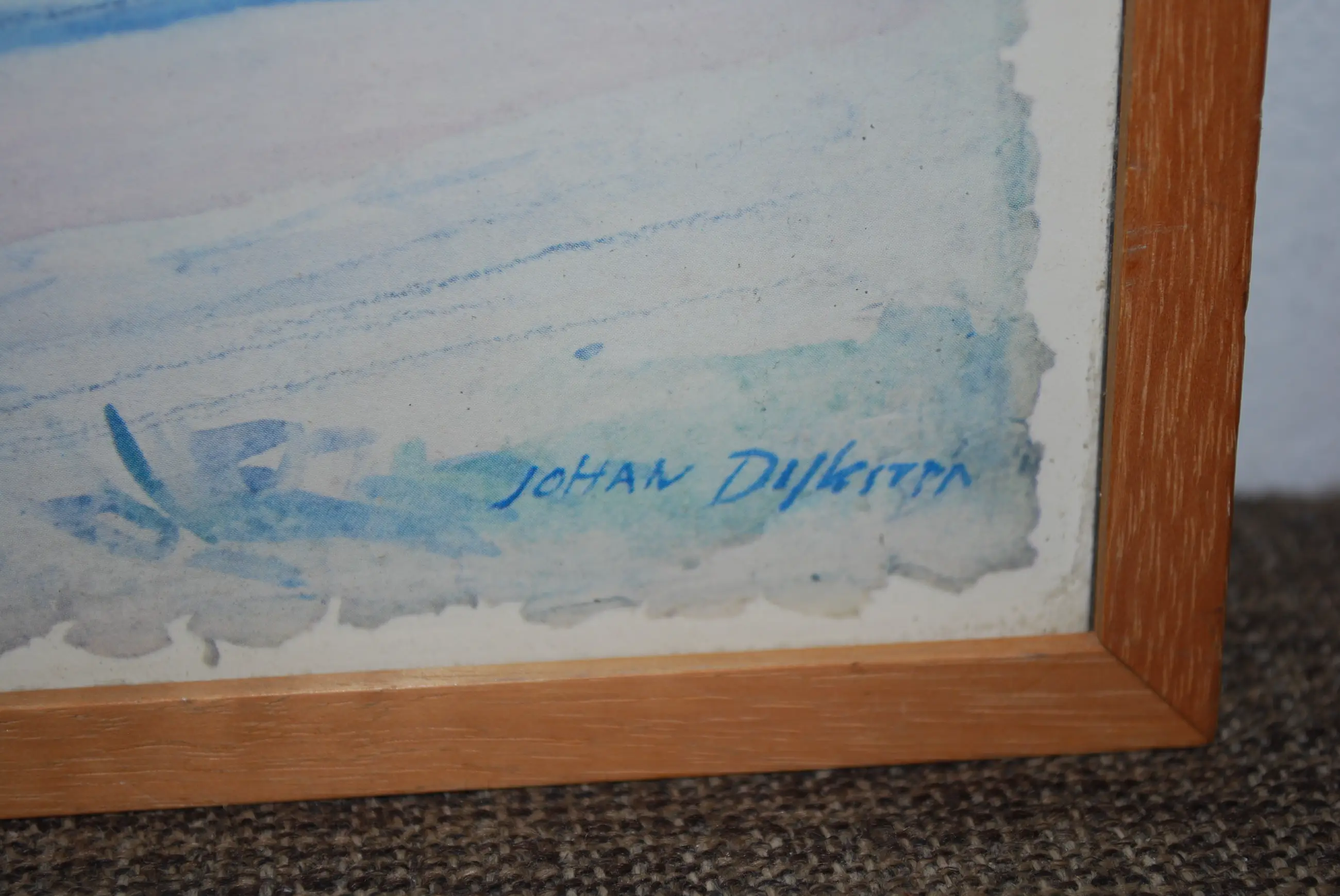 daarbij de offsetlitho Noordbroek, achter glas ingelijst. Verkocht door kunsthandel Ongering in de jaren 50. Lichte verkleuring. In de druk gesigneerd. Buitenmaat 30x50 cm.