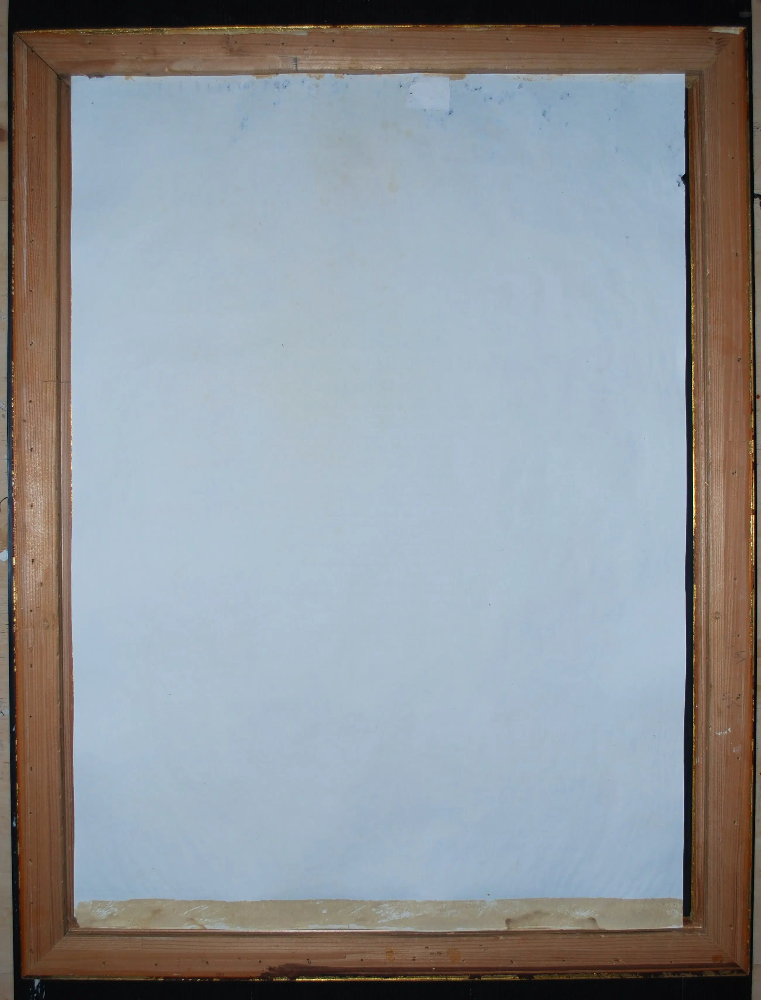 Los blad, geplaatst tussen karton en glas. In een mooie lijst (slijtschade).
