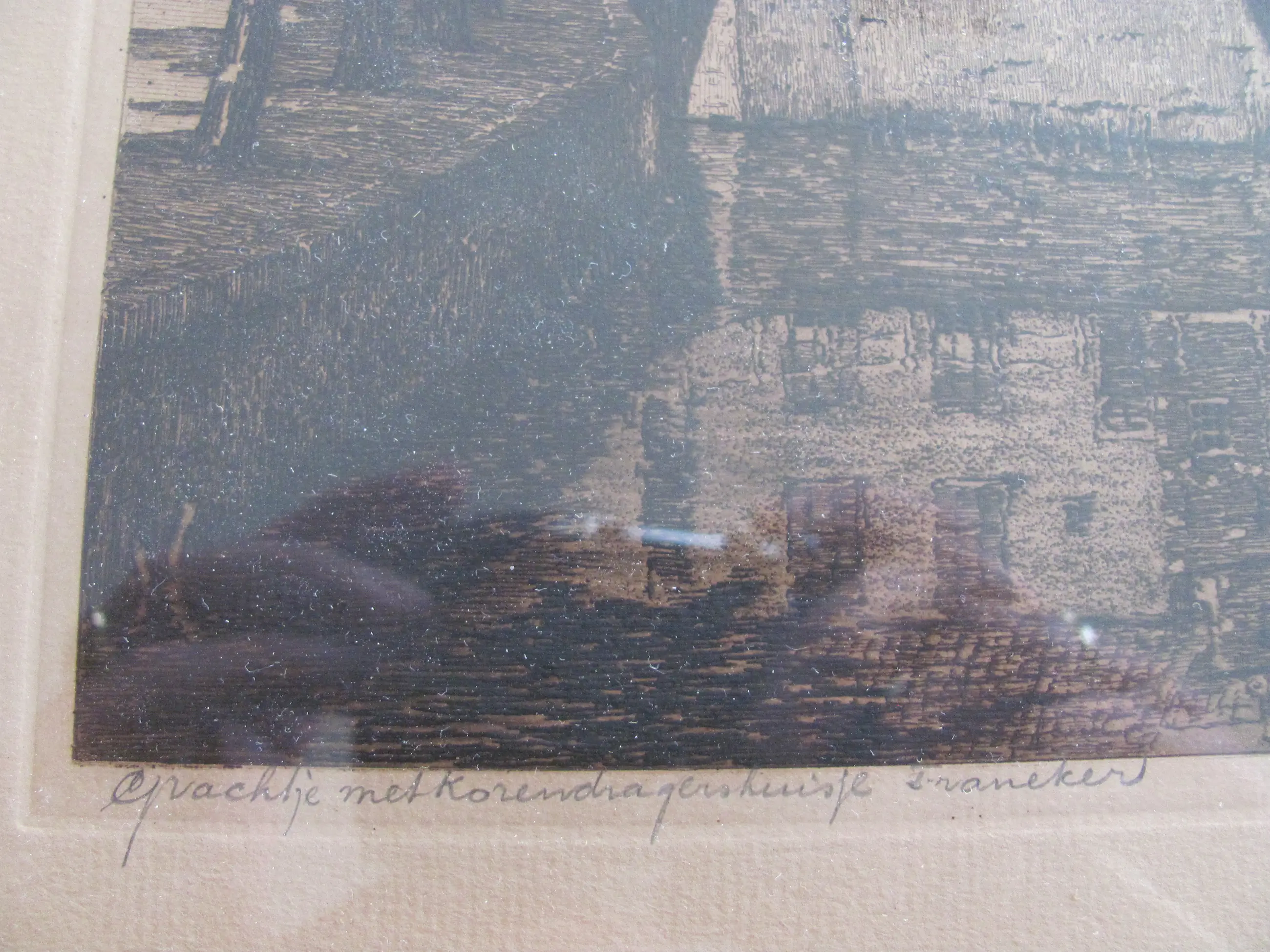 Mooie oude ets van Johan Hemkes in vermoedelijk de originele lijst. Het papier zal in de loop der jaren iets vergeeld zijn.