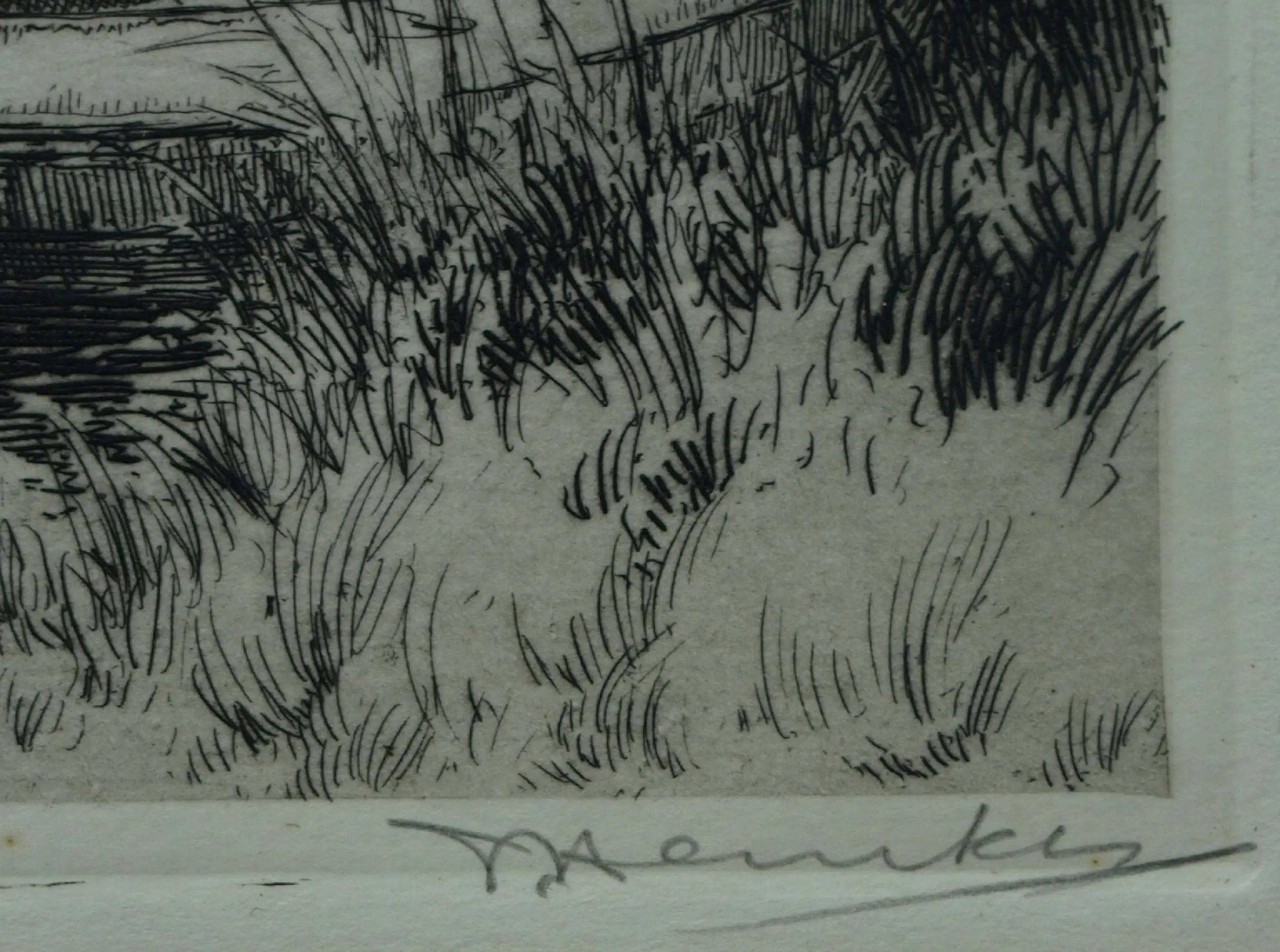 Informatie over de kunstenaar: Johannes ('Johan') Hemkes, geboren te Schalsum (Friesland) 3 april 1894, overleden in Bilthoven 3 december, graficus, tekenaar, etser, lithograaf en docent middelbaar onderwijs. -Opleiding: Na een studie aan de ‘Rijksnormaalschool voor Teekenonderwijzers’ werd hij schoolmeester. Tijdens de mobilisatie voor de Eerste Wereldoorlog kreeg hij tekenles aan het instituut Bik en Vaandrager in Den Haag. Na het behalen van de tekenakte M.O. in 1919 werd hij in 1921 tekenleraar aan de Rijks-HBS in Ter Apel. Van 1921 tot 1966 maakte hij houtsneden, aquarellen, litho's en ruim vierhonderd etsen. Ook wijdde hij zich aan muziek en speelde viool in diverse ensembles. -Onderwerpen: Hij maakte vooral landschappen (de meren in Friesland), stadsgezichten, dorpsgezichten, bosgezichten en stillevens (paddenstoelen). In 1966 verhuisde Hemkes met zijn echtgenote naar Bilthoven en wijdde zich daar geheel aan de kunst. In die jaren wist hij zijn oeuvre belangrijk uit de breiden. Tot op hoge leeftijd beheerste het etsen zijn leven. Johan Hemkes was lid van de kunstenaarsverenigingen It Fryske Boun fan Kunstners, Arti et Amicitiae, St. Lucas, De Onafhankelijken en De Grafische. Als lid van deze verenigingen nam hij deel aan tentoonstellingen in binnen- en buitenland. -Literatuur: Scheen 1969-1970 , vol. 1, p. 458; Saur 1992; Jacobs 1993 ; Jacobs 2000 , vol. 3.