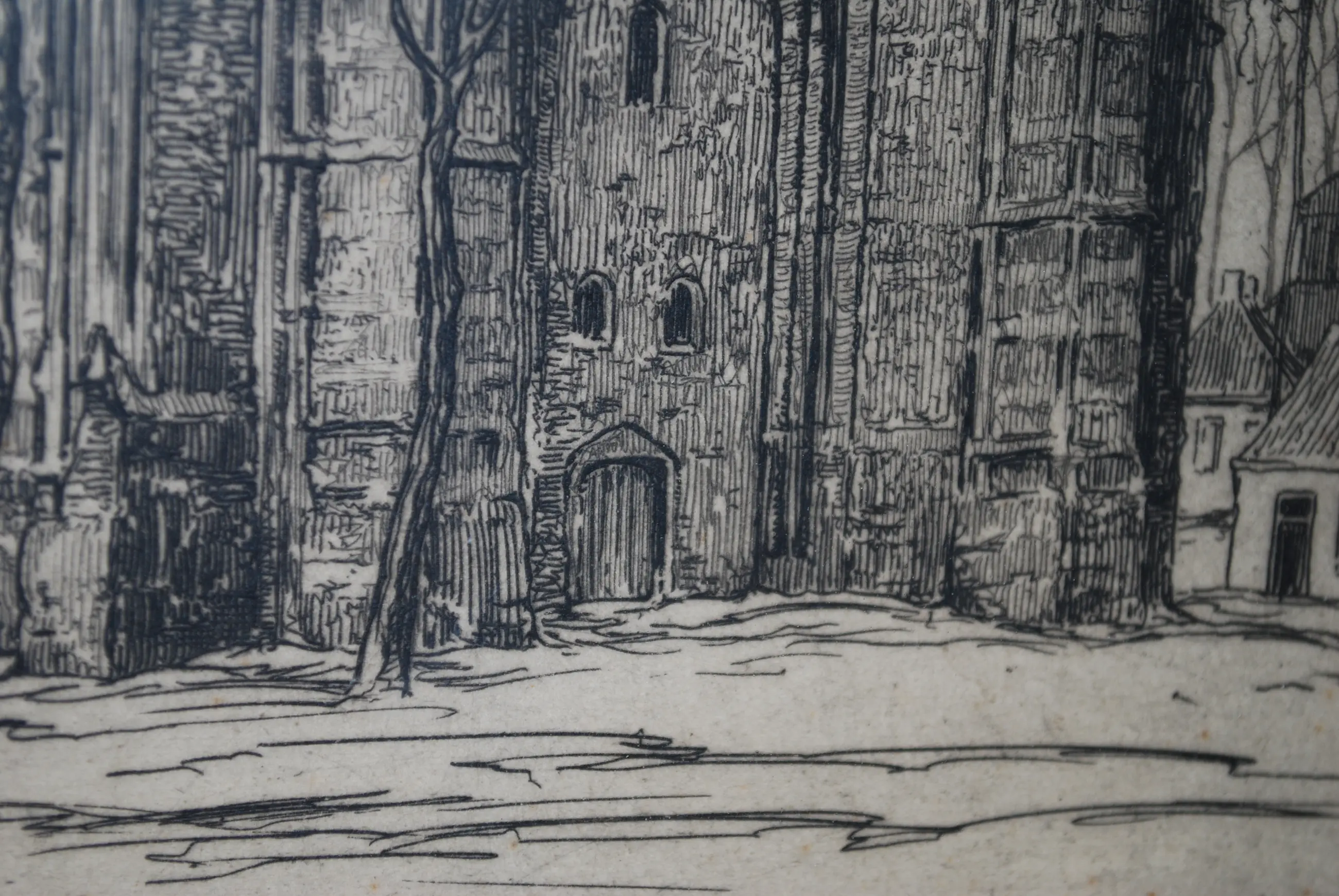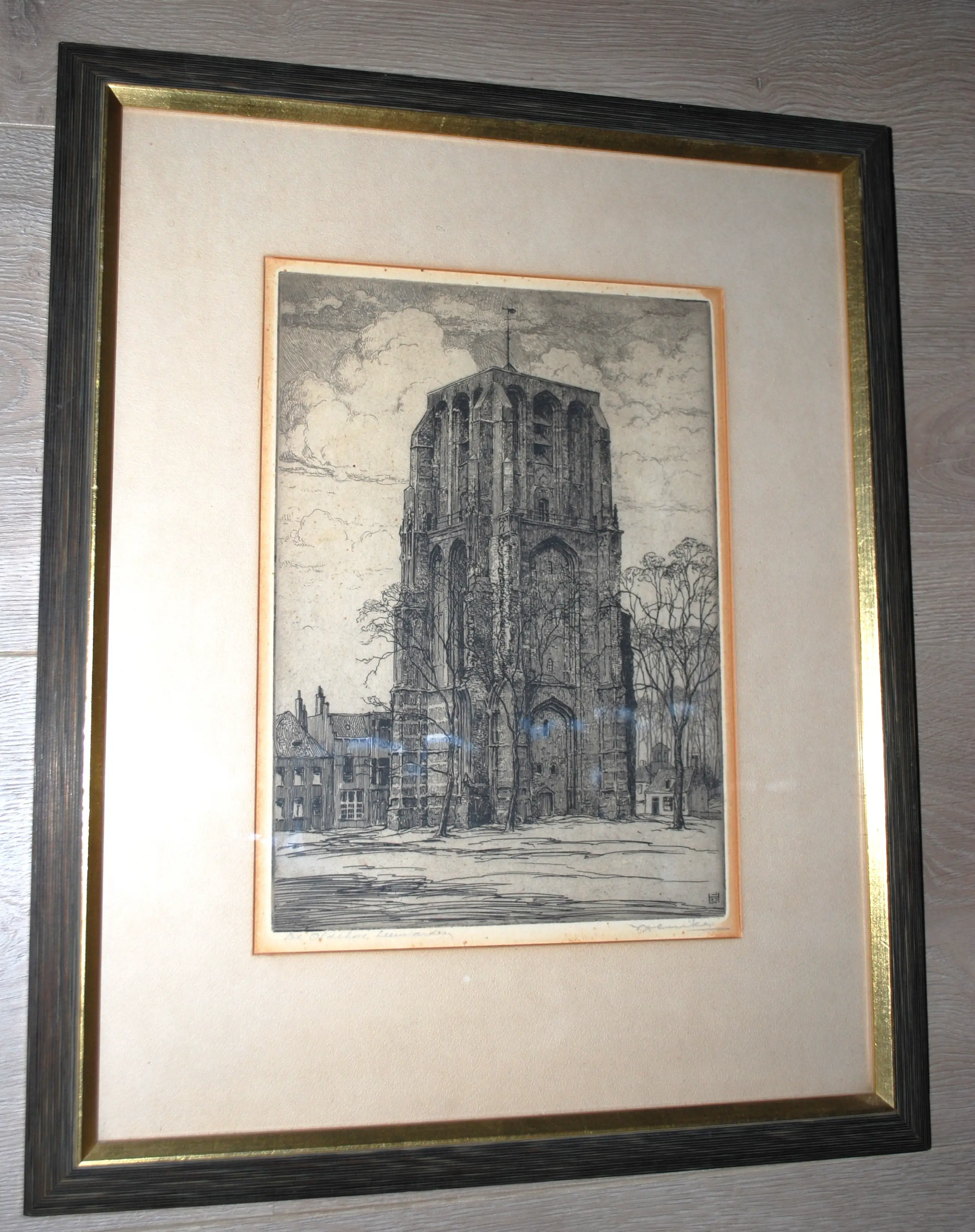 Kerktoren Oldehove, Leeuwarden. Afb. 30x21 cm. De foto's vertonen lichte spiegeling door het glas.