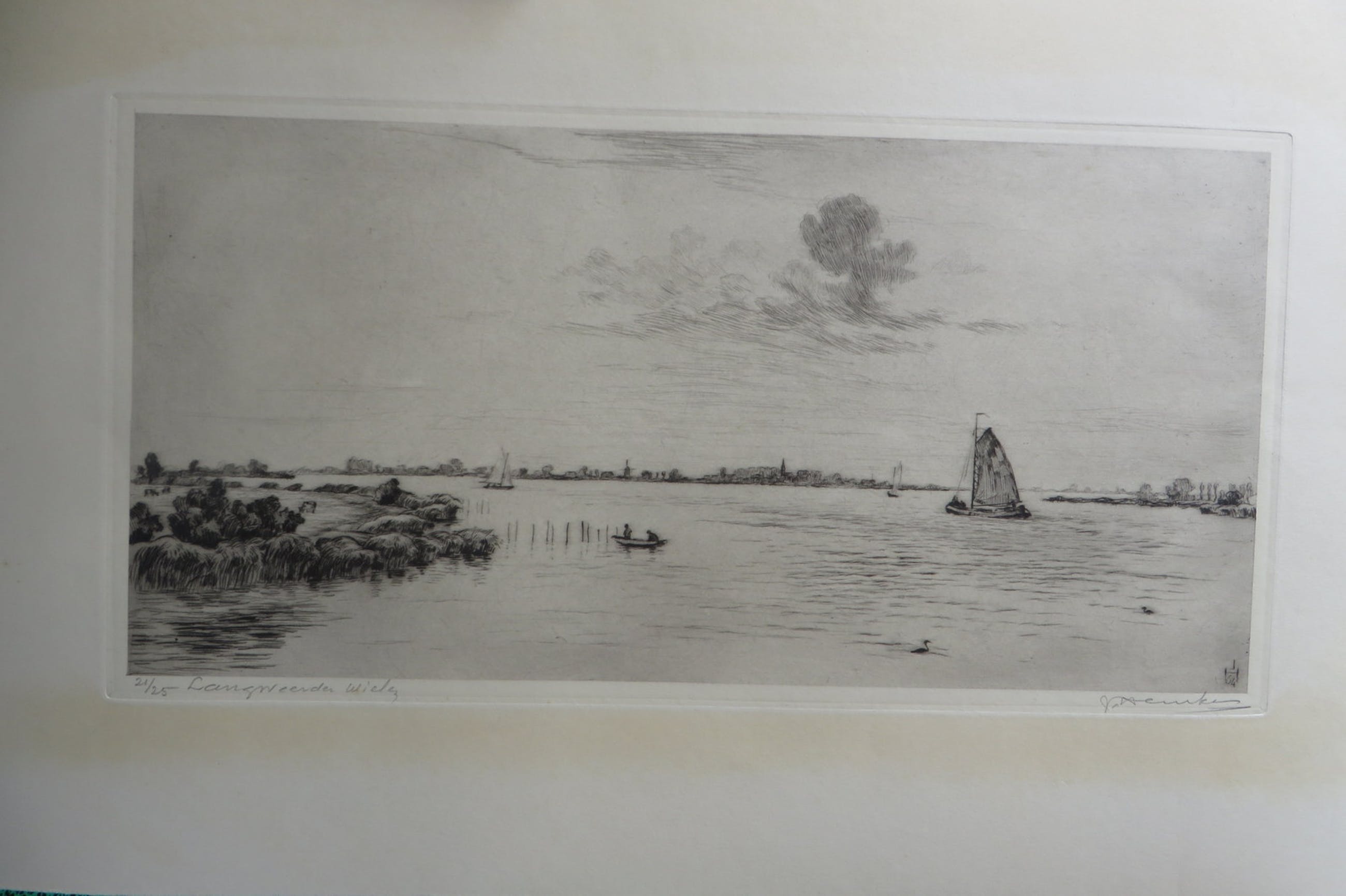 De Langweerder Wielen bij het Sneekermeer/Friesland. Gemonogrammeerd in de plaat met datering. Gesigneerd met potlood onder de plaat R.O.