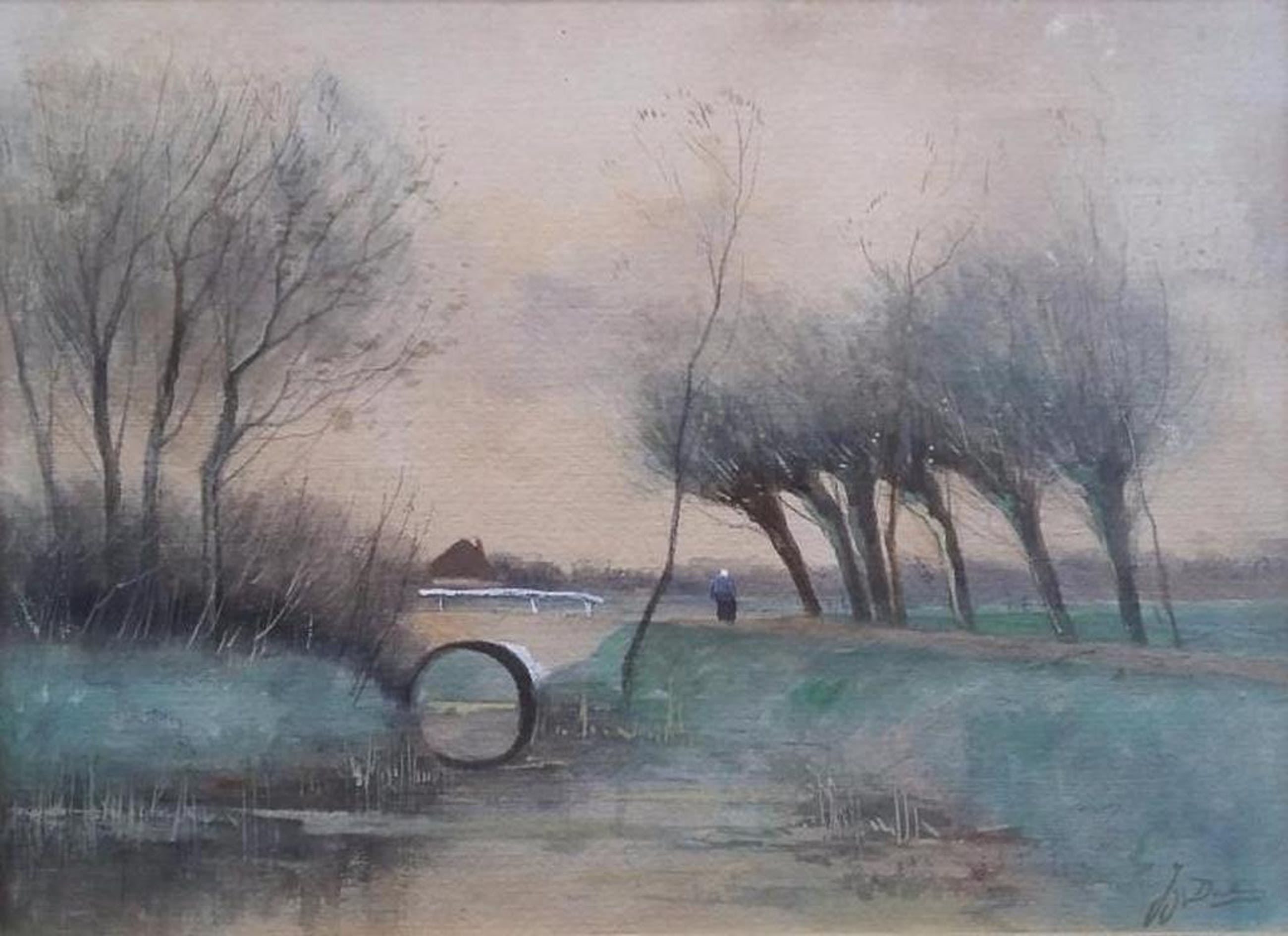 Aquarel van de bekende schilder J.H. Doeleman. Lijst is eenvoudig en zou voor het mooie vervangen moeten worden.