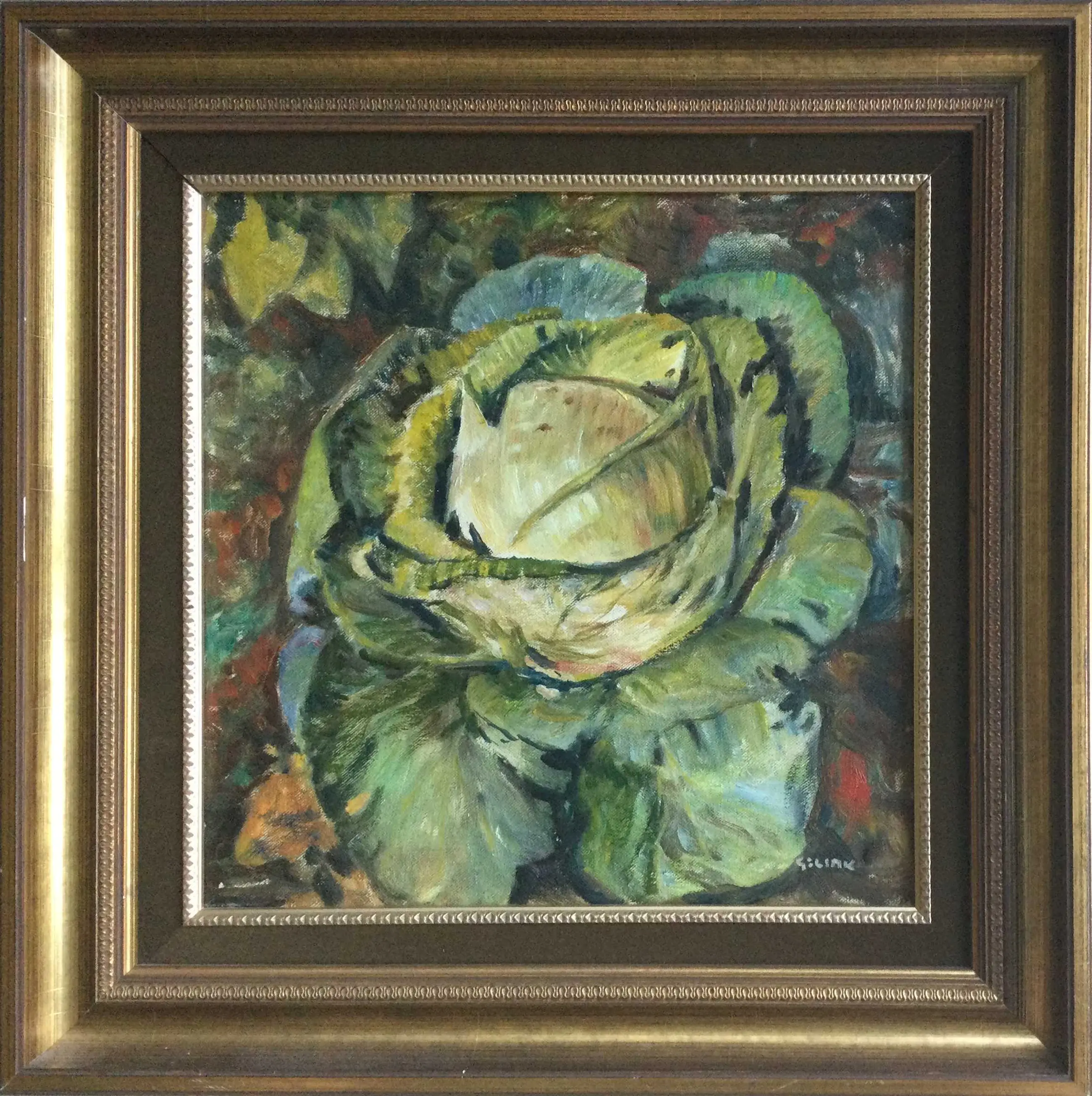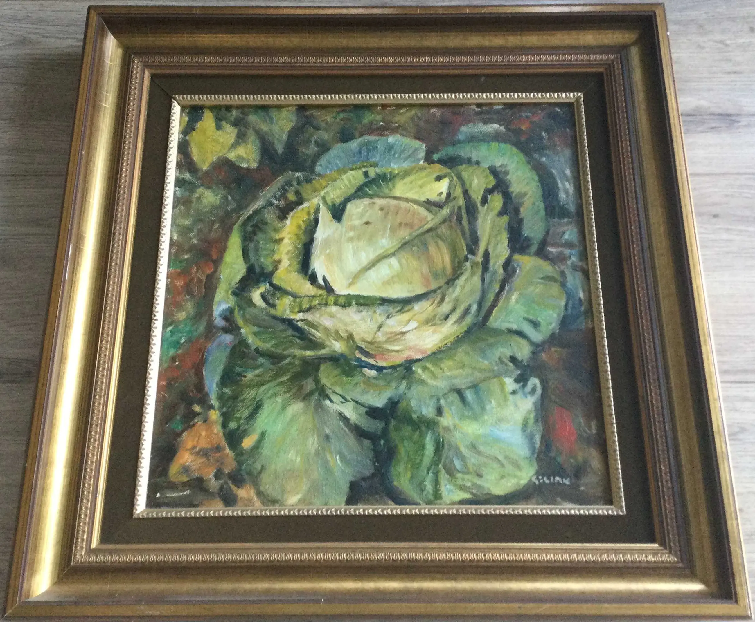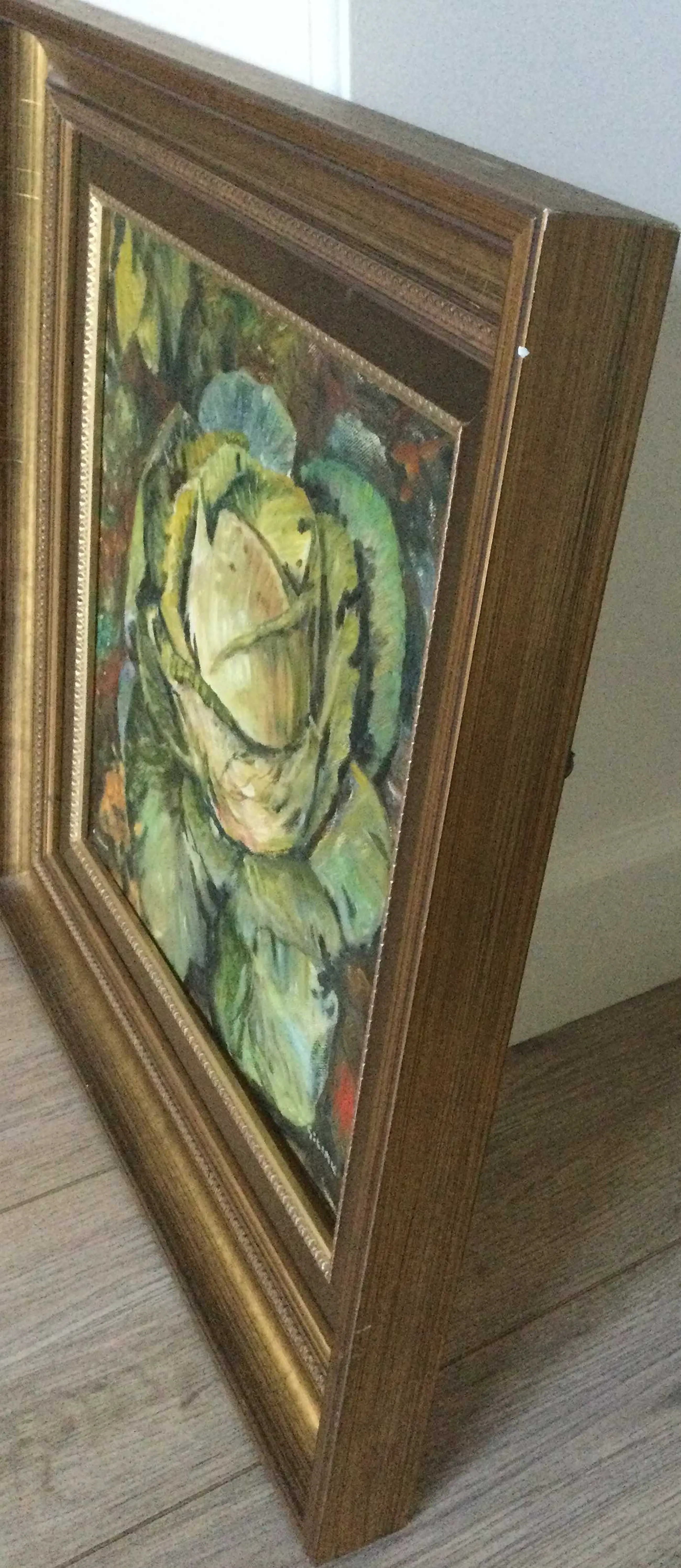 Dit fraai ingelijste olieverf schilderij toont op welhaast impressionistische wijze een witte kool. Met veel gevoel voor stijl en kleur geschilderd.
