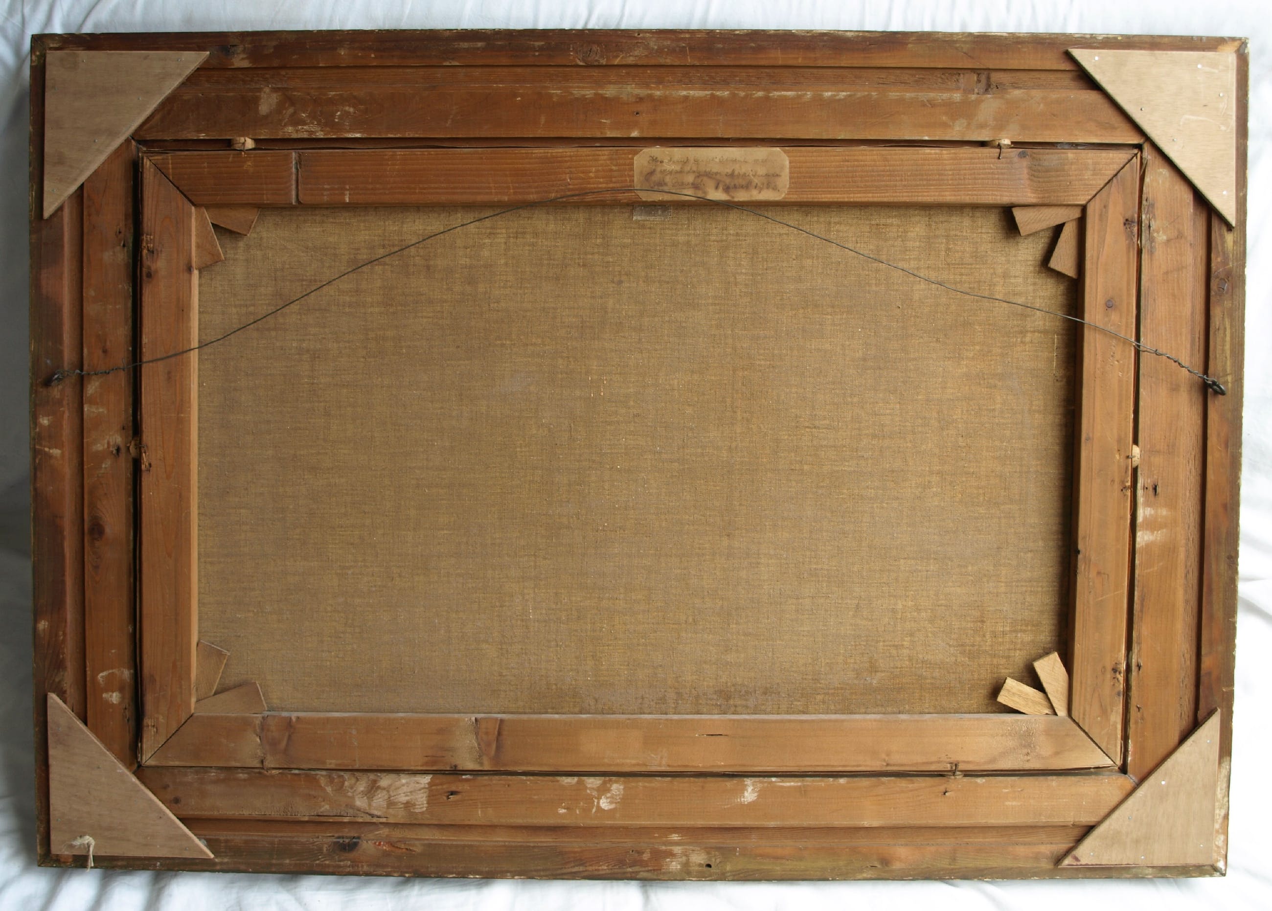 Olieverf op doek, gespannen op een houten spieraam en ingelijst in de originele houten lijst met sierrand.