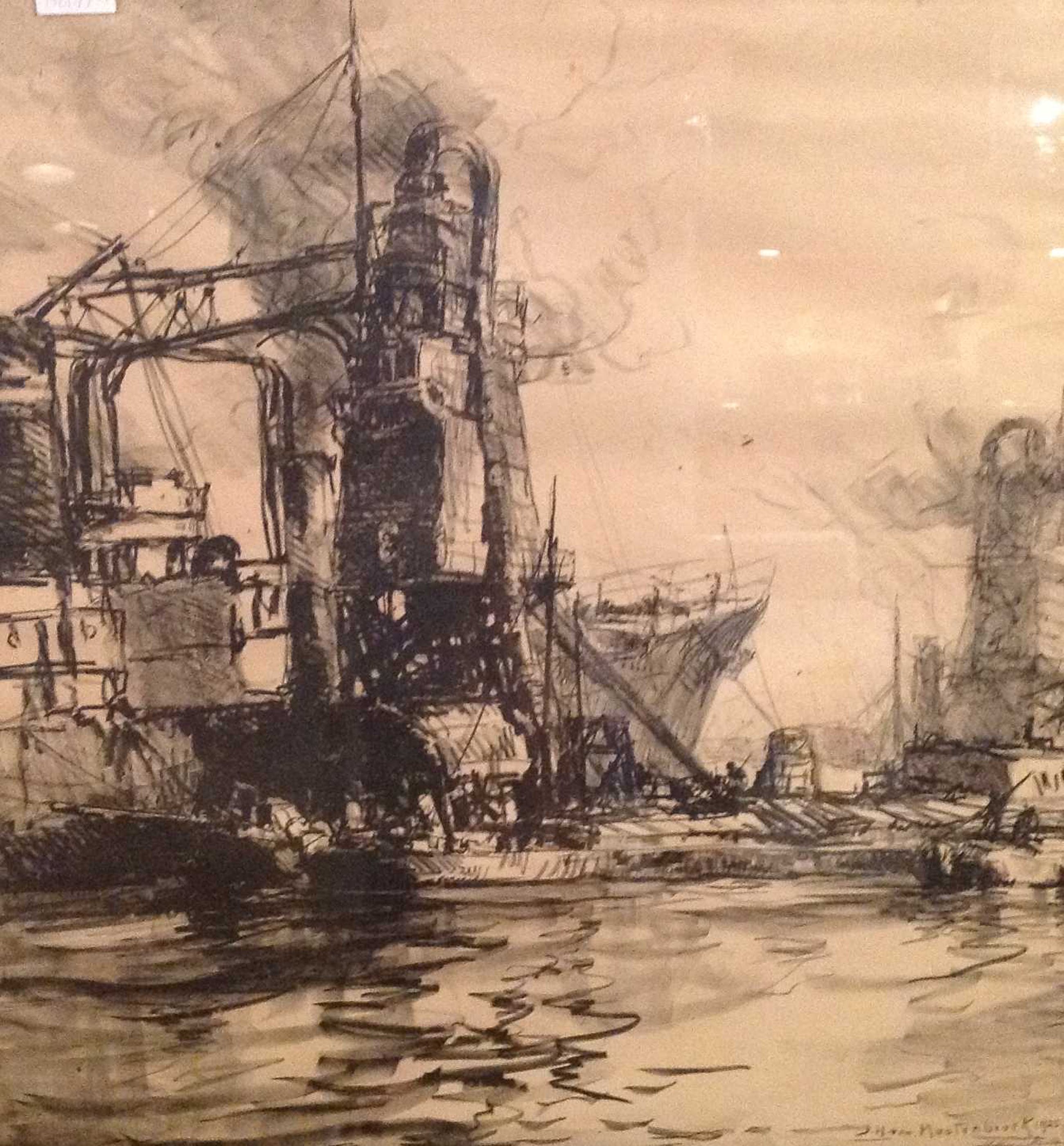 JH van Mastenbroek, litho, havengezicht, 70x67, lijstmaat 77x74, r.o. gesigneerd.