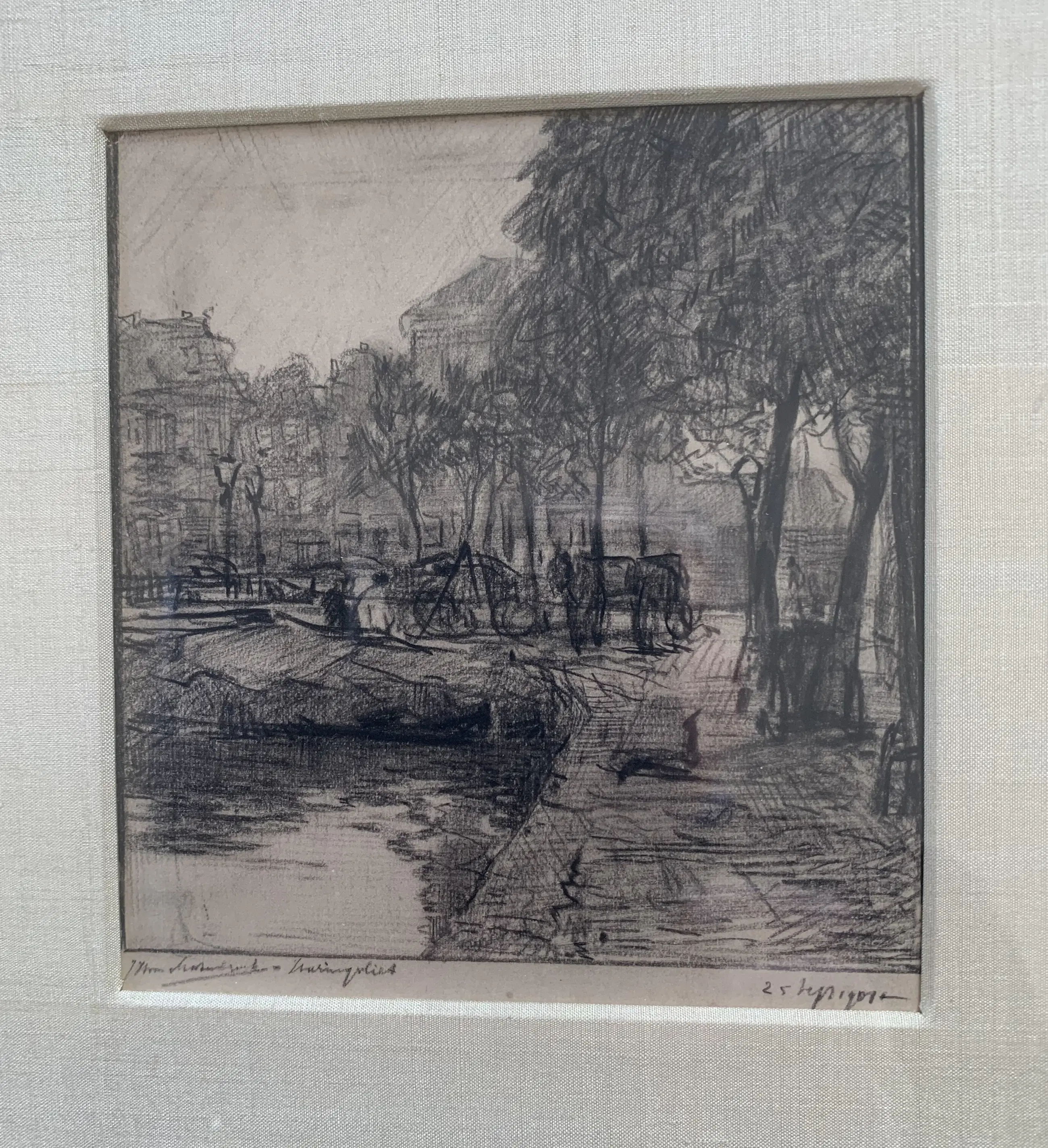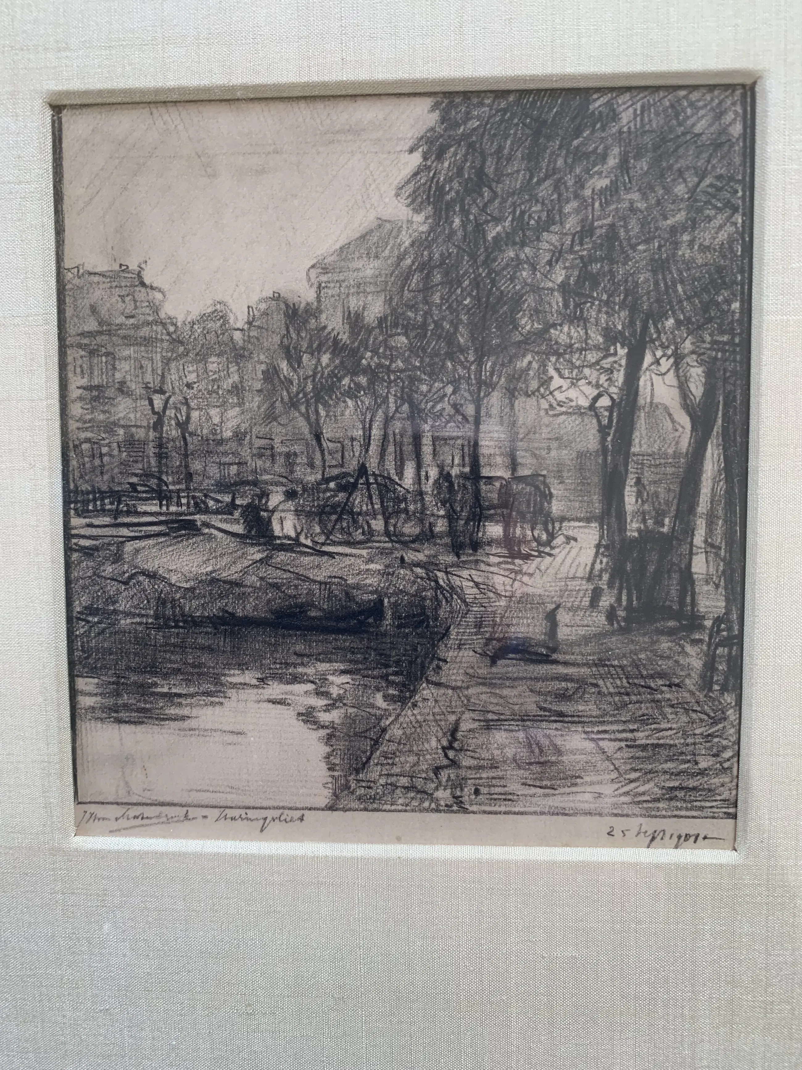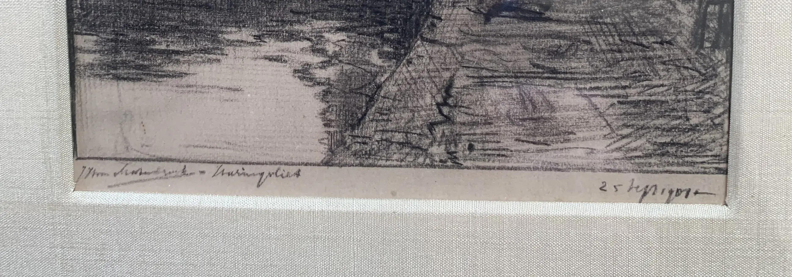 Een mooie tekening in potlood en zwart krijt met gezicht op het Haringvliet in Rotterdam door de bekende kunstenaar Johan Hendrik van Mastenbroek (zie Wikipedia !). Gesigneerd, betiteld en gedateerd (25 sept. 1901). Professioneel mooi ingelijst.
