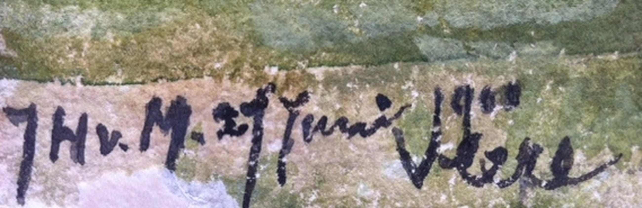 Hierbij aangeboden een echte buitenkans voor de verzamelaar of kunsthandelaar in het werk van Johan Hendrik van Mastenbroek. Het betreft een aquarel, genaamd "Zomers gezicht op de Dom van Veere" met de afmetingen 35 bij 48 cm. Het werk zit in een lijst uit dezelfde tijd die eveneens geen enkele beschadiging kent.