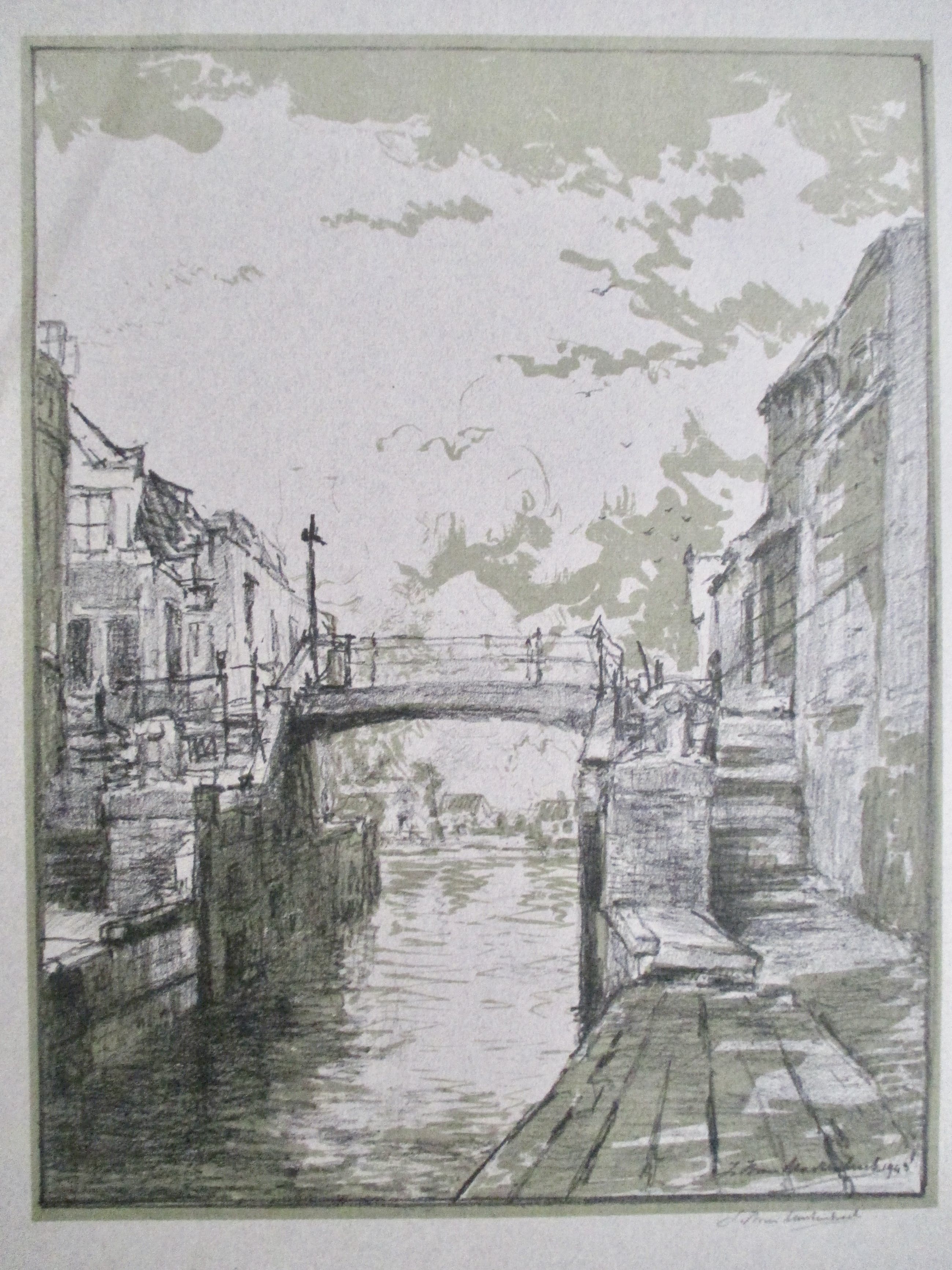 uit 1943, voorstellende een sluisje te Rotterdam, gesign in plaat r.o en