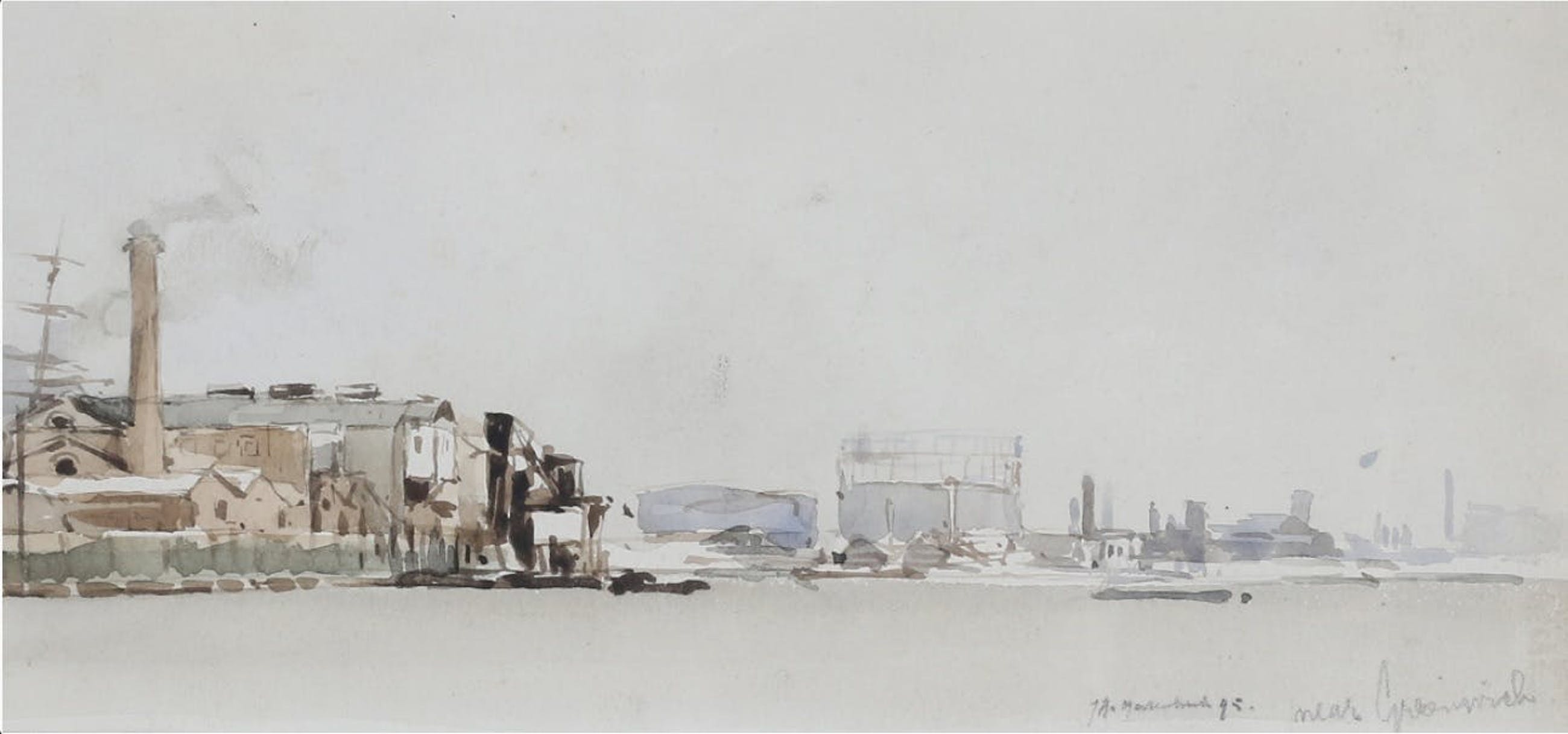 De Thames bij Greenwich. Gesigneerd en gedateerd '95 r.o.