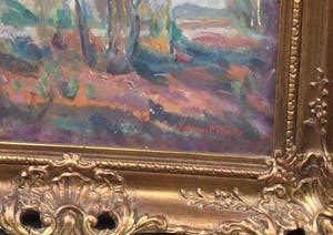 | Doek bevat oppervlaktevuil en verkleurde vernis door de tijd, lichte spieraamdoorslag en doek bobbelt ietsjes, miniscuul plekje verfverlies linksboven. De lijst bevat oppervlaktevuil en slijtschade door de tijd. | |