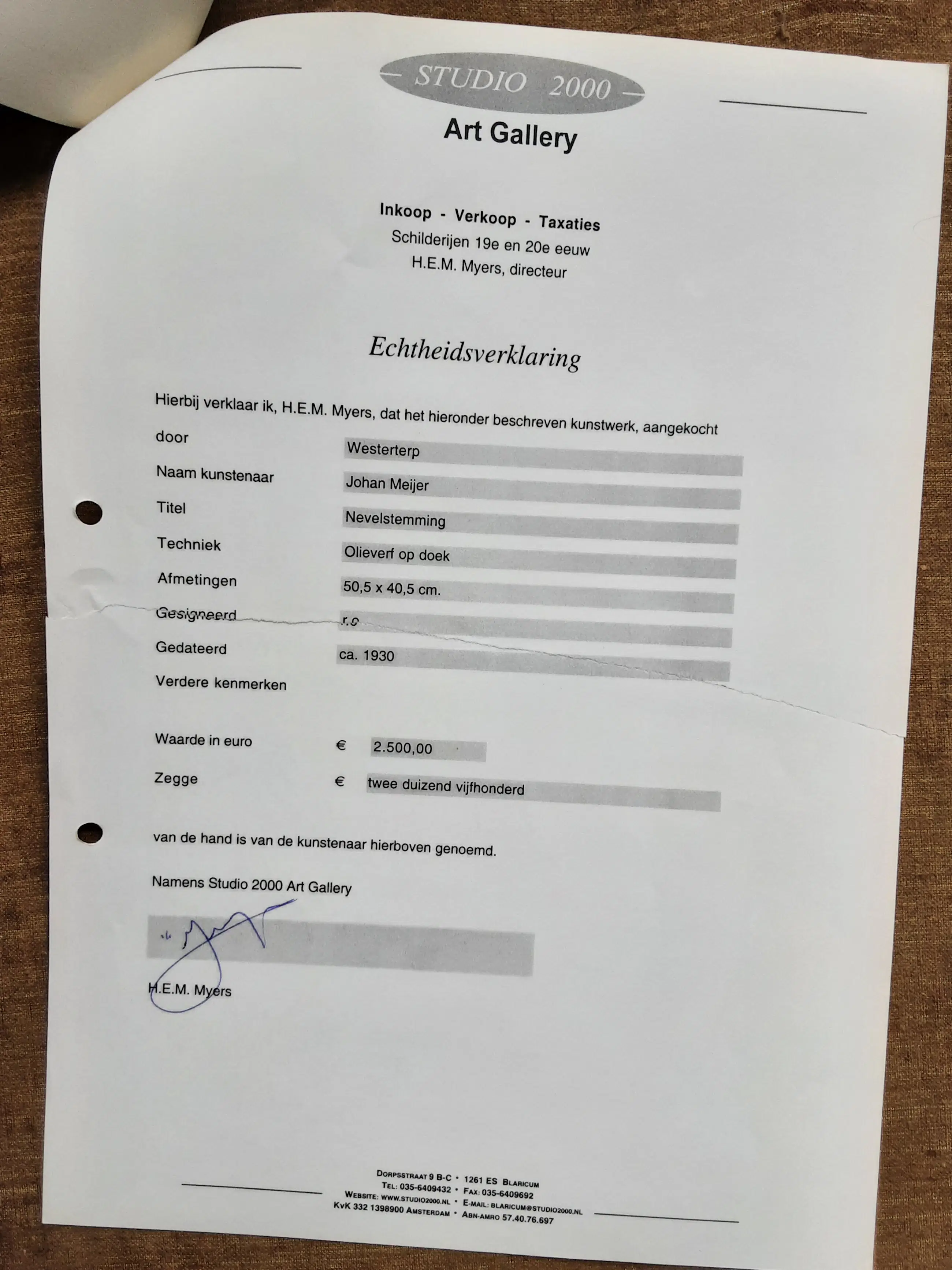 Het schilderij is ongeveer 95 jaar oud, ziet er niet uit "als nieuw"