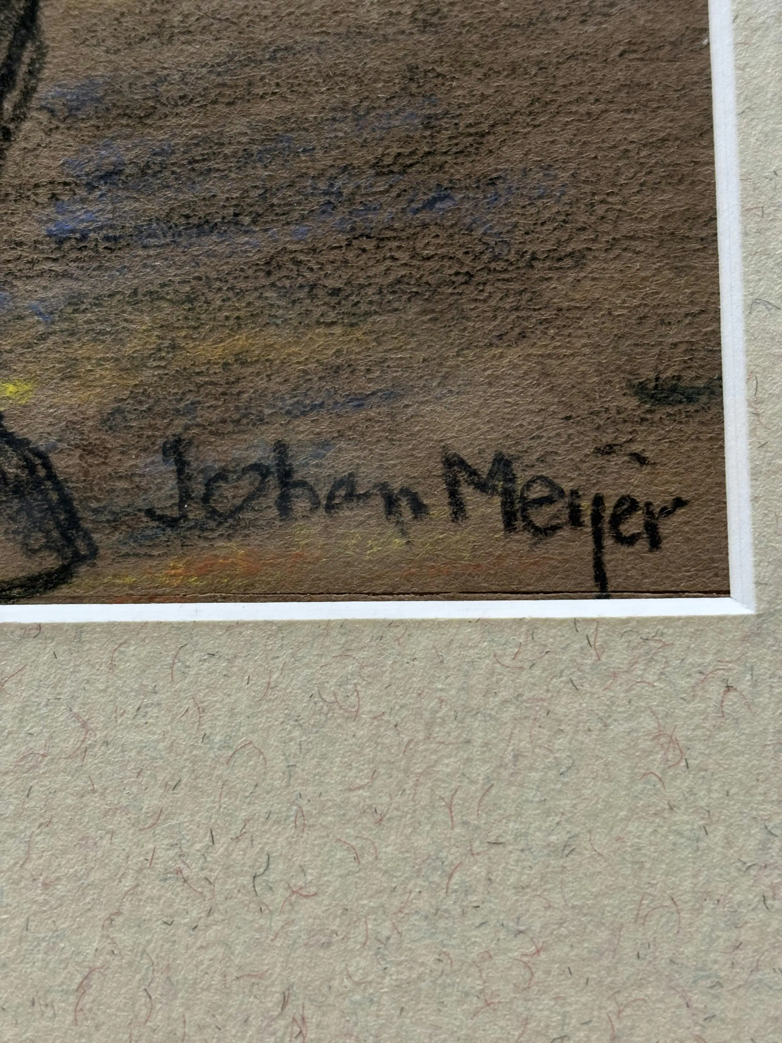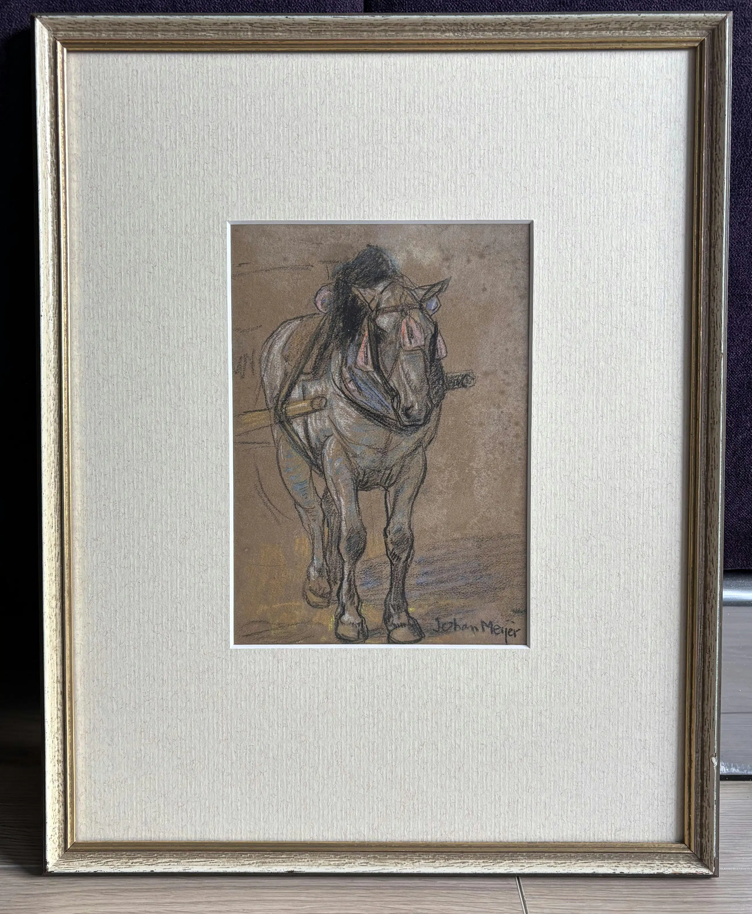 Mooi ingelijste pastel tekening van een trekpaard getekend door Johan Meijer.