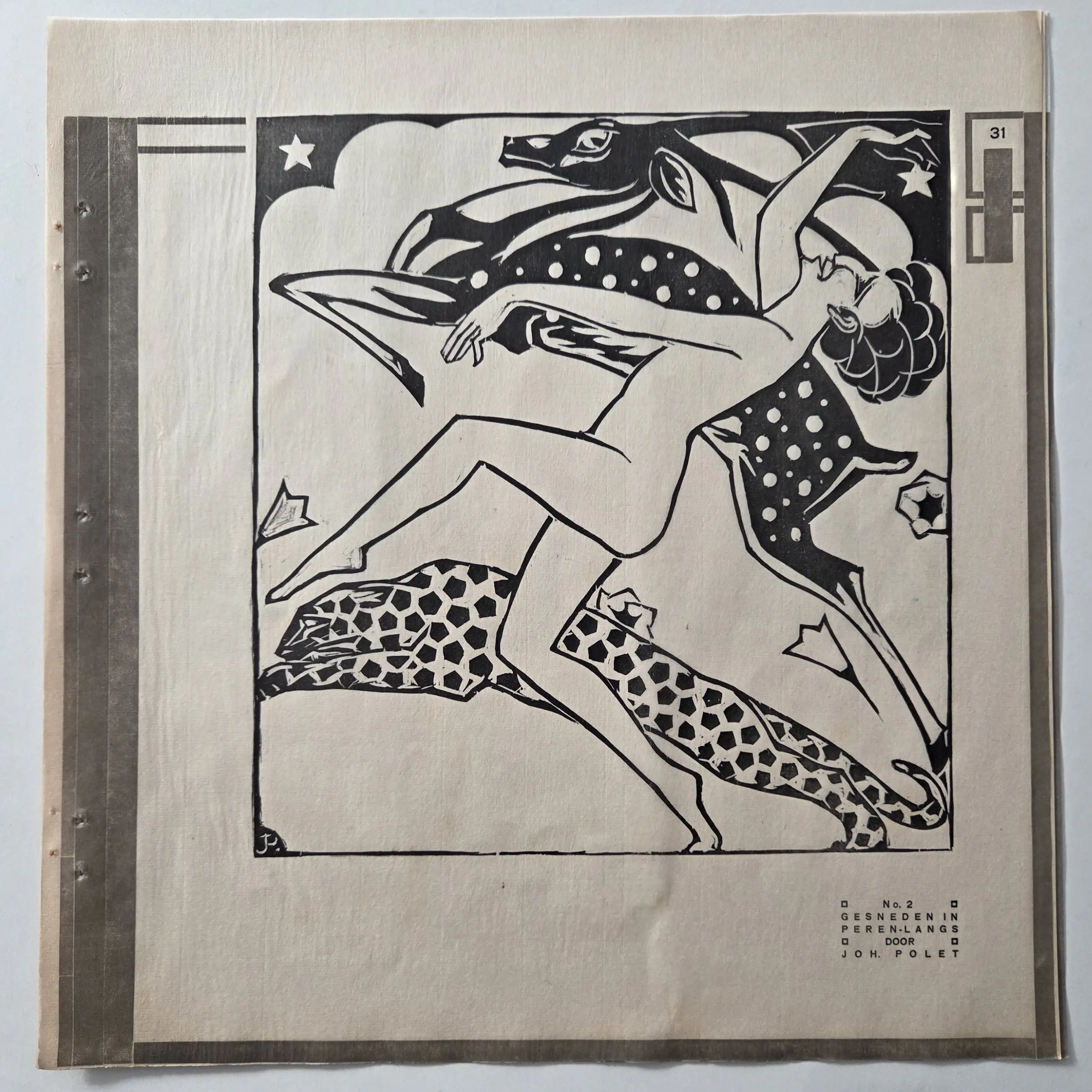Johan Polet - Danseres. Naakt. Houtsnede uit Wendingen.