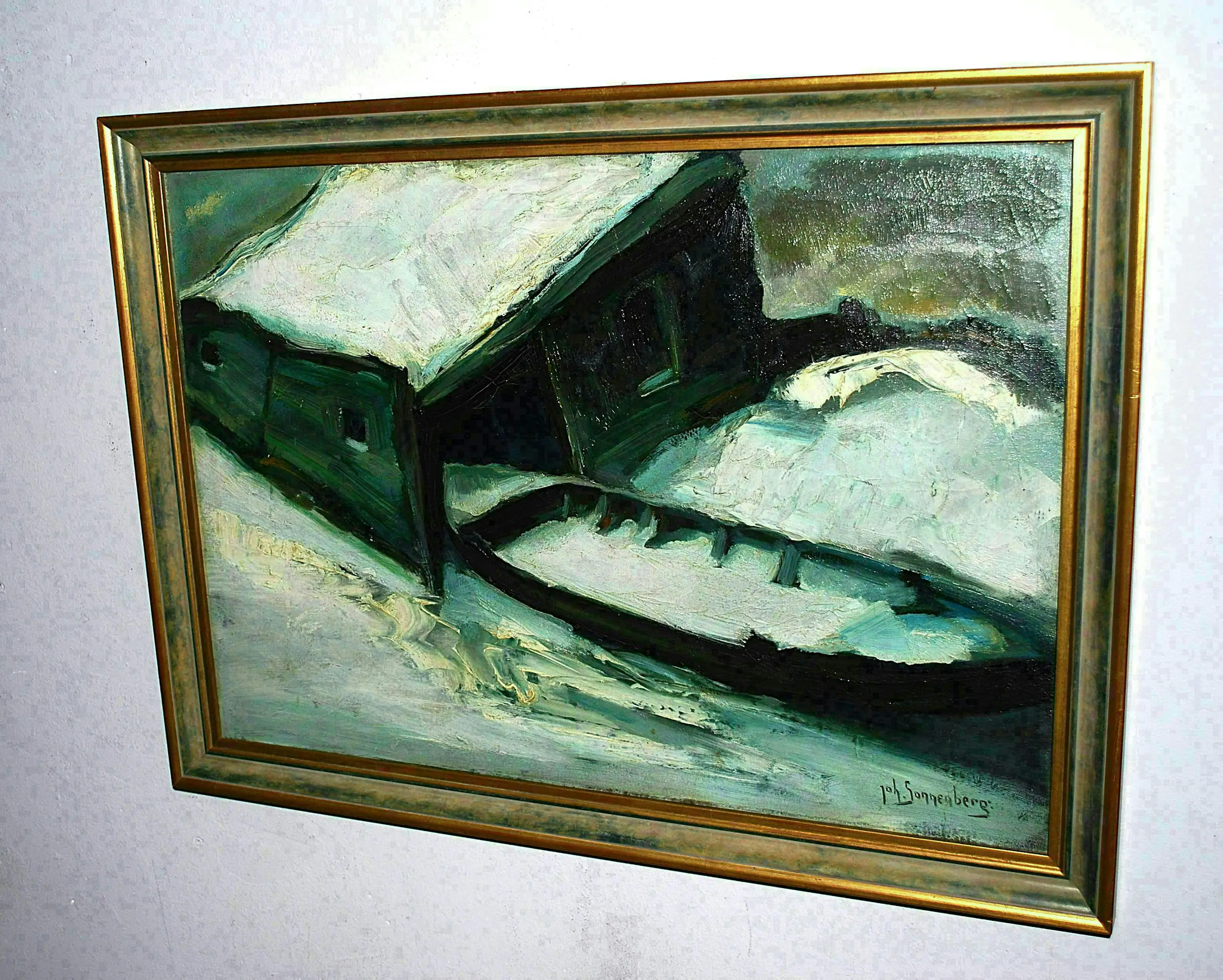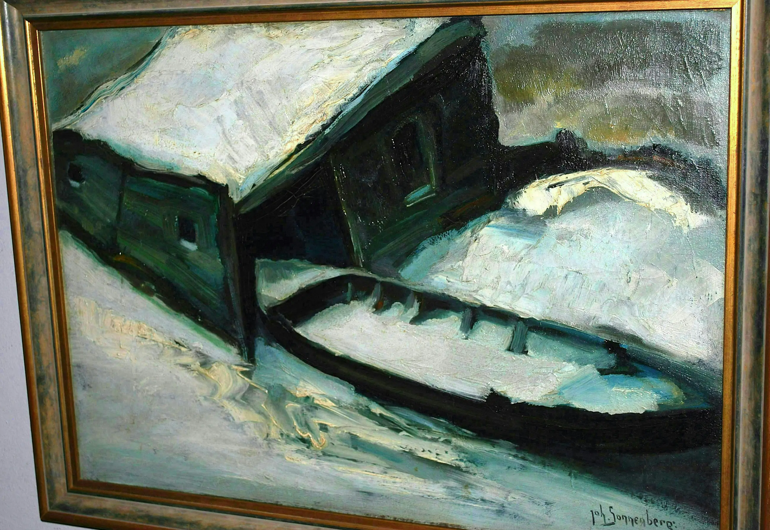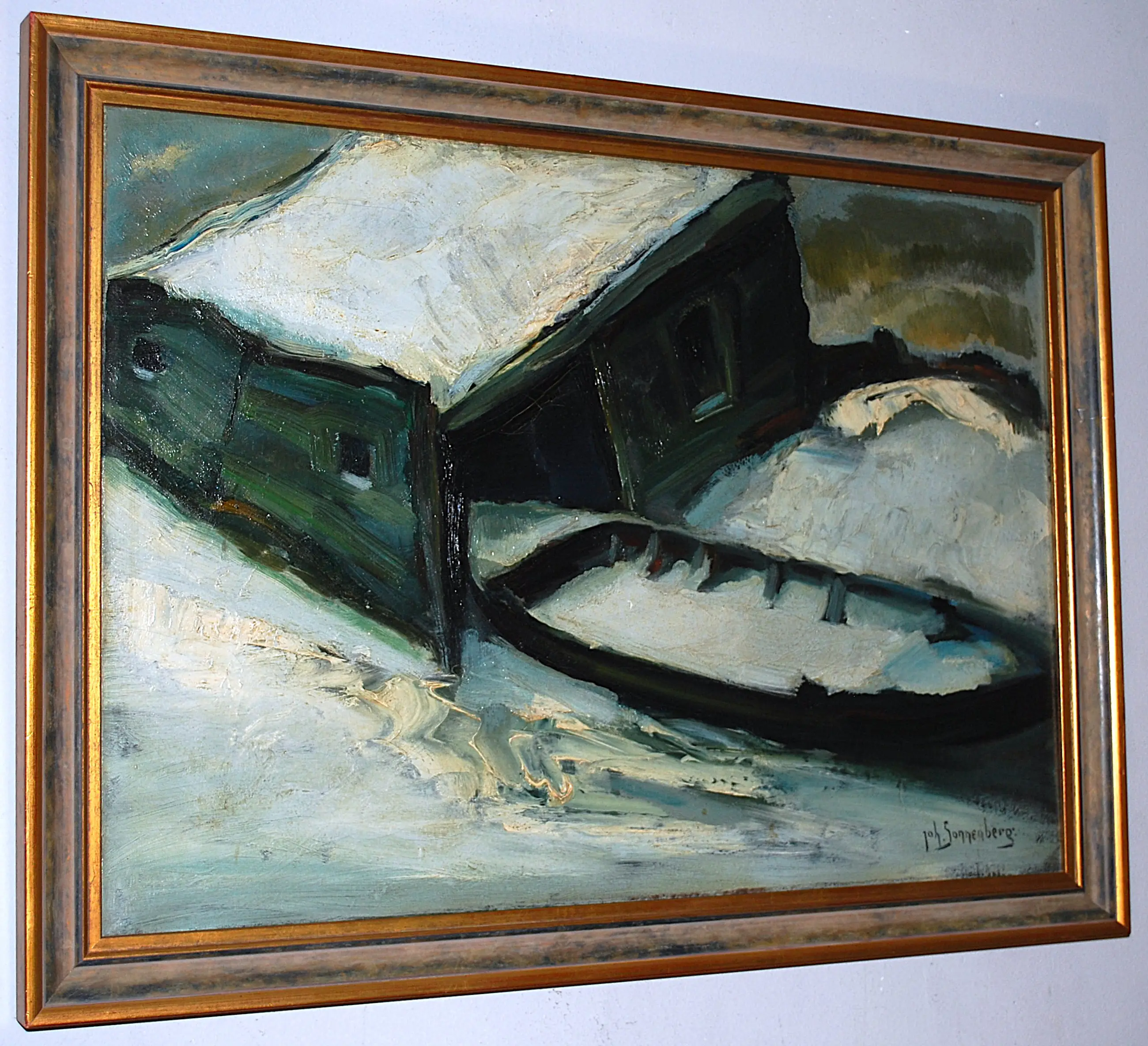 Johan Sonnenberg - botenhuis in de sneeuw - olieverfschilderij uit 1925