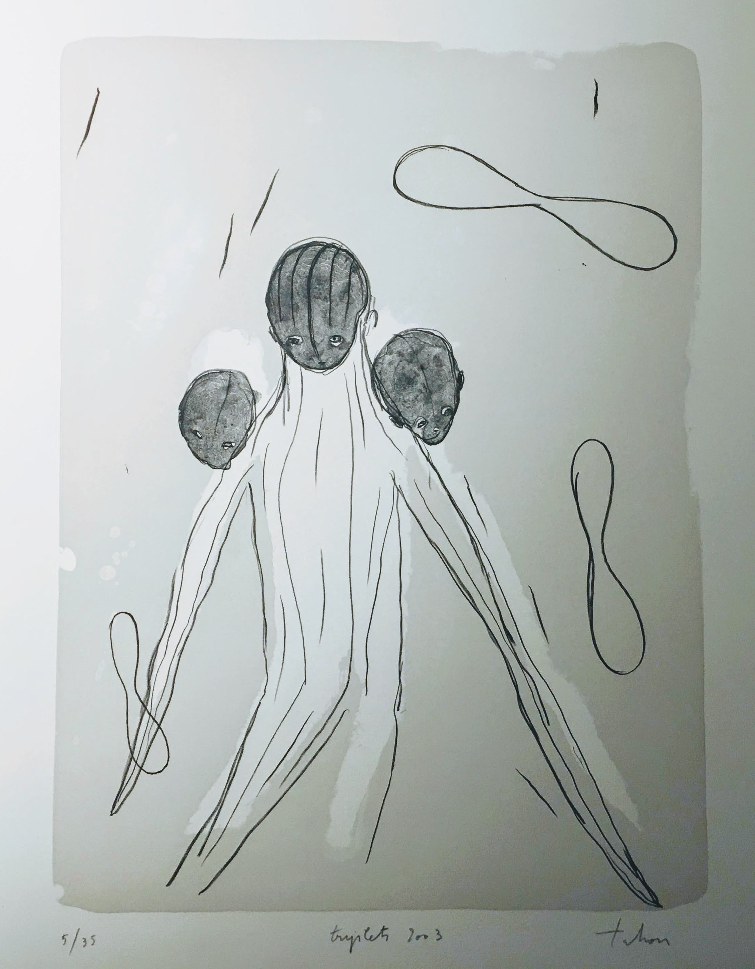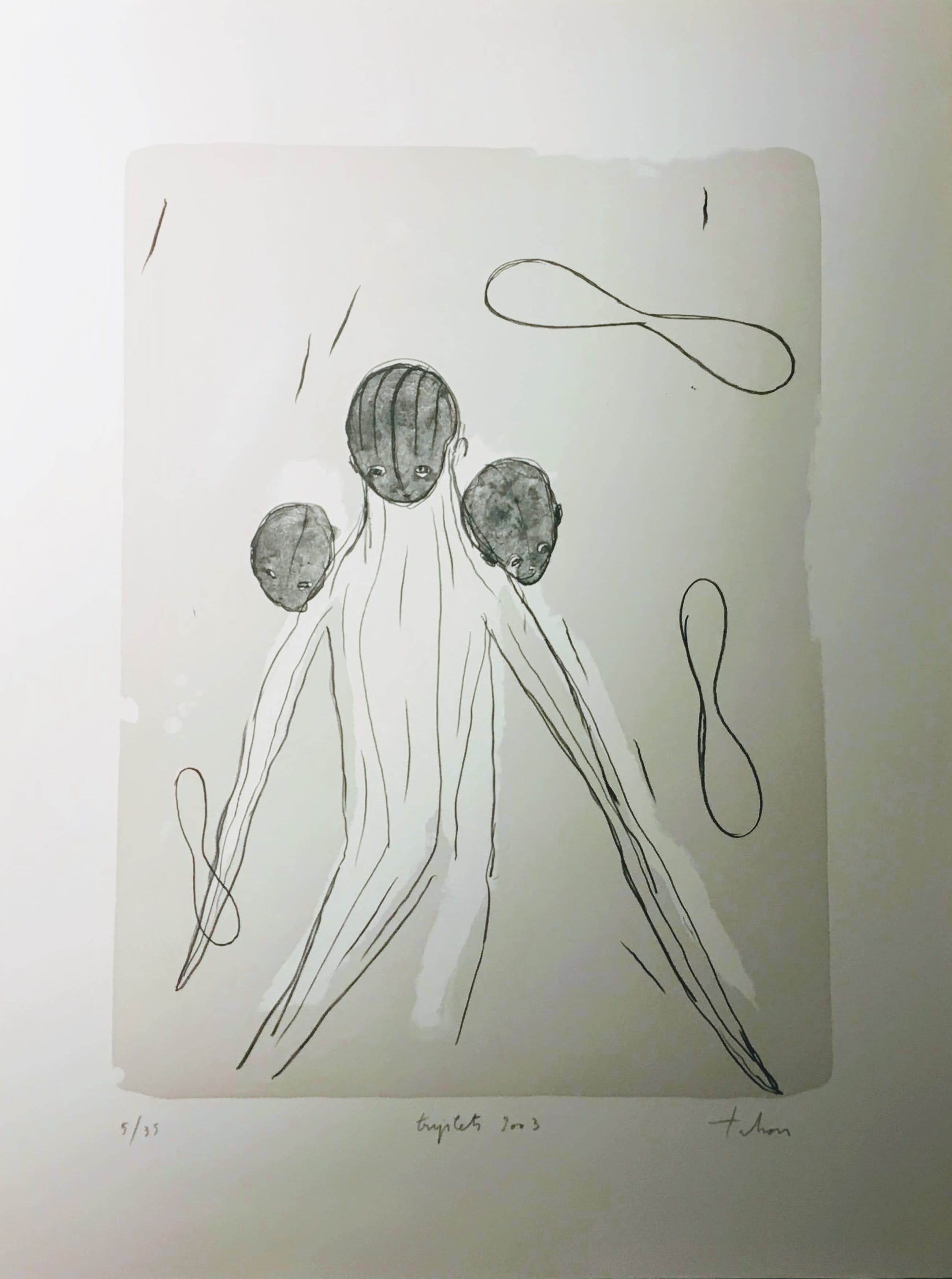 Gesigneerd in potlood (Tahon), Genummerd in potlood (5/35), Betiteld in potlood ("Triplet"), Gedateerd in potlood (2003)