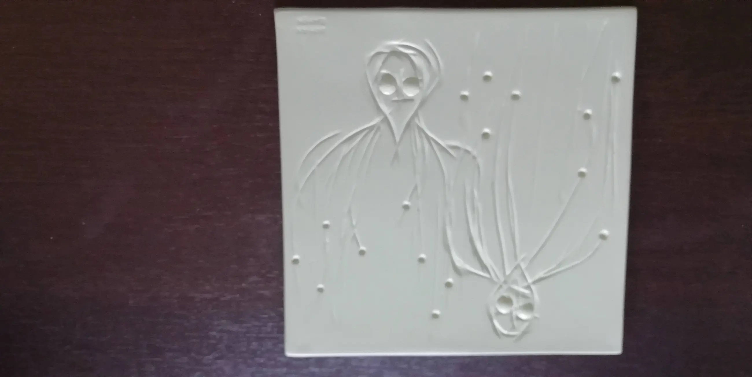 Gesigneerd vooraan in het bord, en achteraan met stift. Perfecte staat, het bord heeft een groene kleur wat niet goed wordt weergegeven op de foto's.
