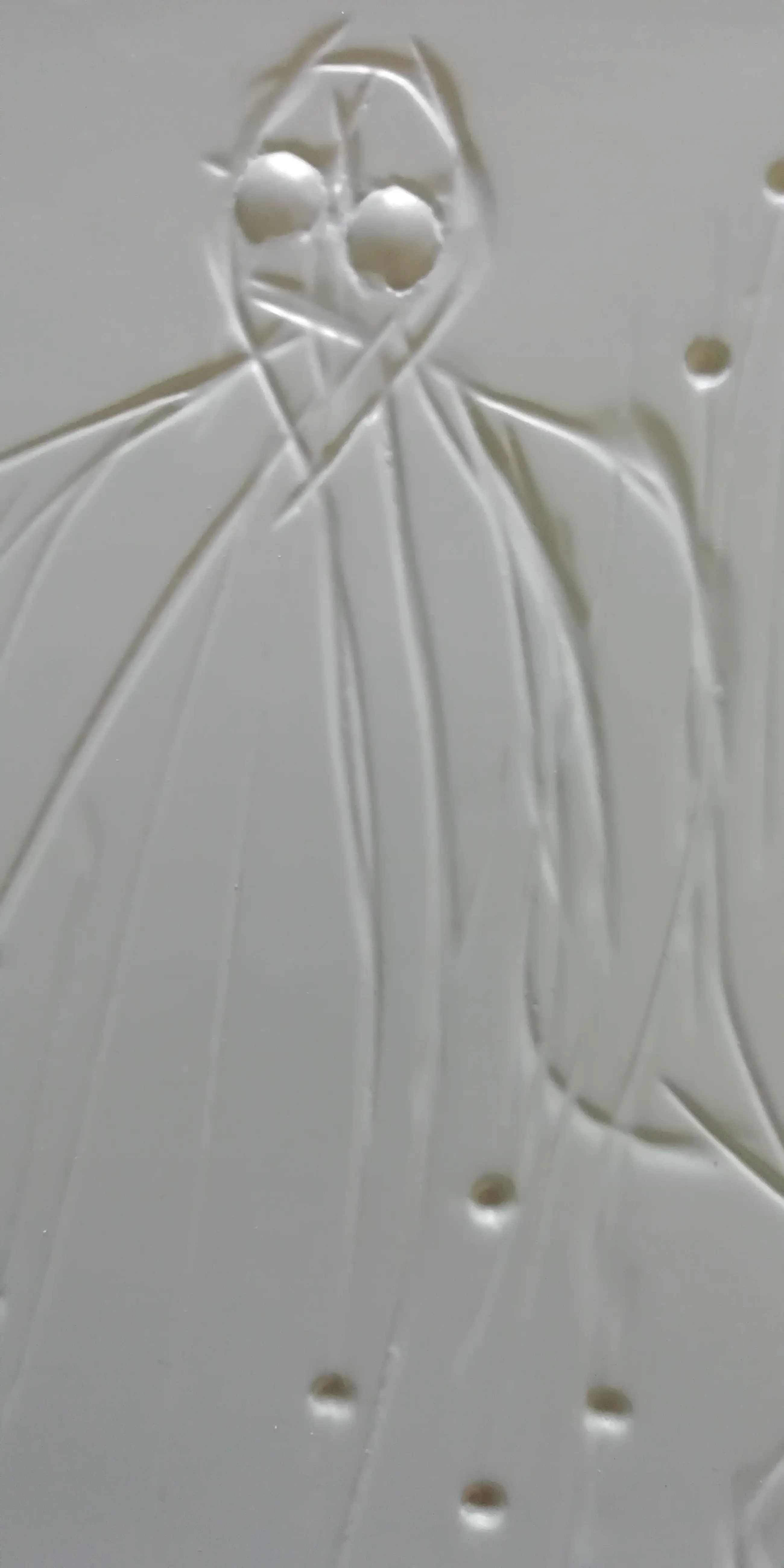 Porseleinen onderbord - onderzetter - siertegel vervaardigd door Johan Tahon nav. de cultureel-culinaire happening "met kunst aan tafel".