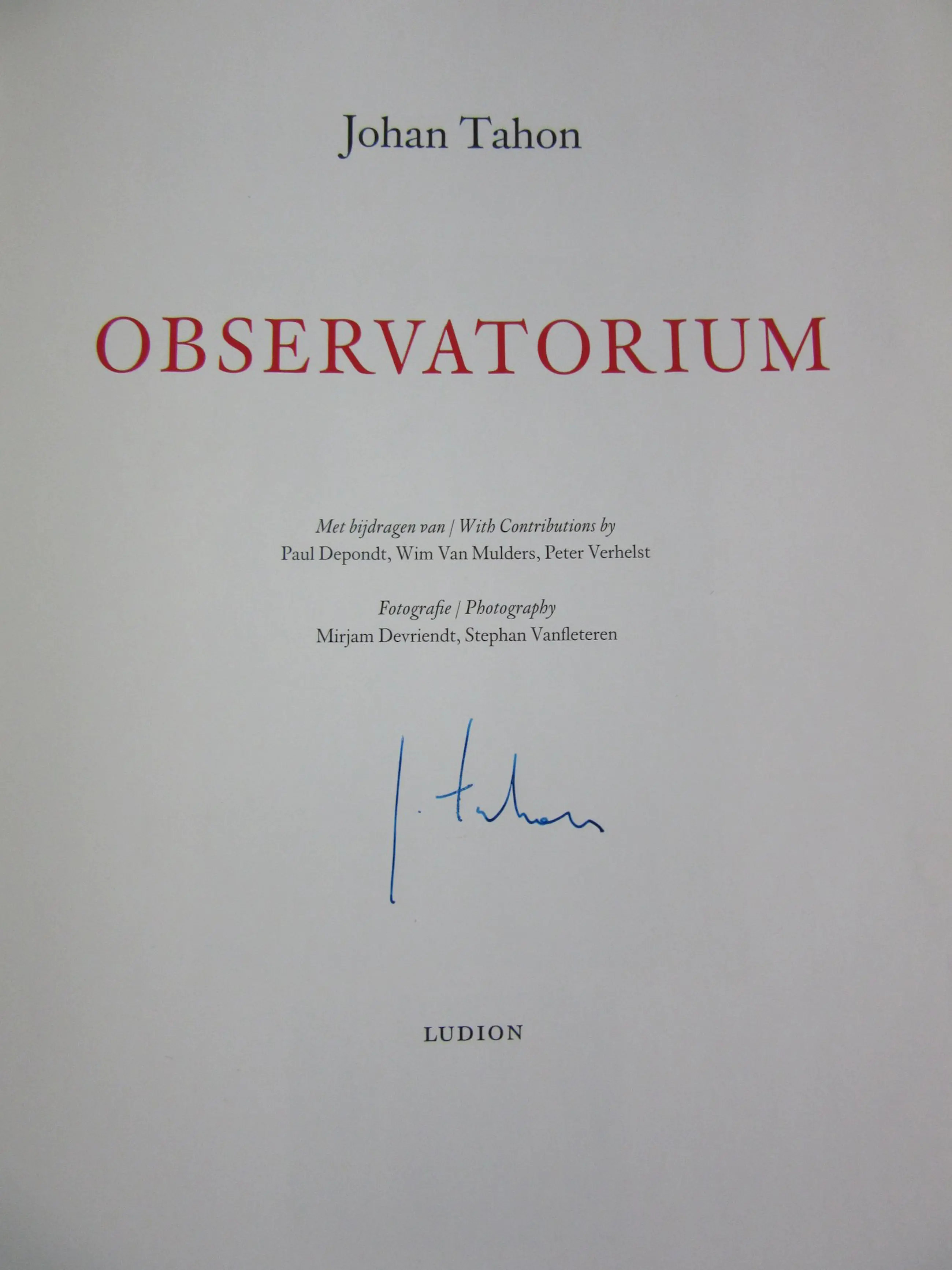 13. Johan Tahon - Observatorium. [ONDERTEKEND en met paginagrote opdracht (tekening)]