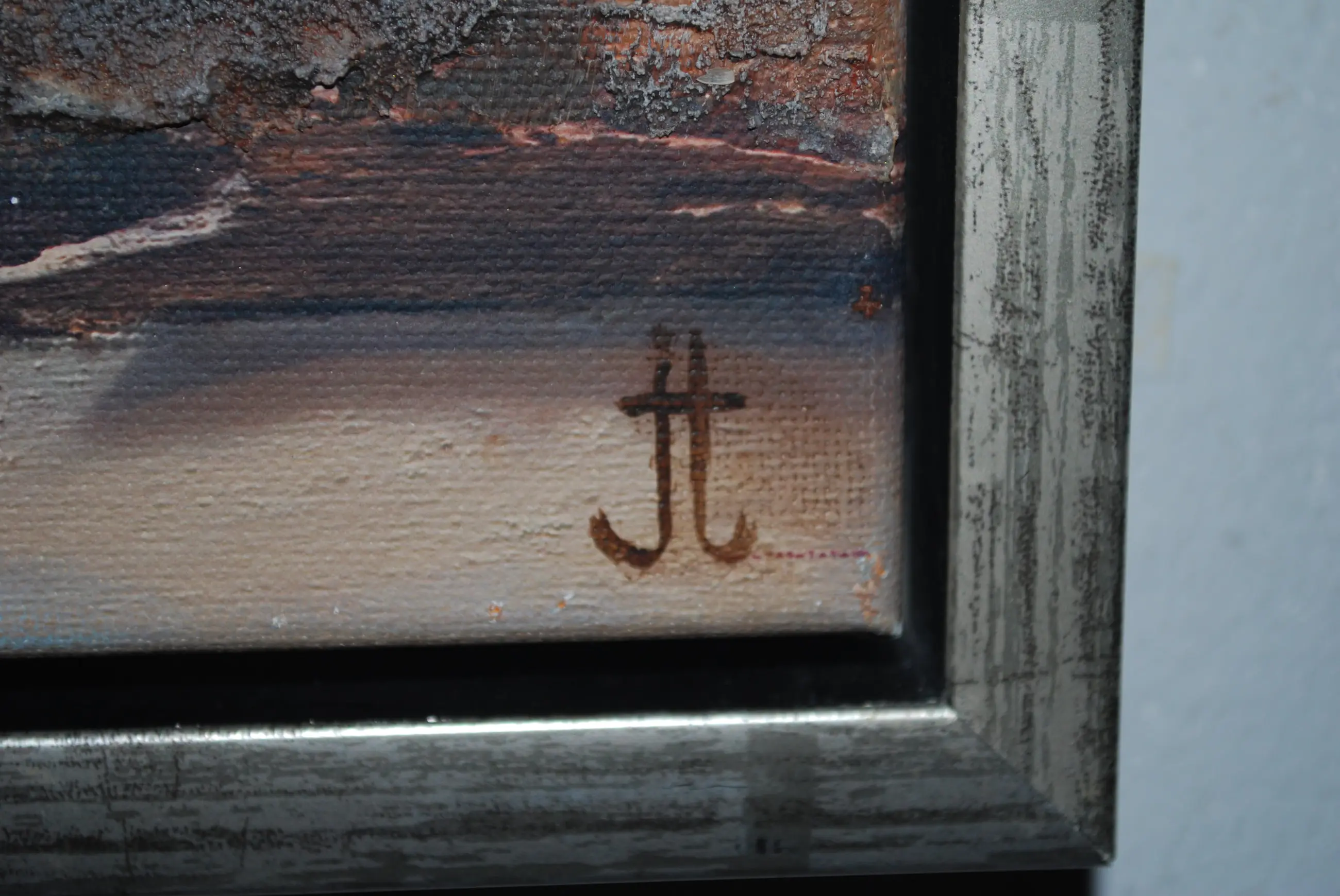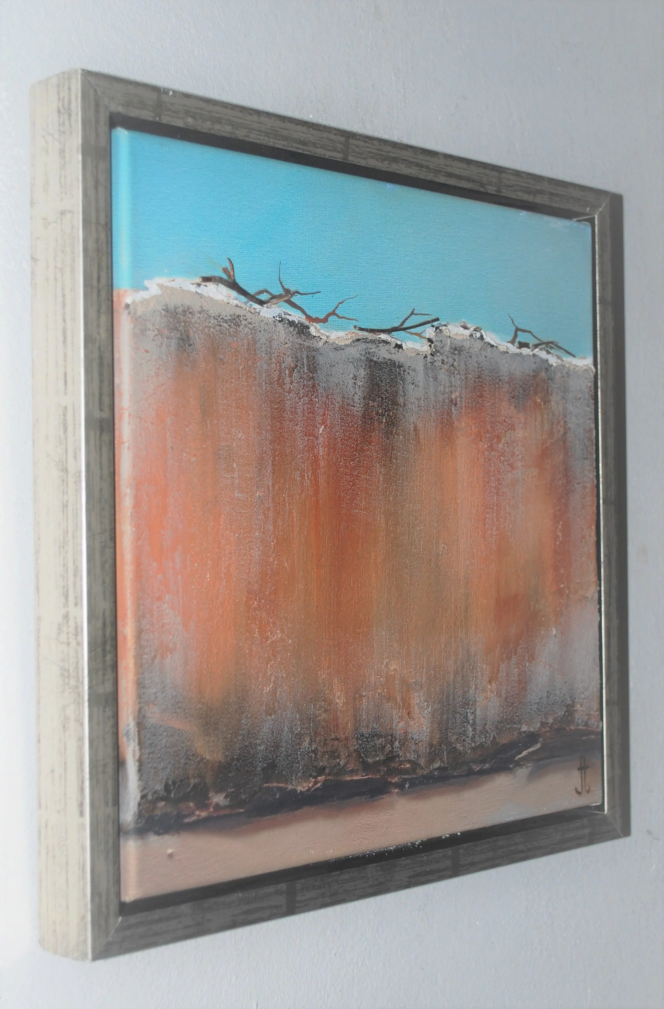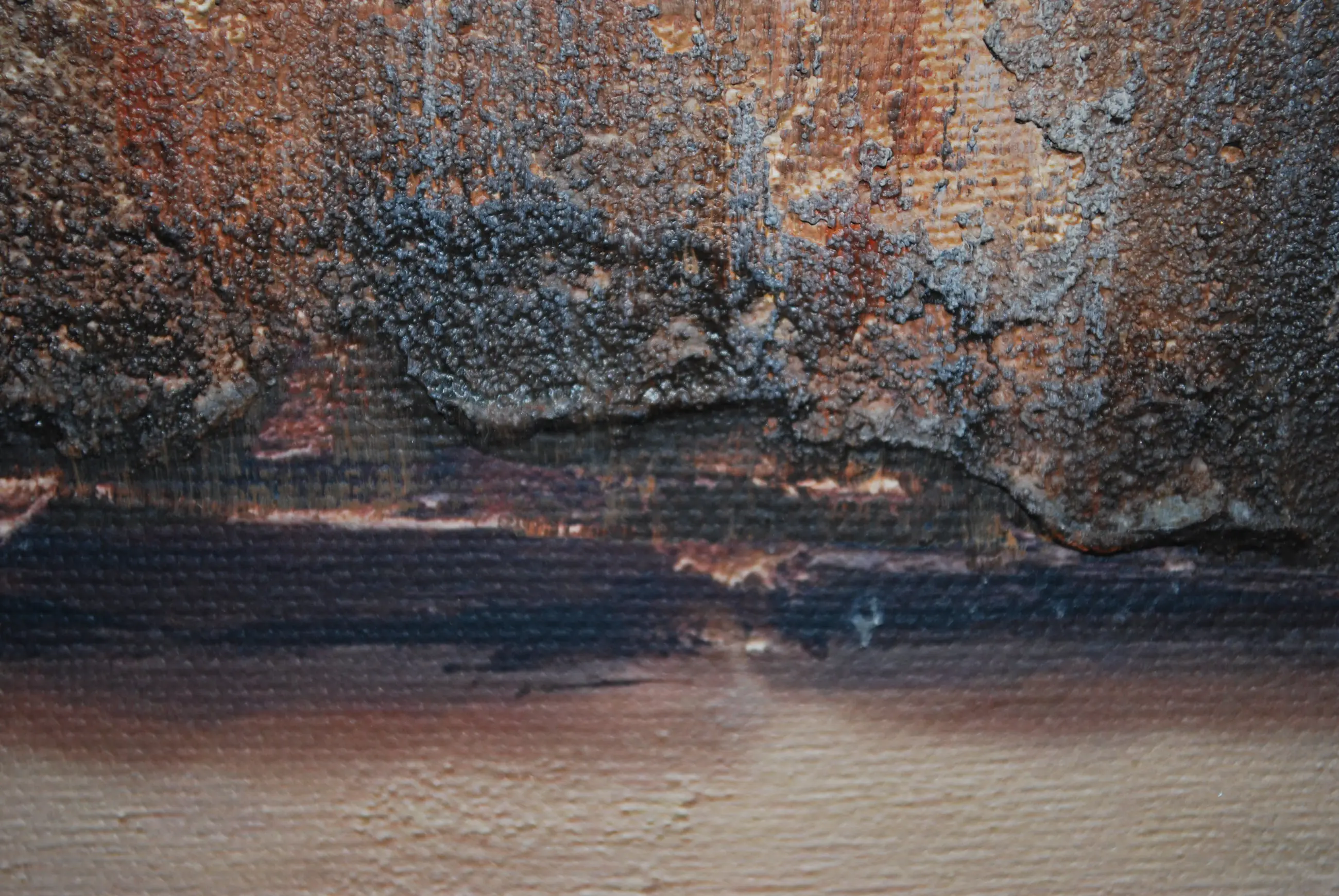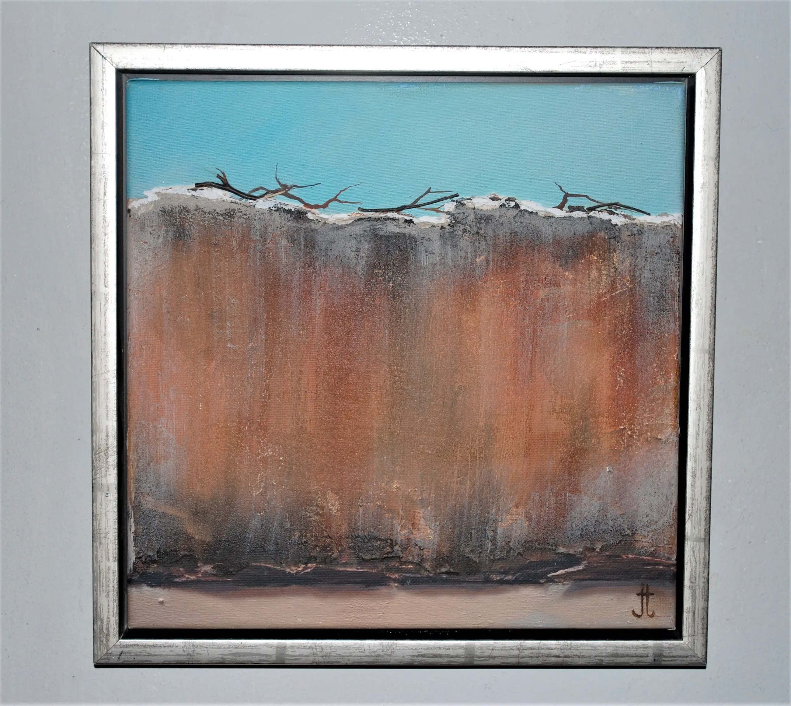 Fascinerend werk, met optische illusies. Afwisselend pasteus en glad. Bovenaan zijn echte takjes bevestigd.