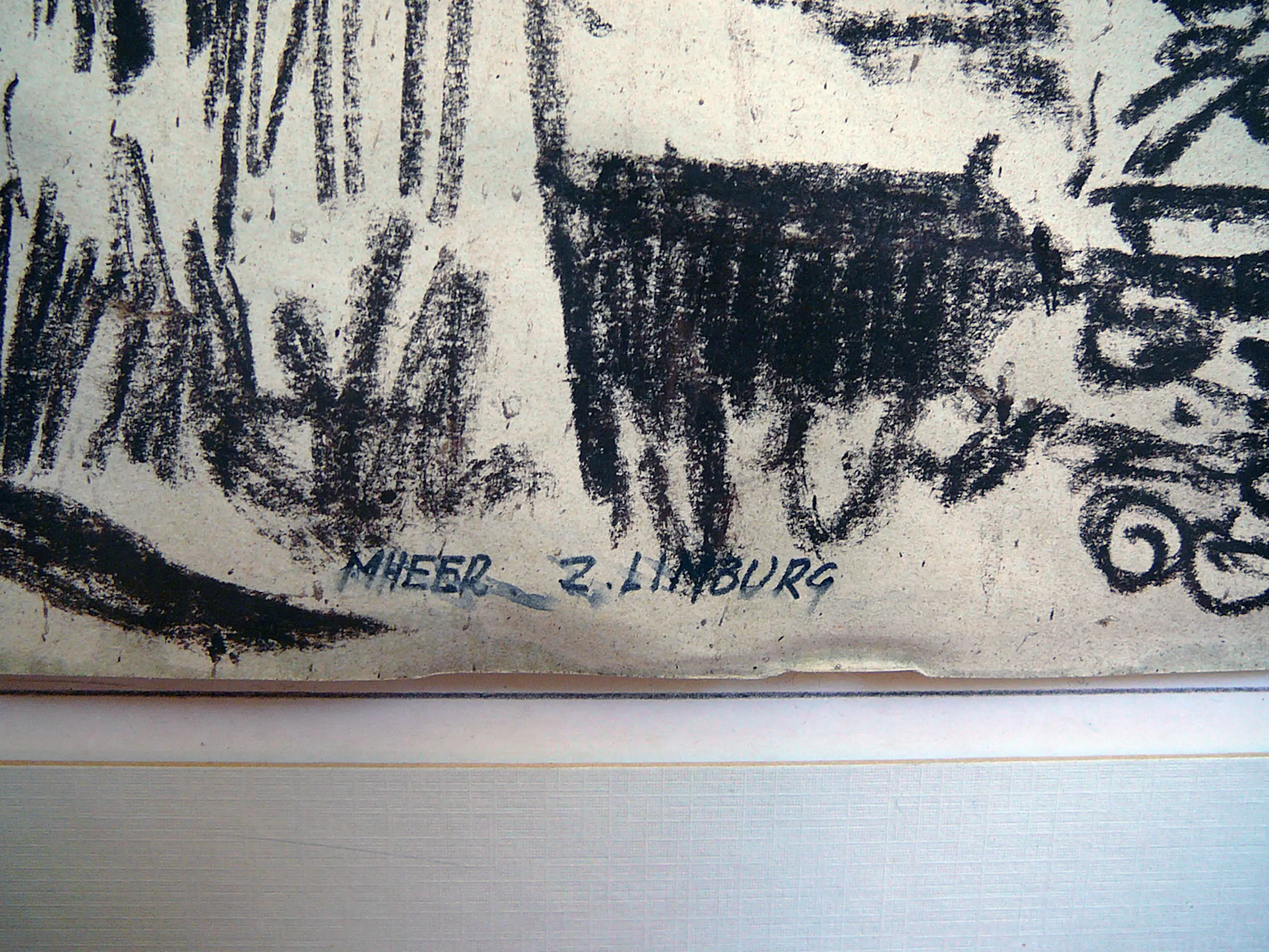 Fraaie krijttekening door Johan Traarbach uit 1966, Rechtsonder gesigneerd in de tekening. Het werk verkeert in uitstekende conditie. Wissellijst zonder glas. Passepartout licht beschadigd.