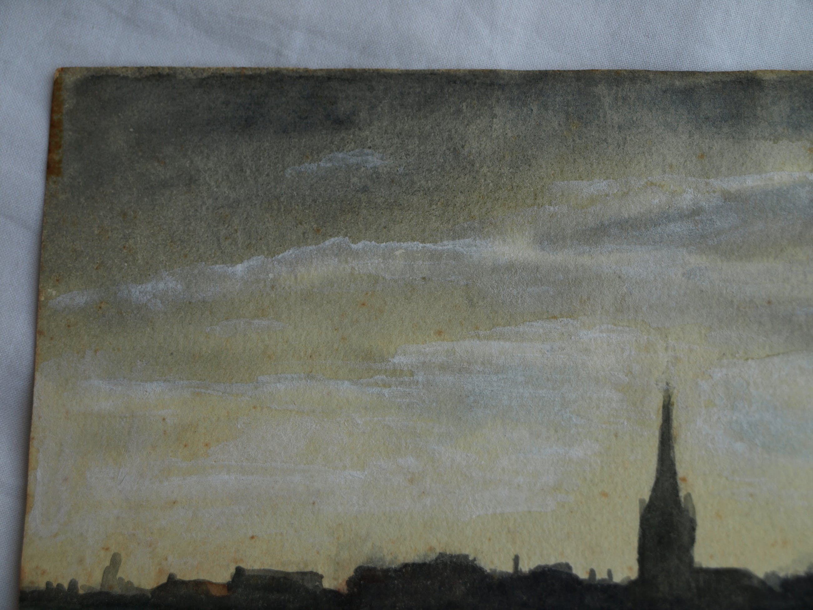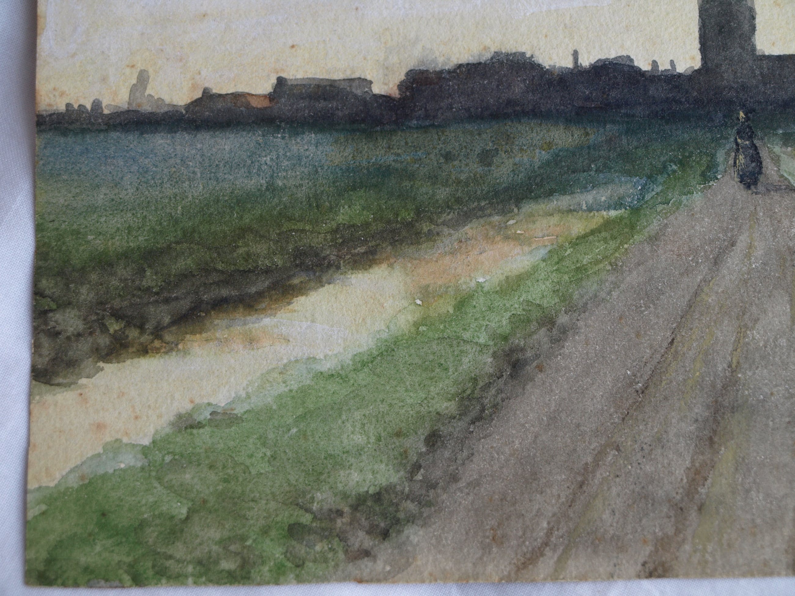 Op de achterkant van het papier is nog een aquarel geschilderd.