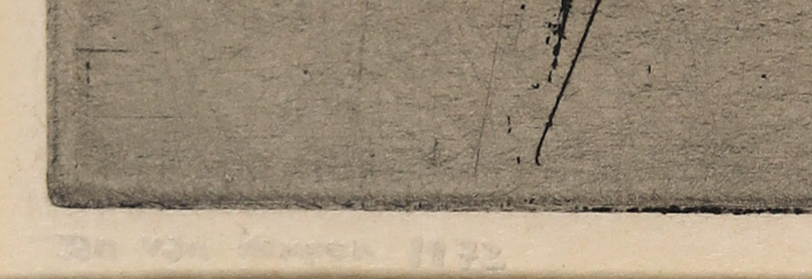 Ets is in goede staat met lichte egale vergeling. Het passe-partout is vergeld en vlekkerig en is aan vervanging toe. | |||||||||||
