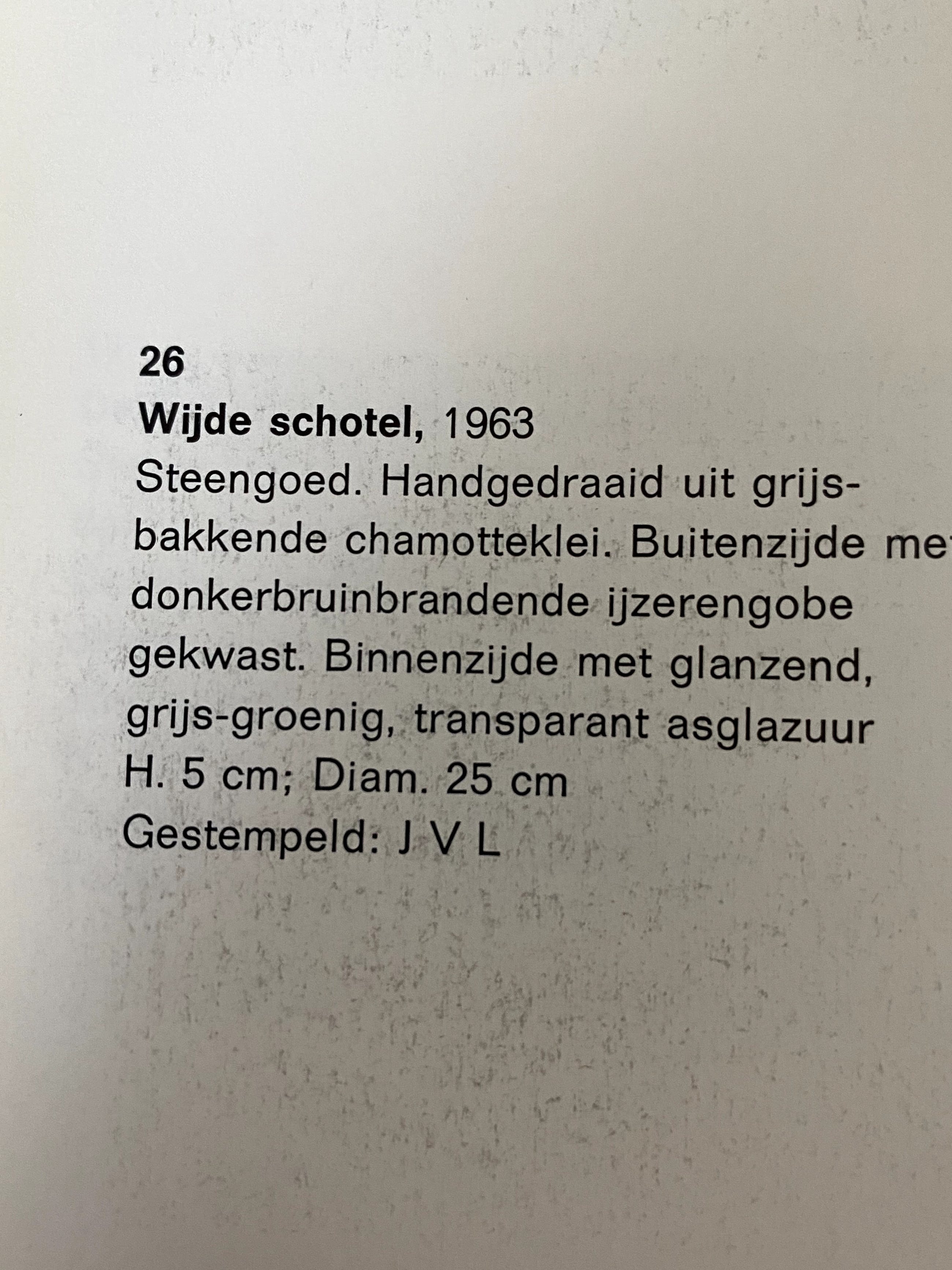 Handgedraaid uit grijsbakkende chamotteklei. Afkomstig uit de collectie Achterbergh. afgebeeld in de catalogus Pottenkijker 1959-1969. Ceramische hoogtepunten in Nederland. Museum Boymans van Beuningen, Rotterdam 1963.blz 82-83. Catalogus niet inbegrepen bij de koop.