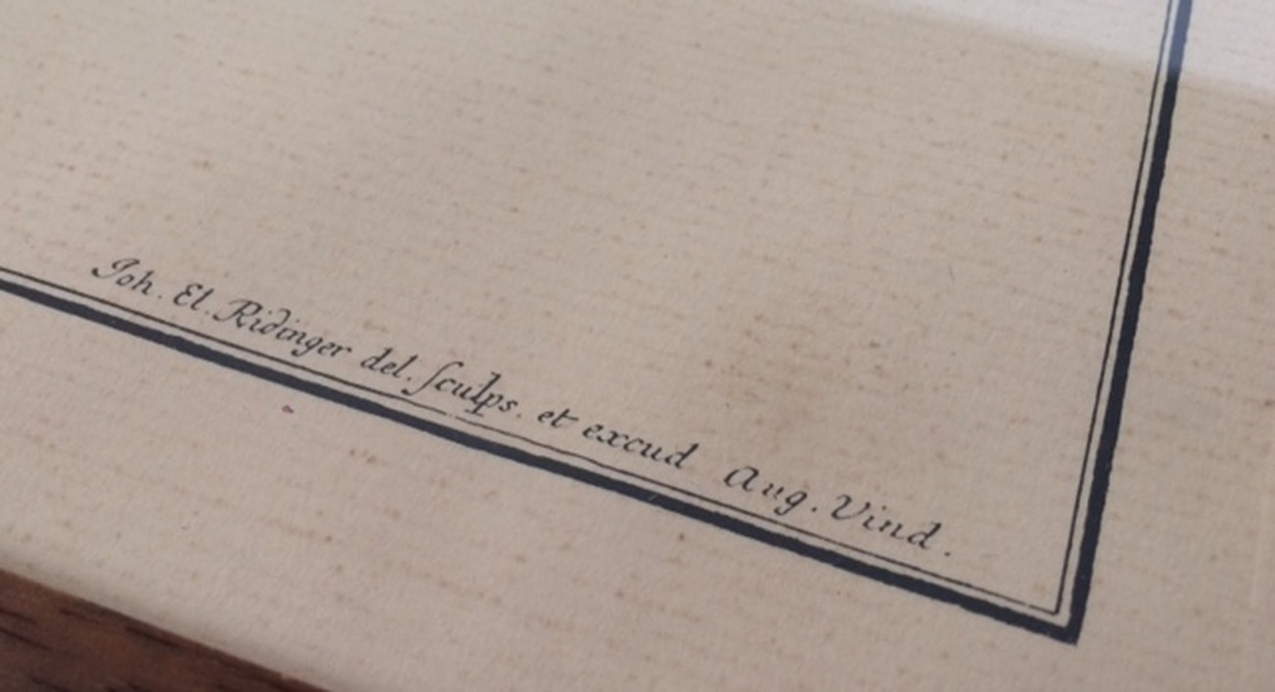 Fraaie ingelijste ets van Johann Elias Ridinger op geschepen papier met ruime marges.