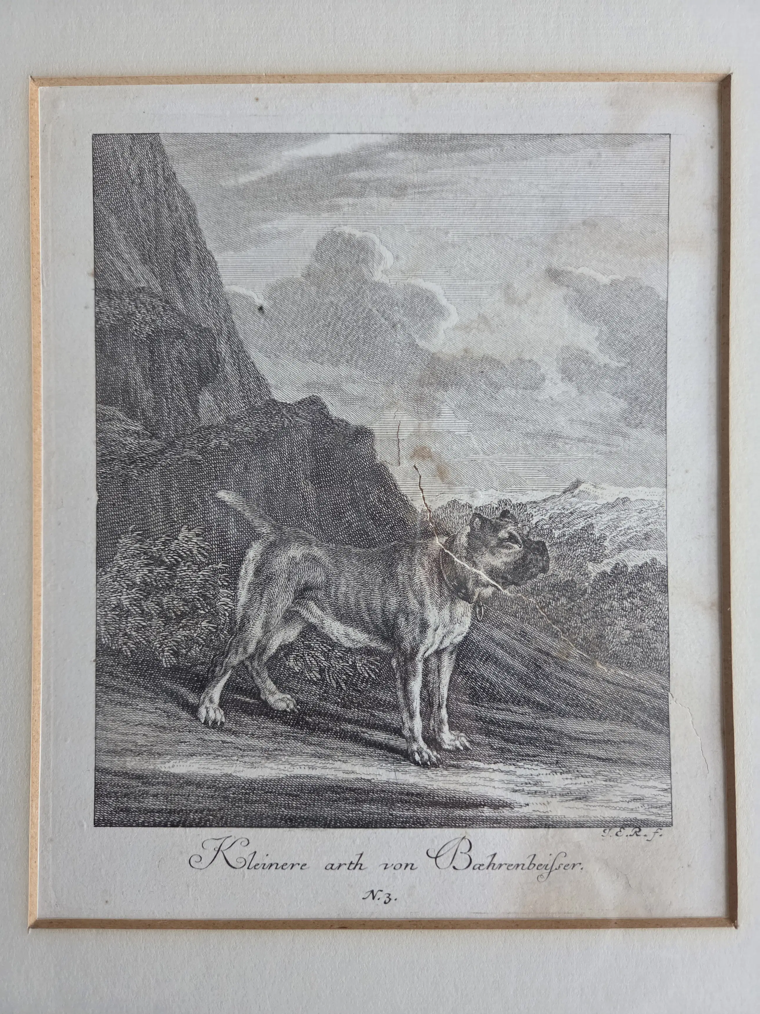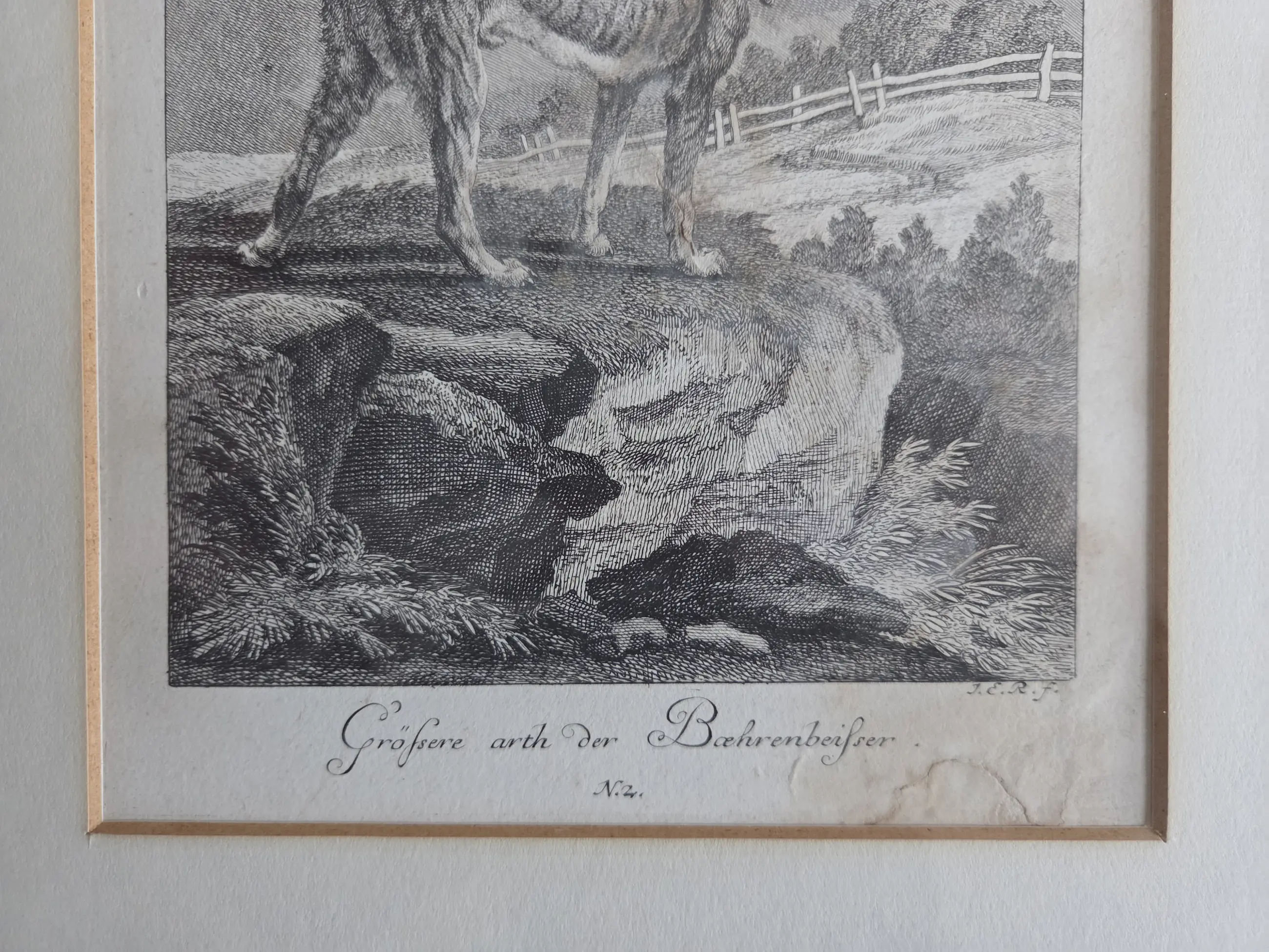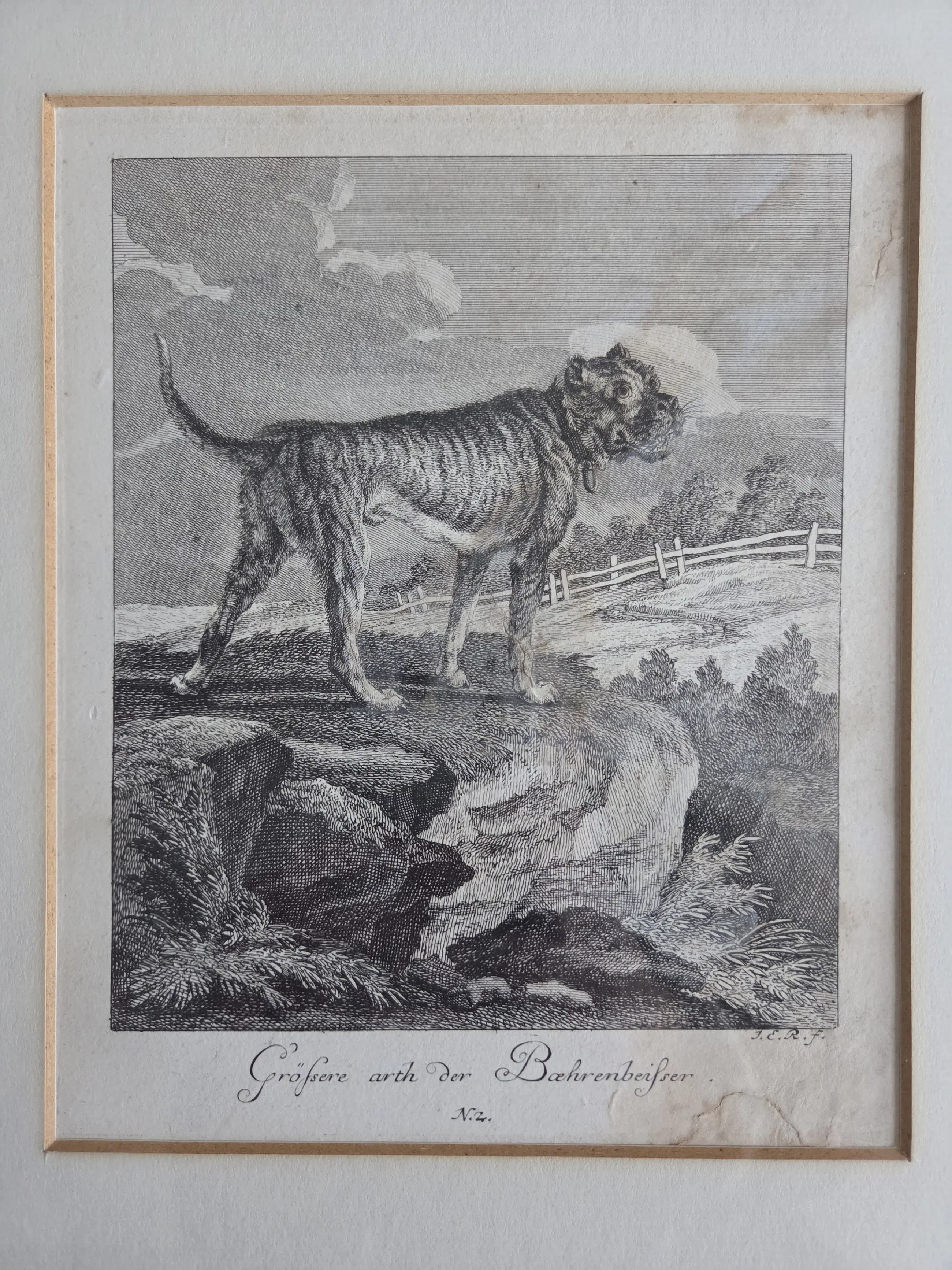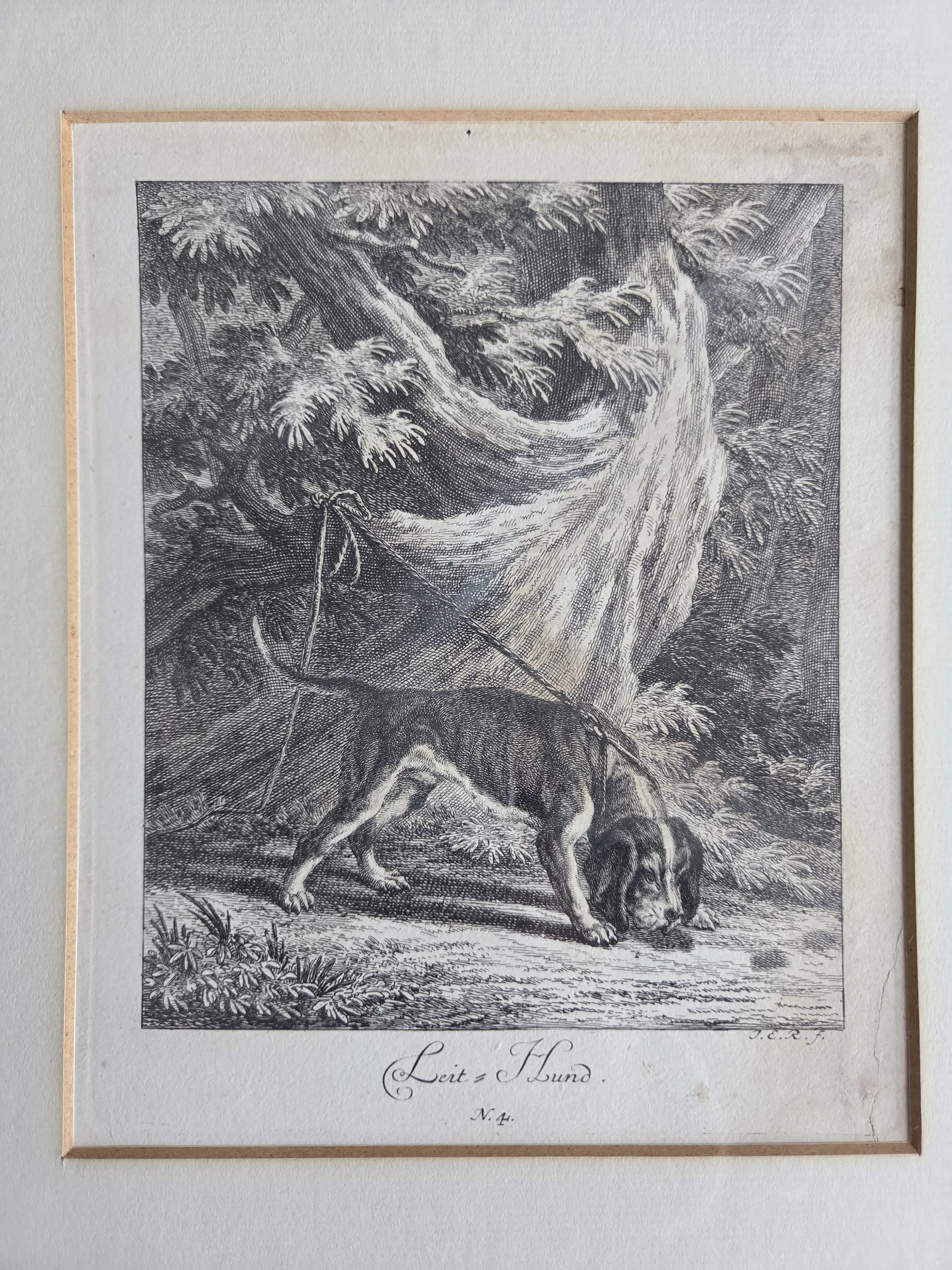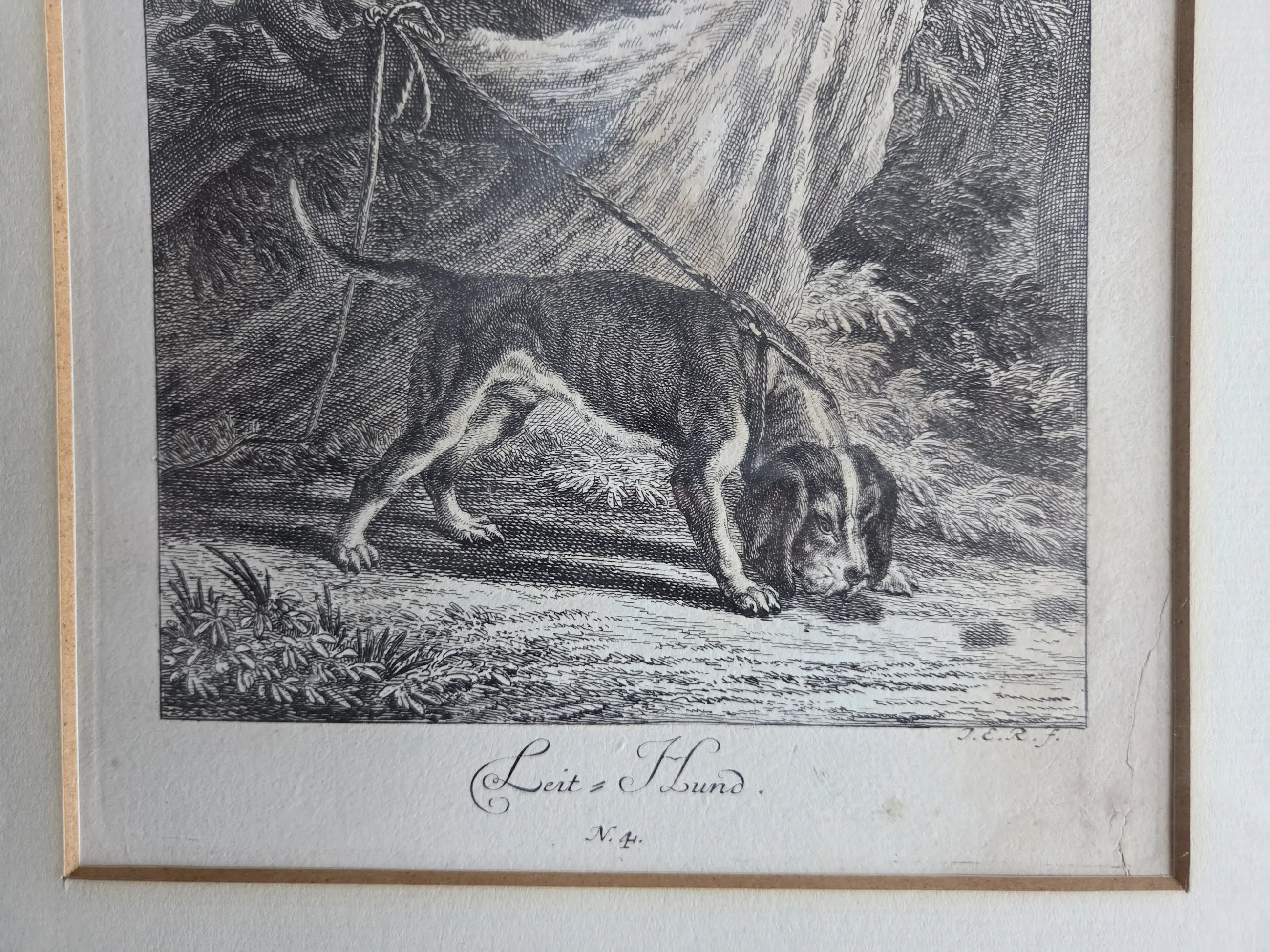 Johann Elias Ridinger - Vier gravures. Jachthonden. Ingelijst.