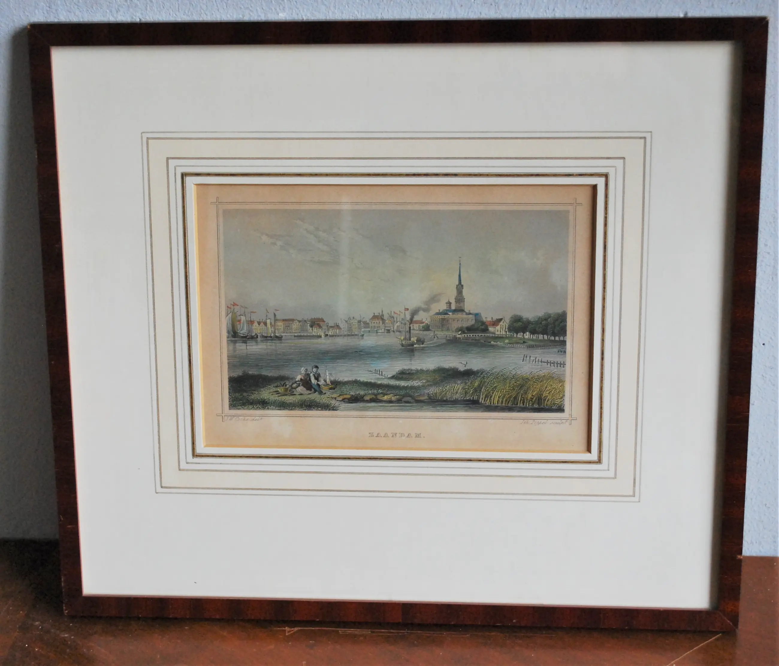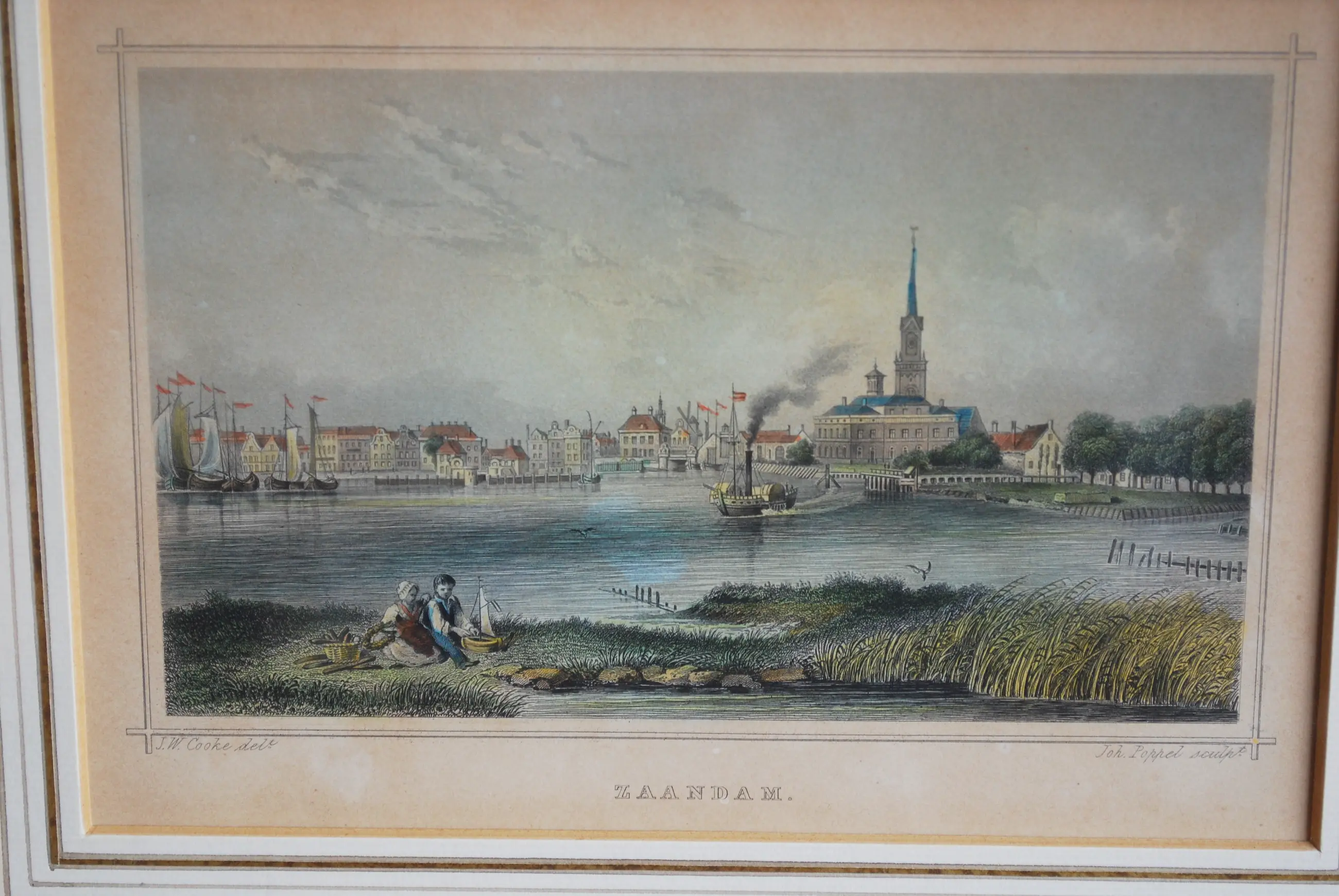 Staalgravure van Joh. Poppel naar een tekening van J.W. Cooke. De tekenaar bevindt zich op het eiland in de Voorzaan.