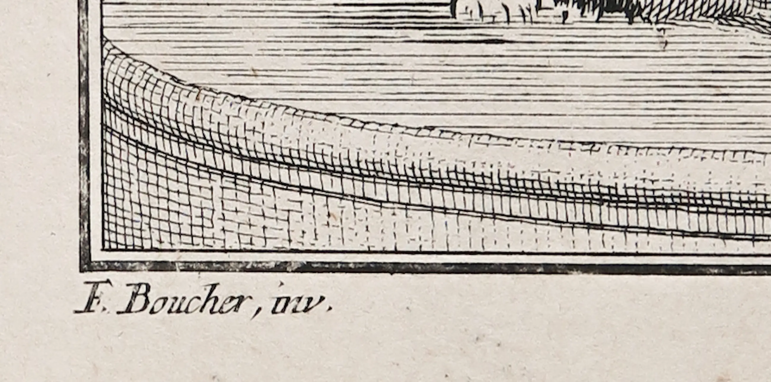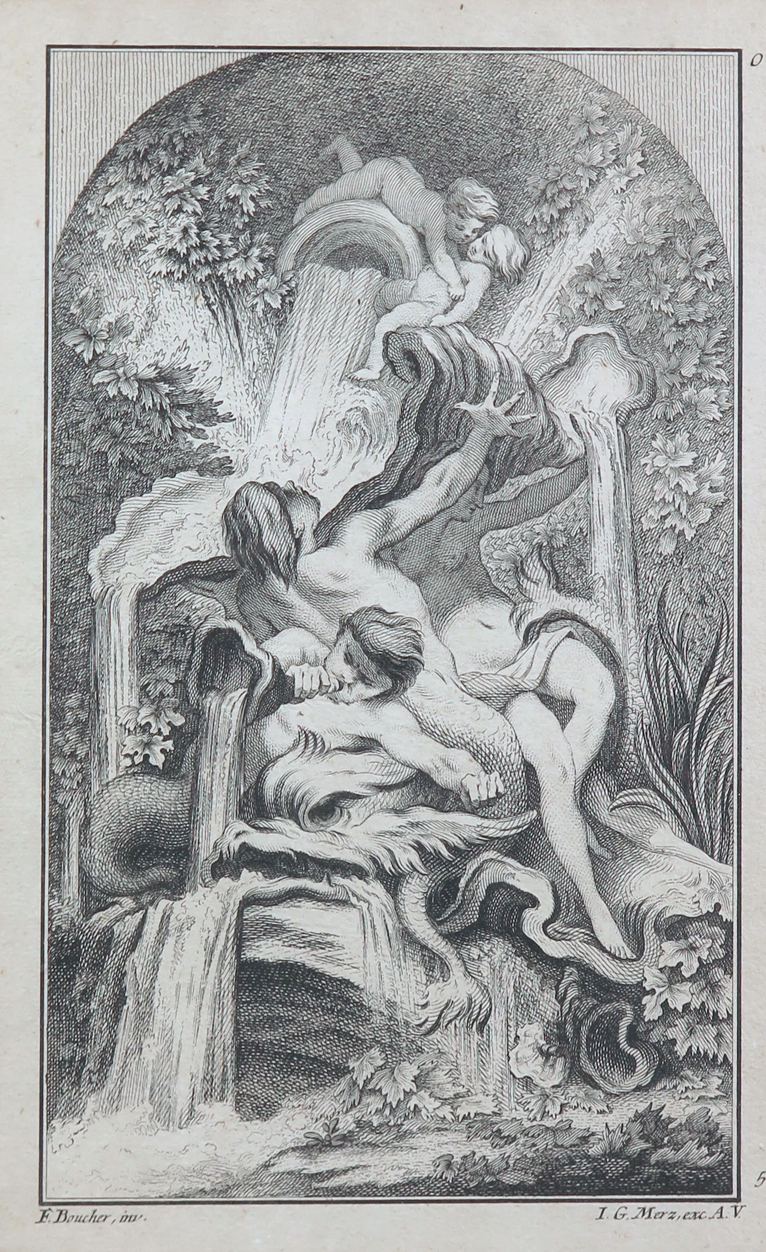 Lot van drie gravures door Johann Georg Merz naar werken van François Boucher.