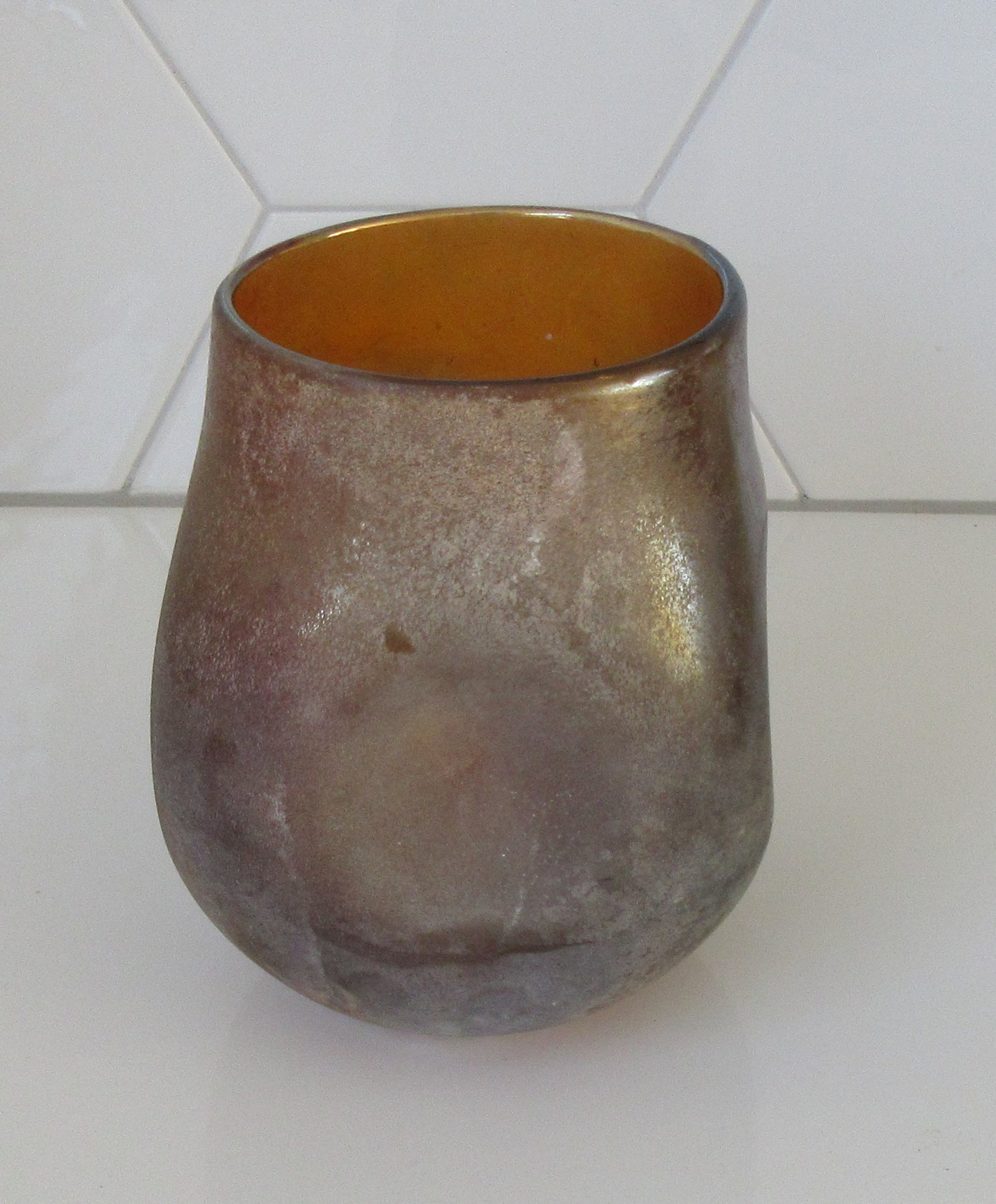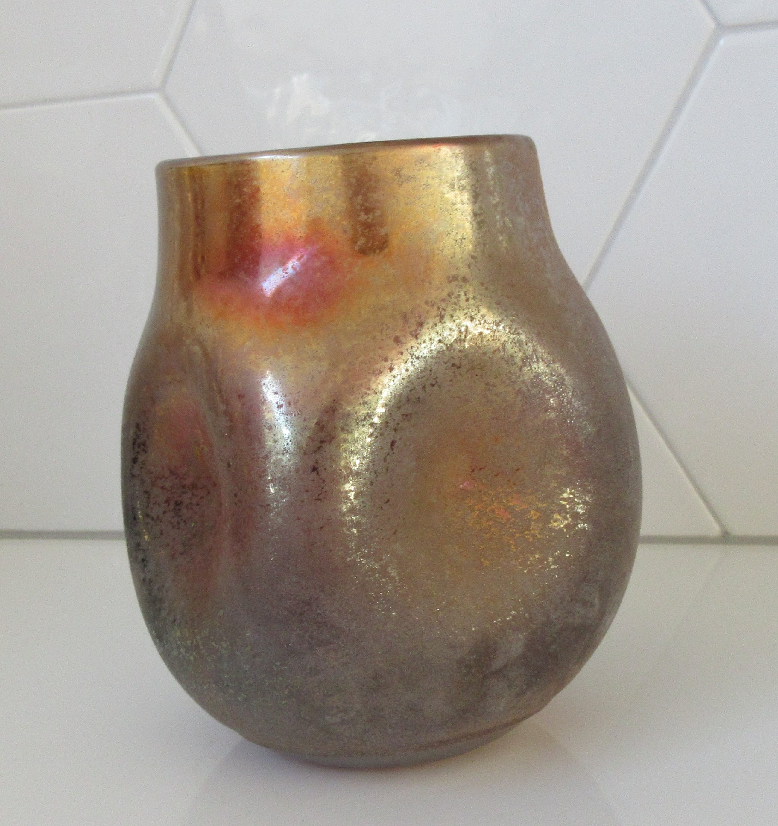 Art Nouveau Oranje Irise knijpvaas uitvoering Johann Loetz Witwe. In prachtige conditie. Helaas niet gesigneerd, wel voorzien van pontilmerk.