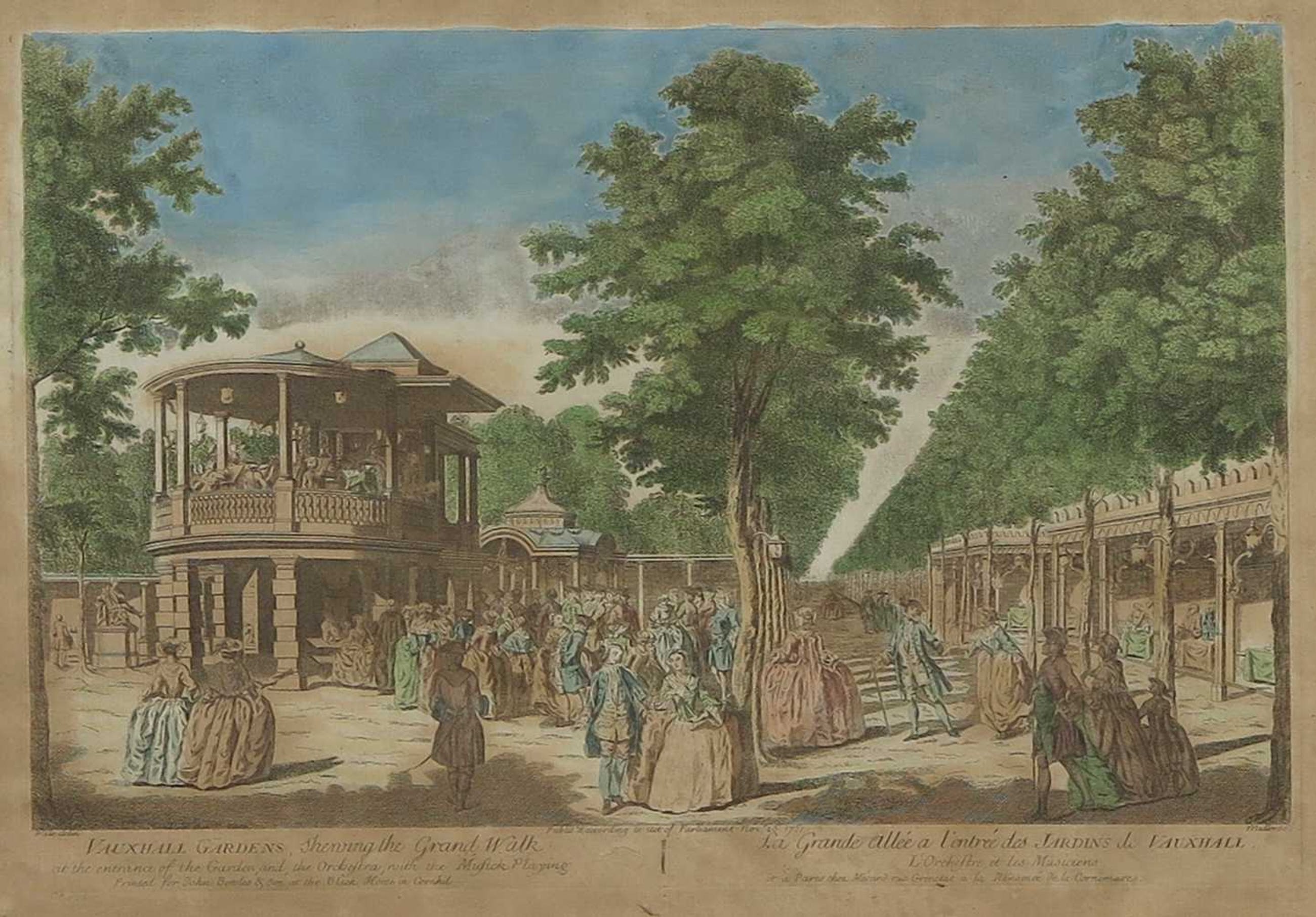Handgekleurde gravure / Opticaprent vervaardigd door Johann Sebastian Müller naar een schilderij van Samuel Wale.