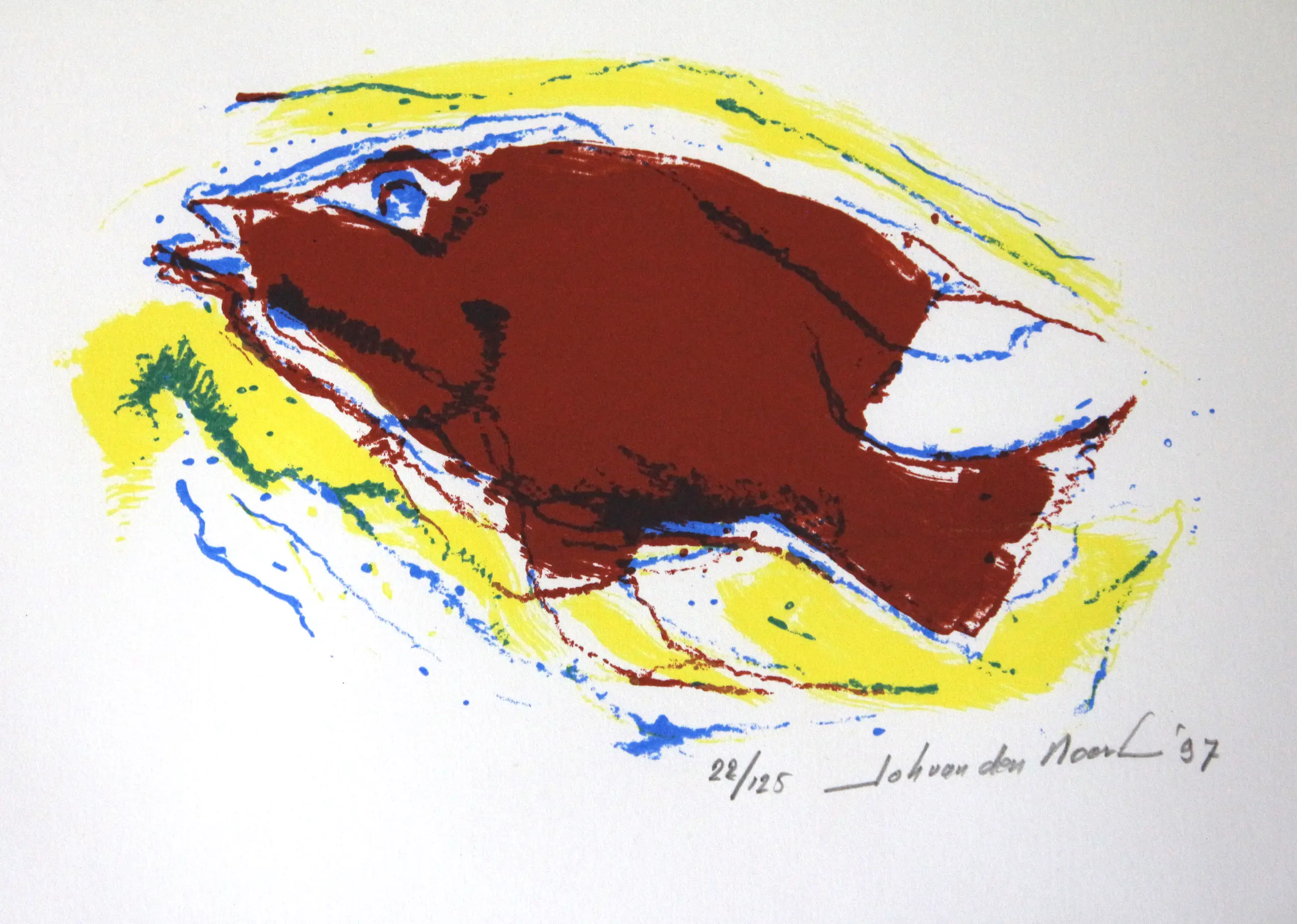 LET OP!!! Dit zijn 5 kunstwerken!!! Dit is een unieke mogelijkheid om in één koop een heel 'aquarium' van deze kunstenaar aan te schaffen. De werken zijn prachtig ingelijst en een sieraad aan iedere wand. Een erg leuke decoratie op een lange wand. Ophalen in Haarlem, Nederland of bezorging in overleg.
