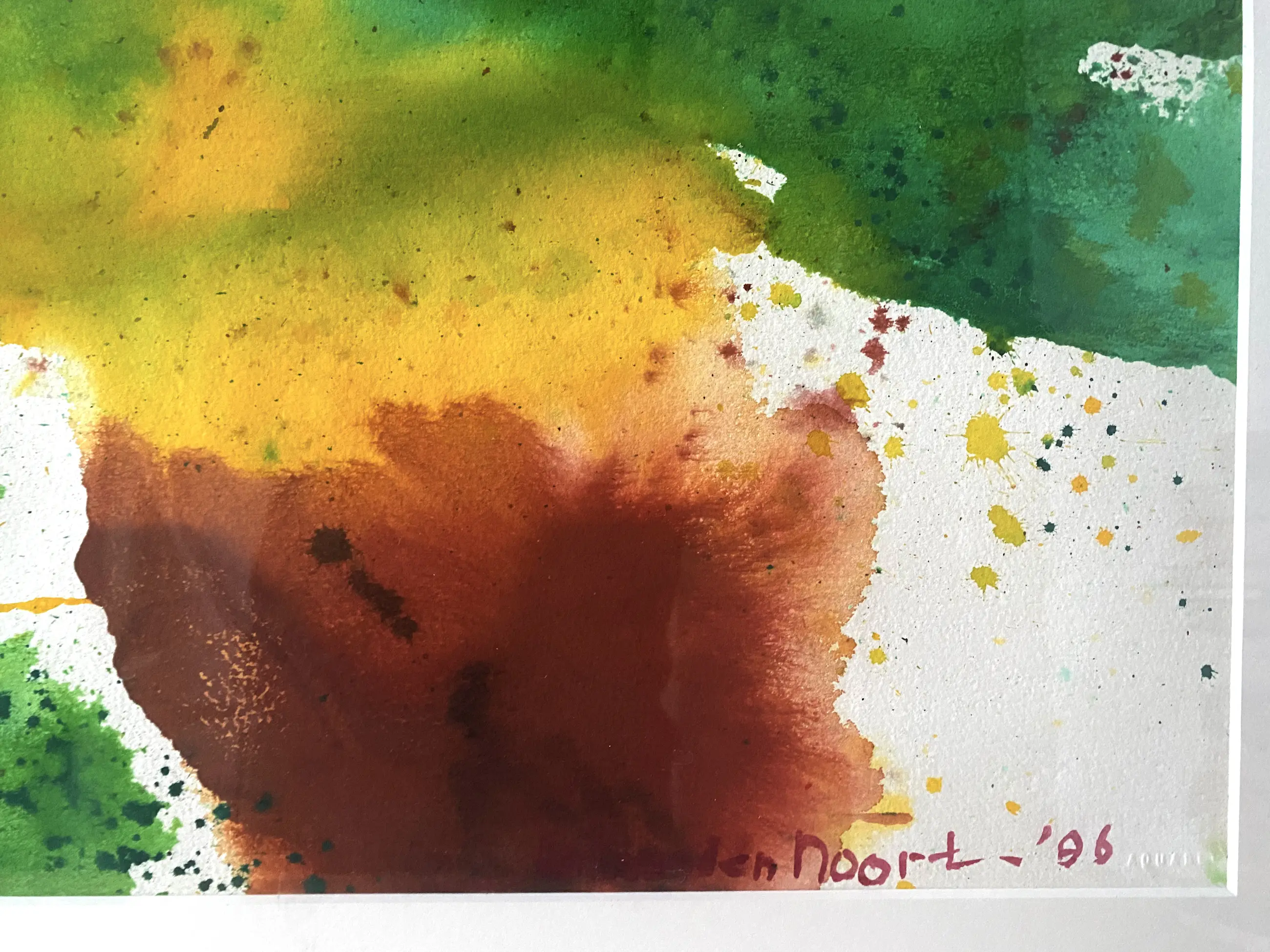 Dit is een mooi groot werk (iets meer dan een meter breed), met expressieve kleuren. Het is inclusief originele lijst en glas. Het kan vrijdag 16 januari na 17u opgehaald worden in Amsterdam.