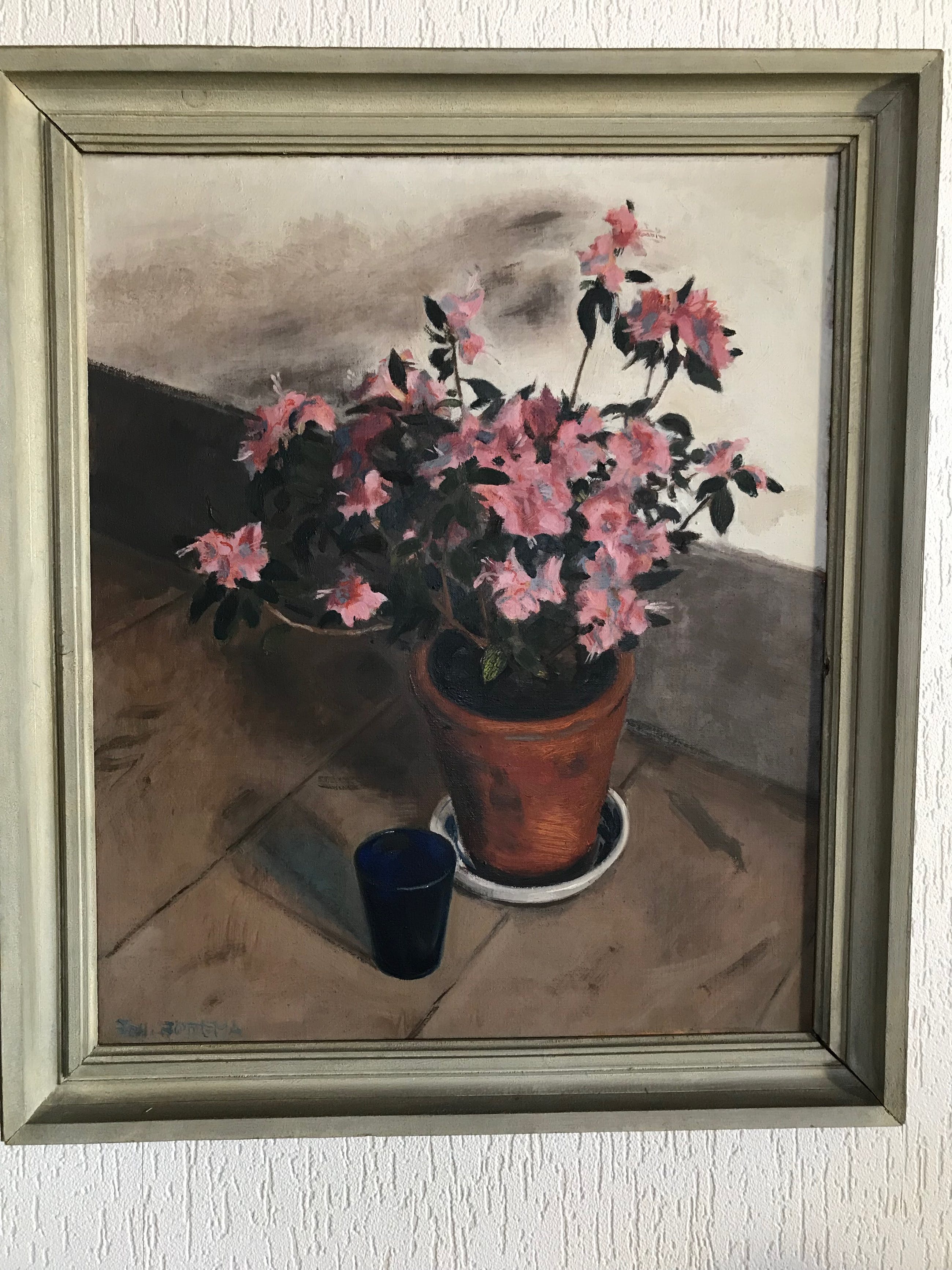 Johanna Bottema - Bloempot en blauwe drinkbeker