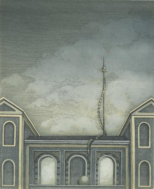 Johanna Schoenfelder - Fahnenstange, Farbradierung 1975