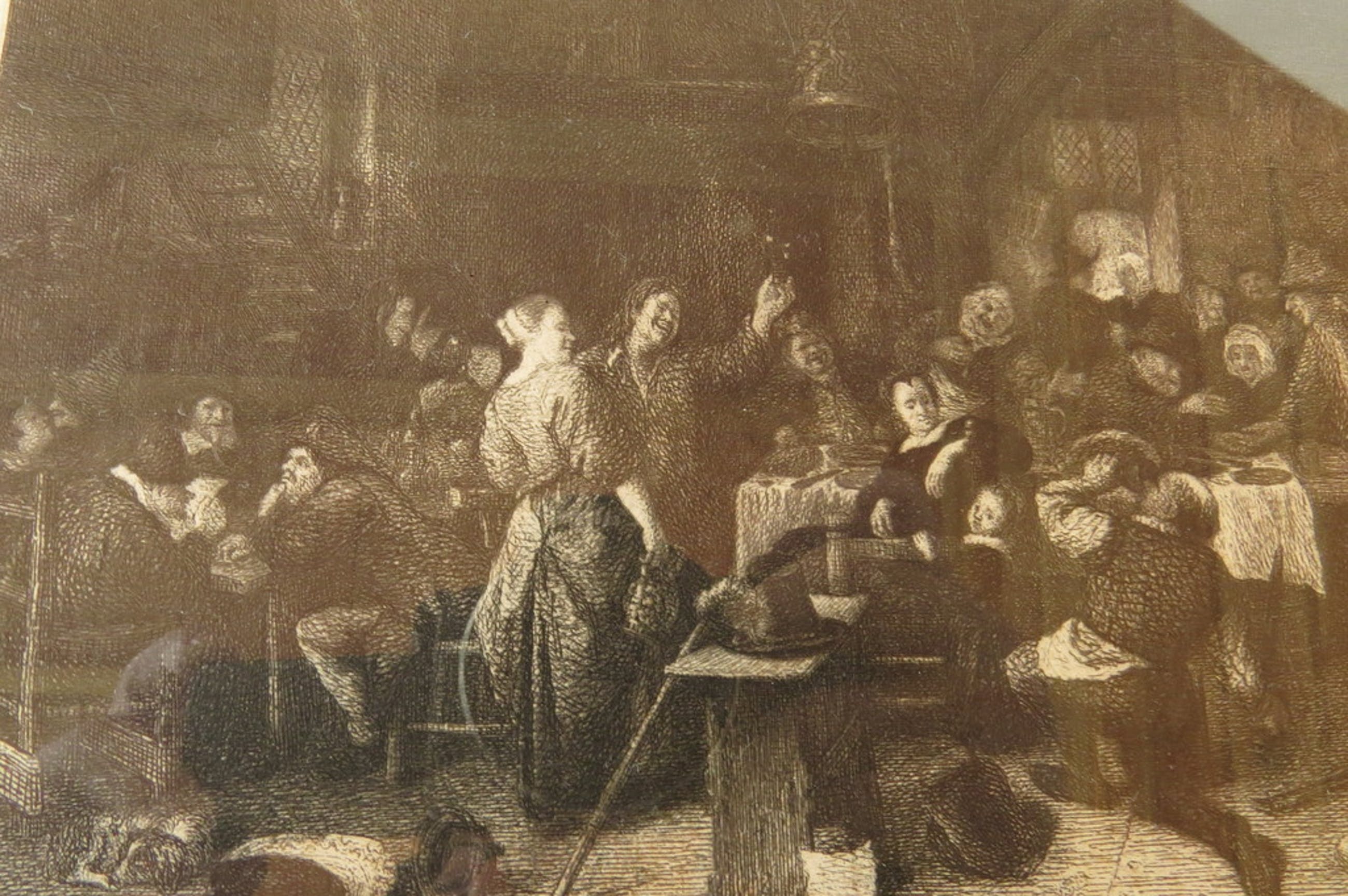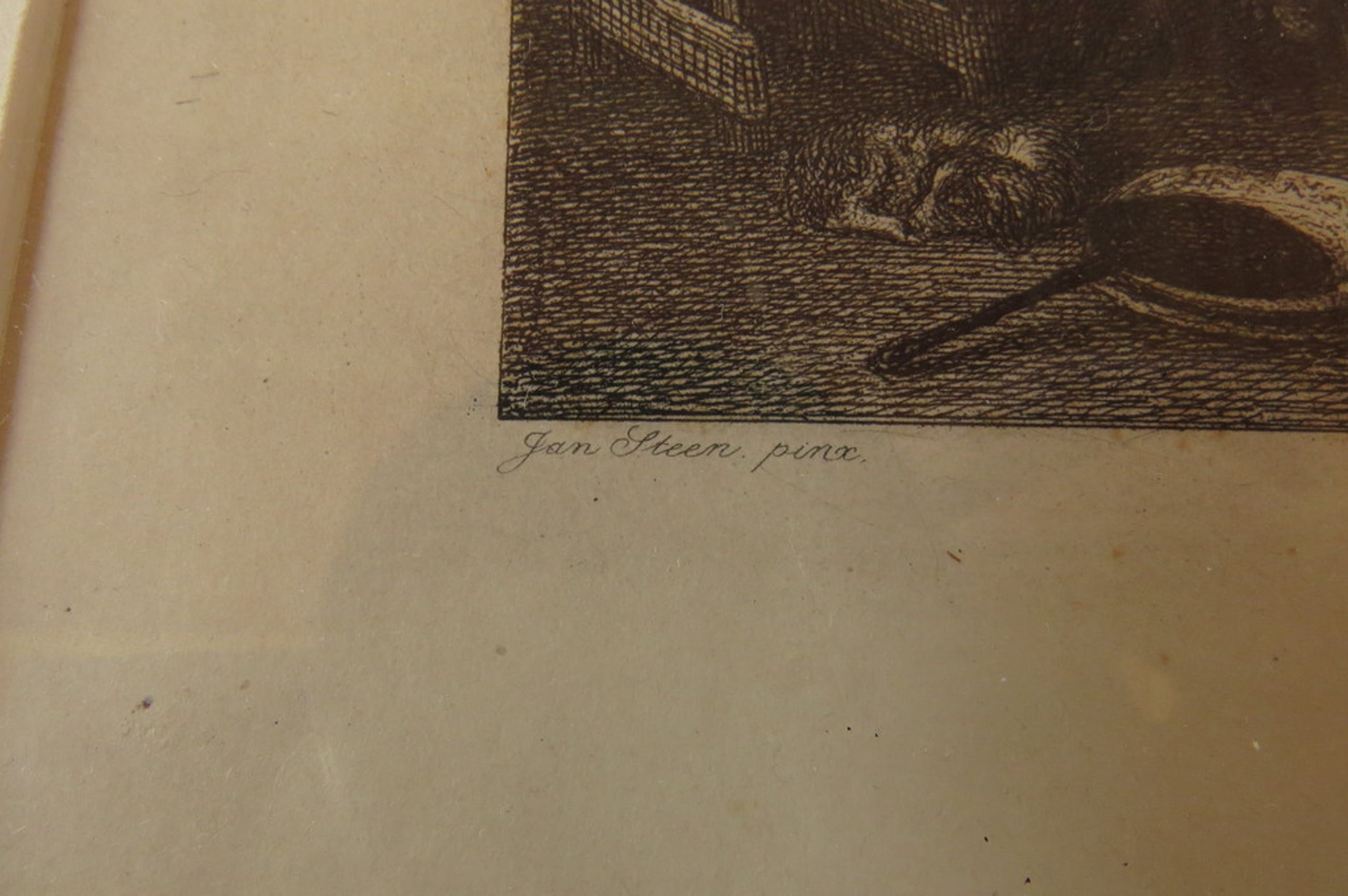 Ets van Johannes Arnoldus Boland naar schilderij van Jan Steen in het rijksmuseum.