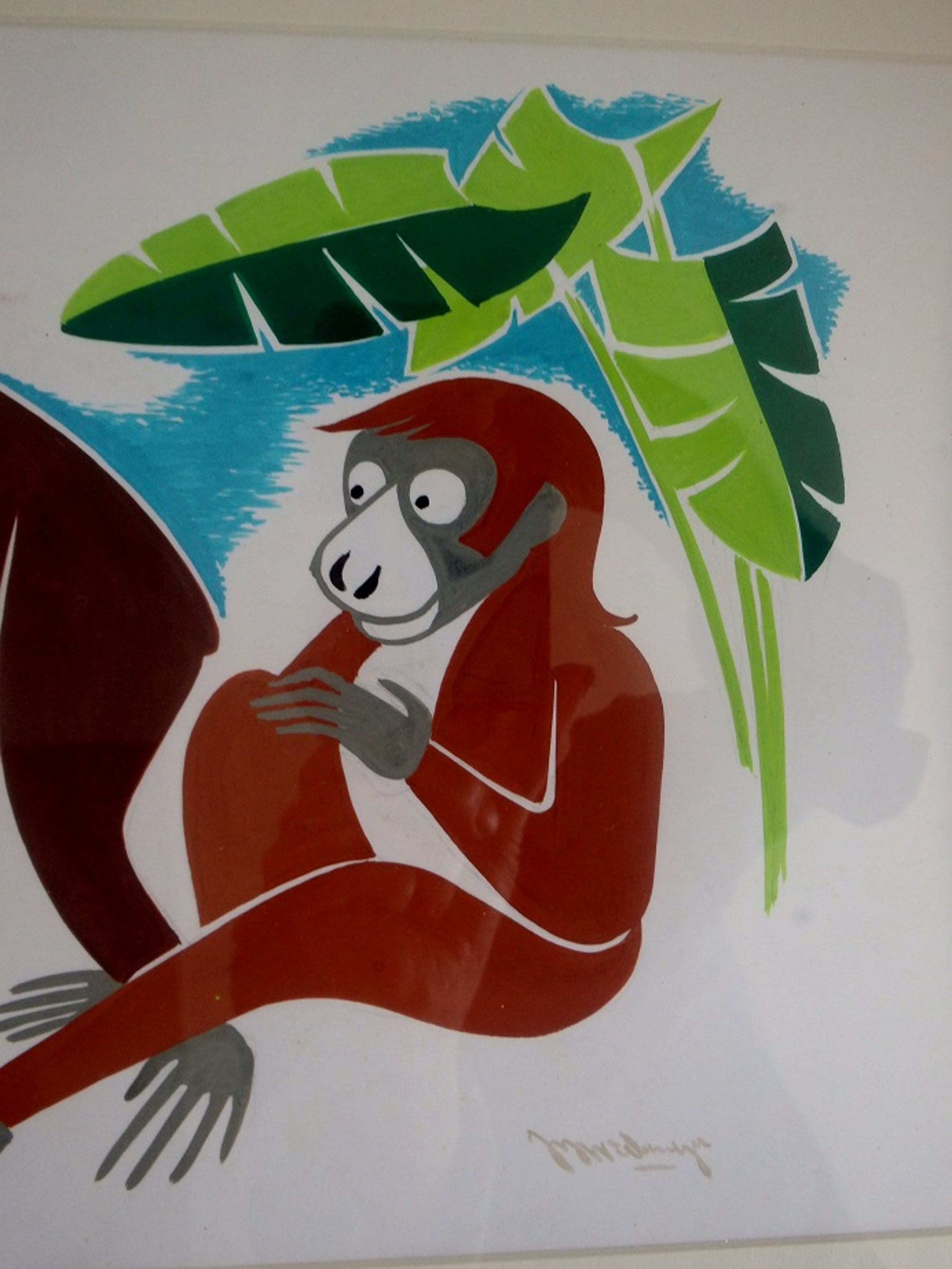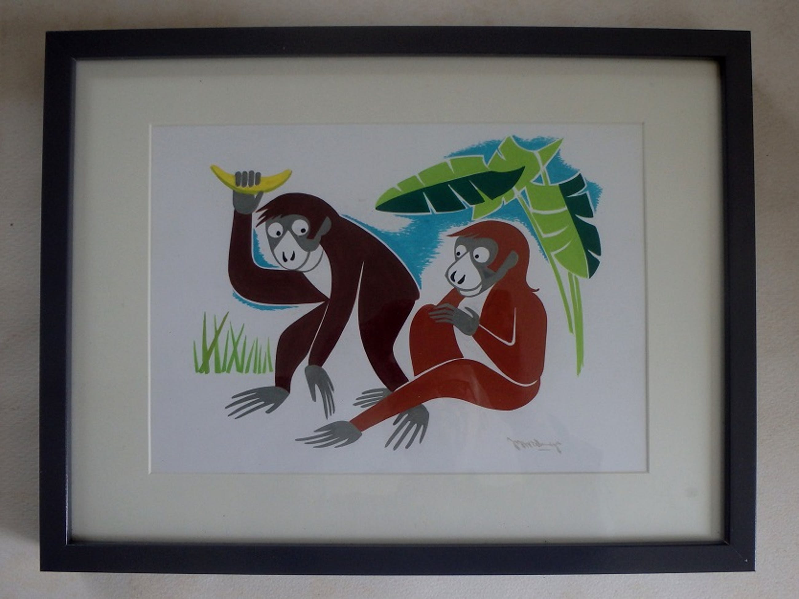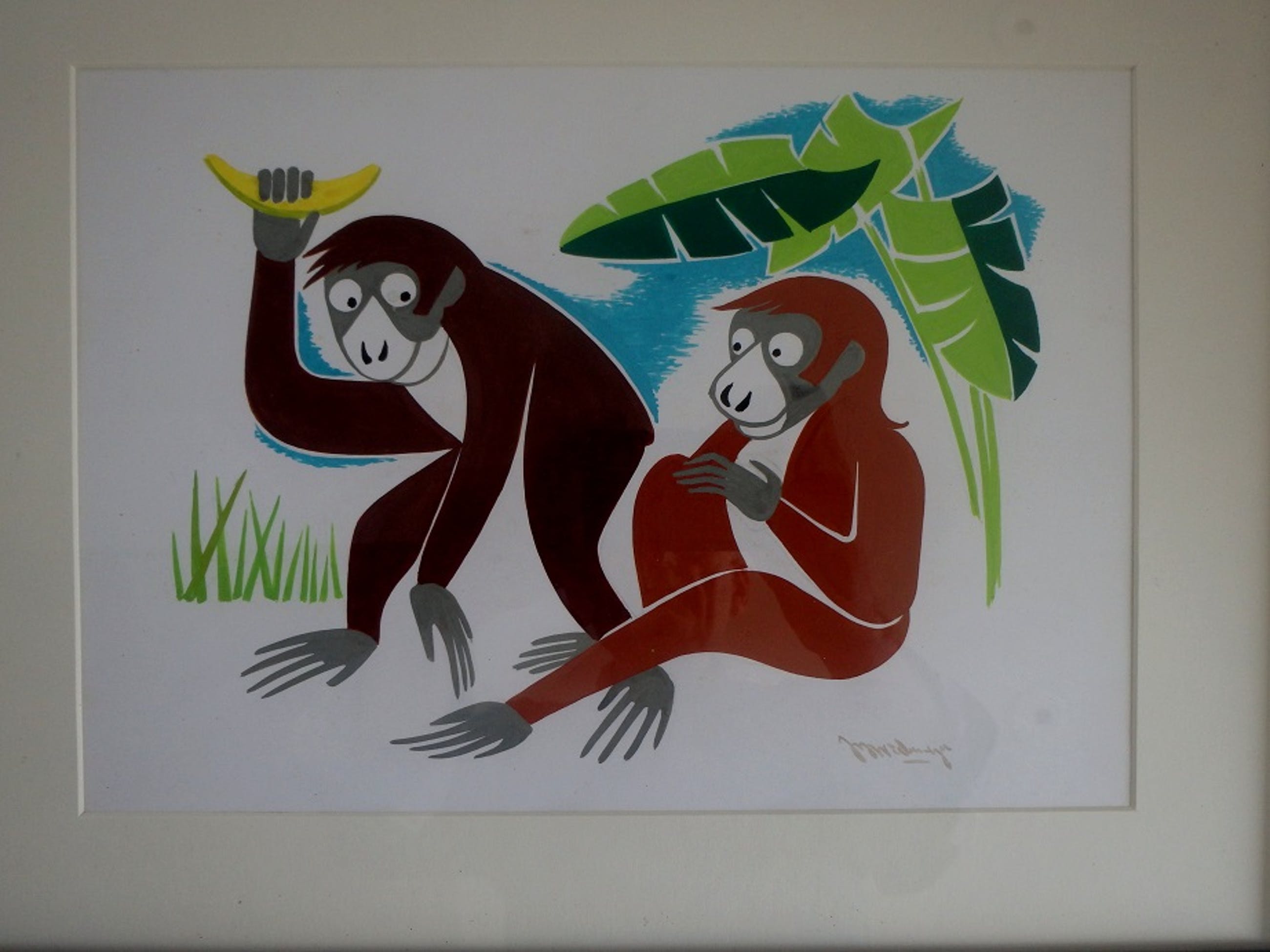 gouache (dekverf op papier), werkje is van ca. 1970, rechtsonder gesigneerd J.B. Wiebenga, nieuw ingelijst in passe-partout en achter glas.