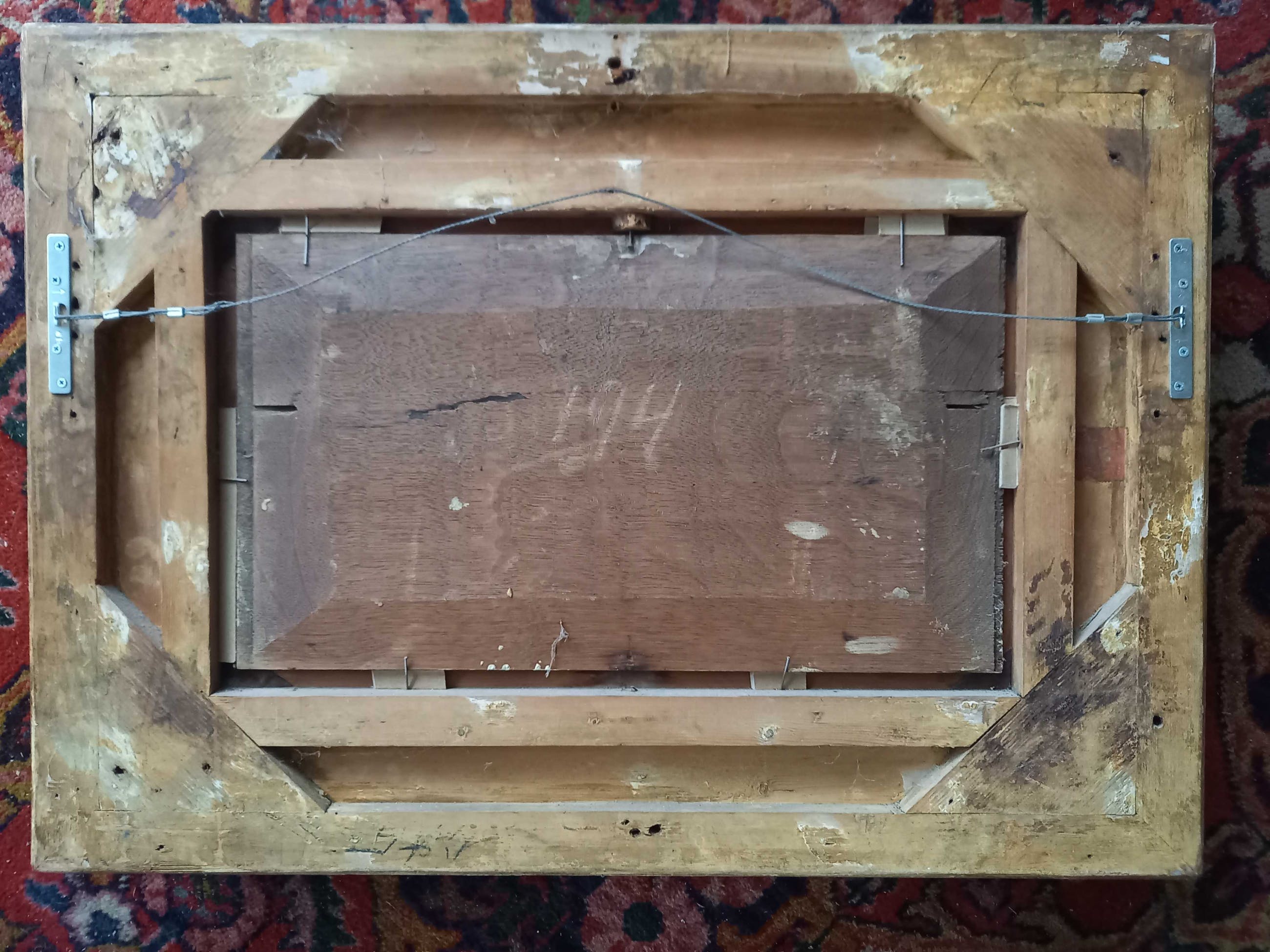 het werk is op paneel geschilderd en heeft craquelé.De lijst is in perfecte staat.