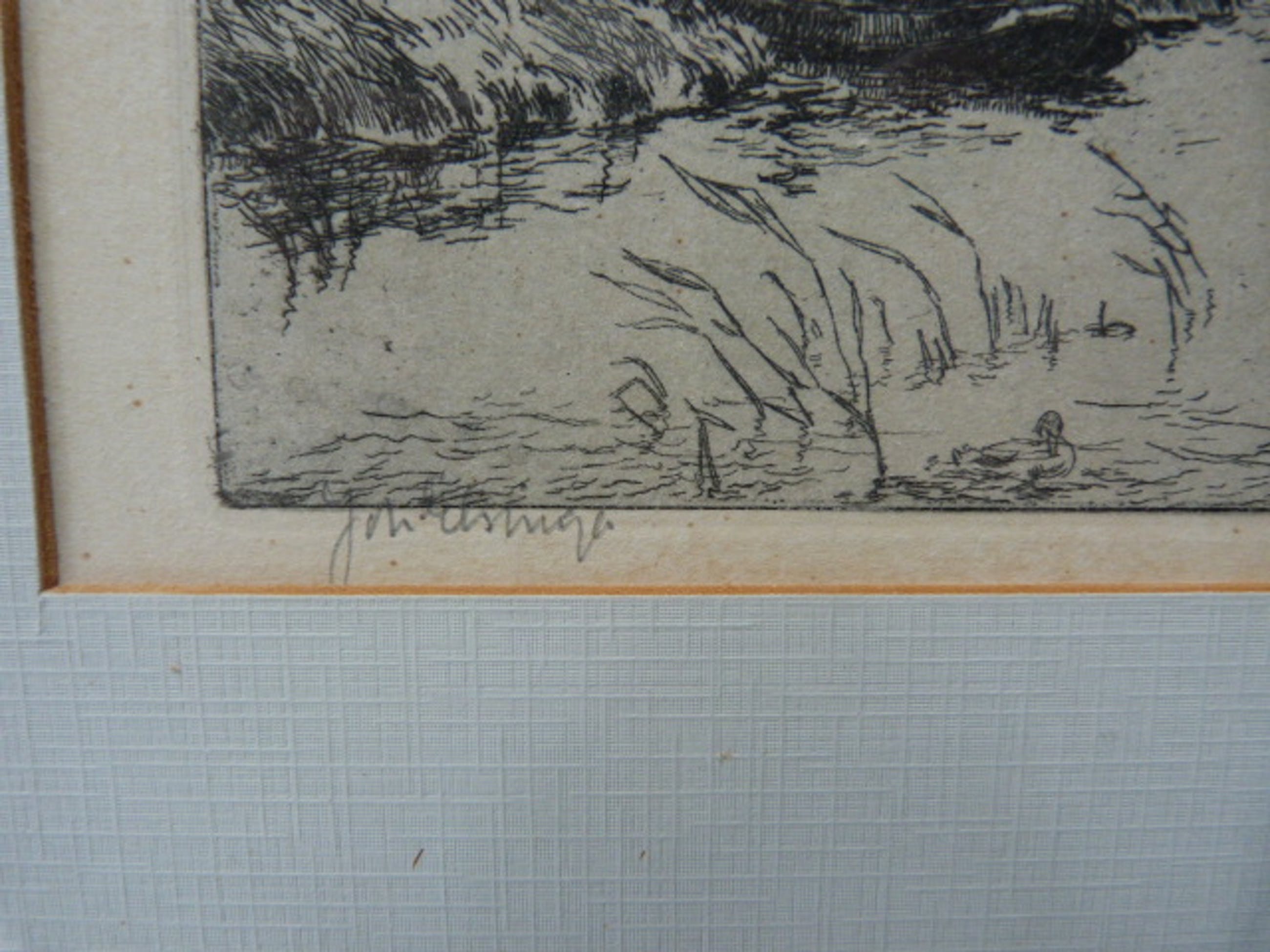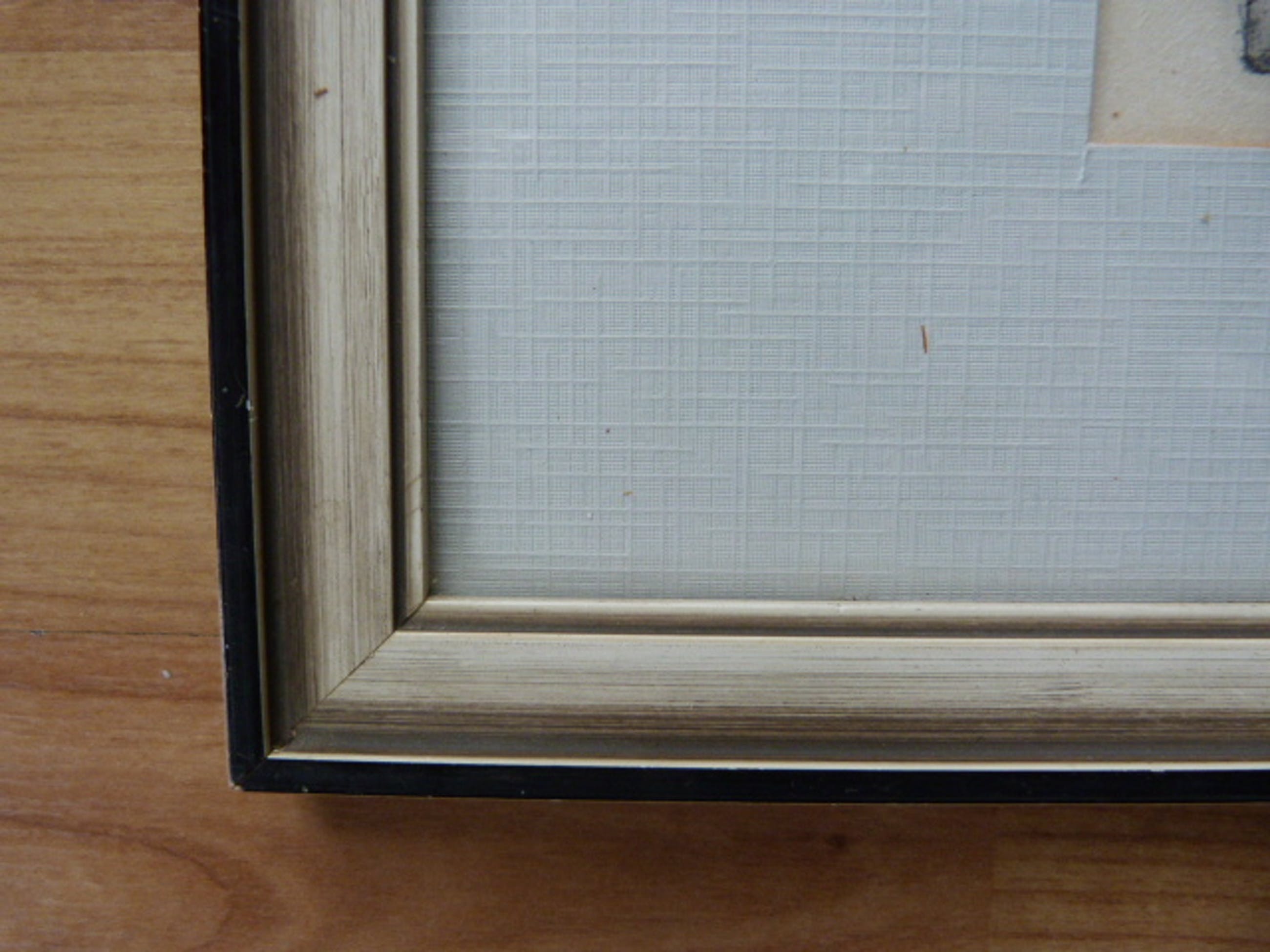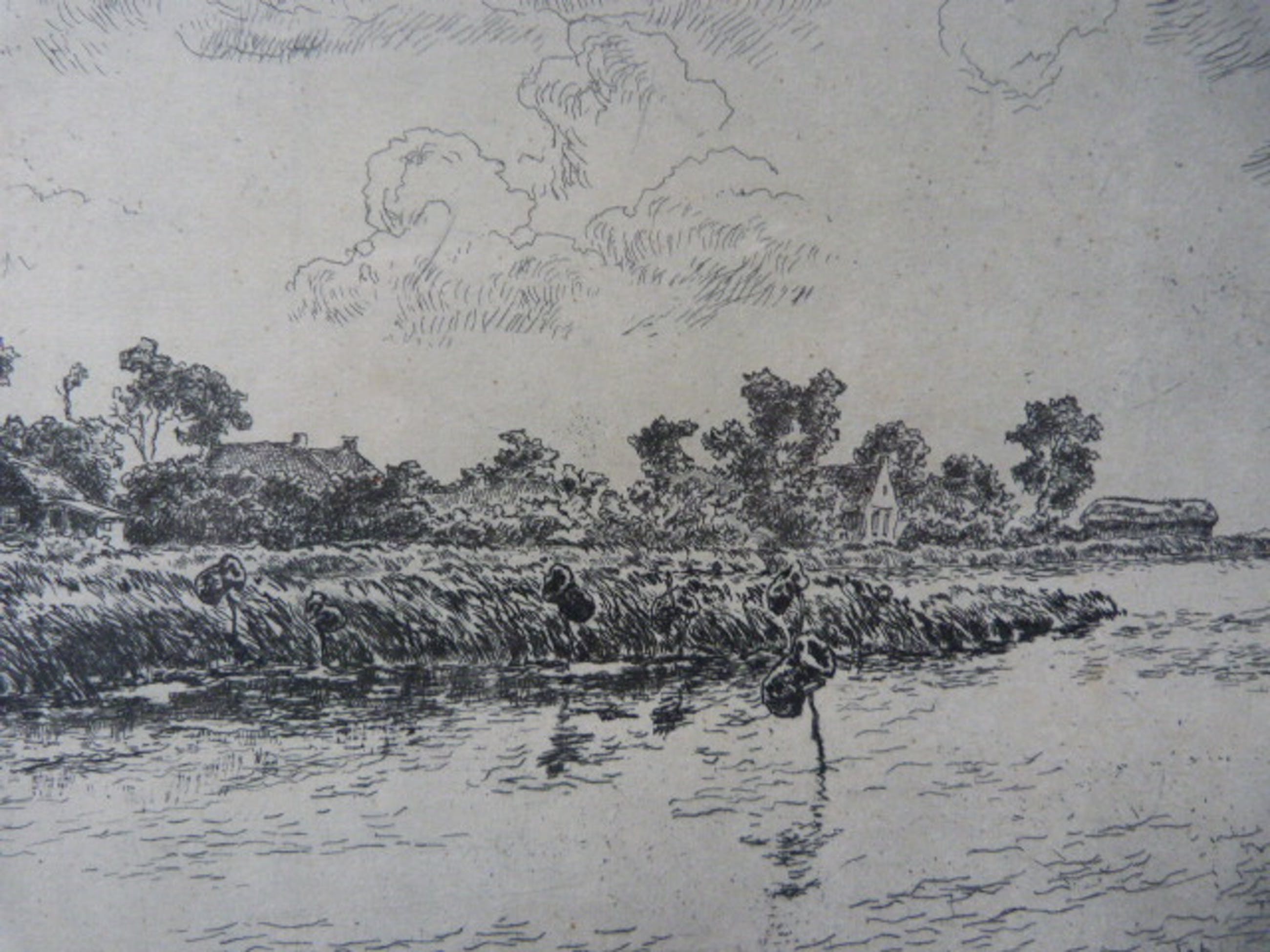 Ets is ingelijst met passe-partout en de originele lijst in licht / creme kleur van 2 cm.